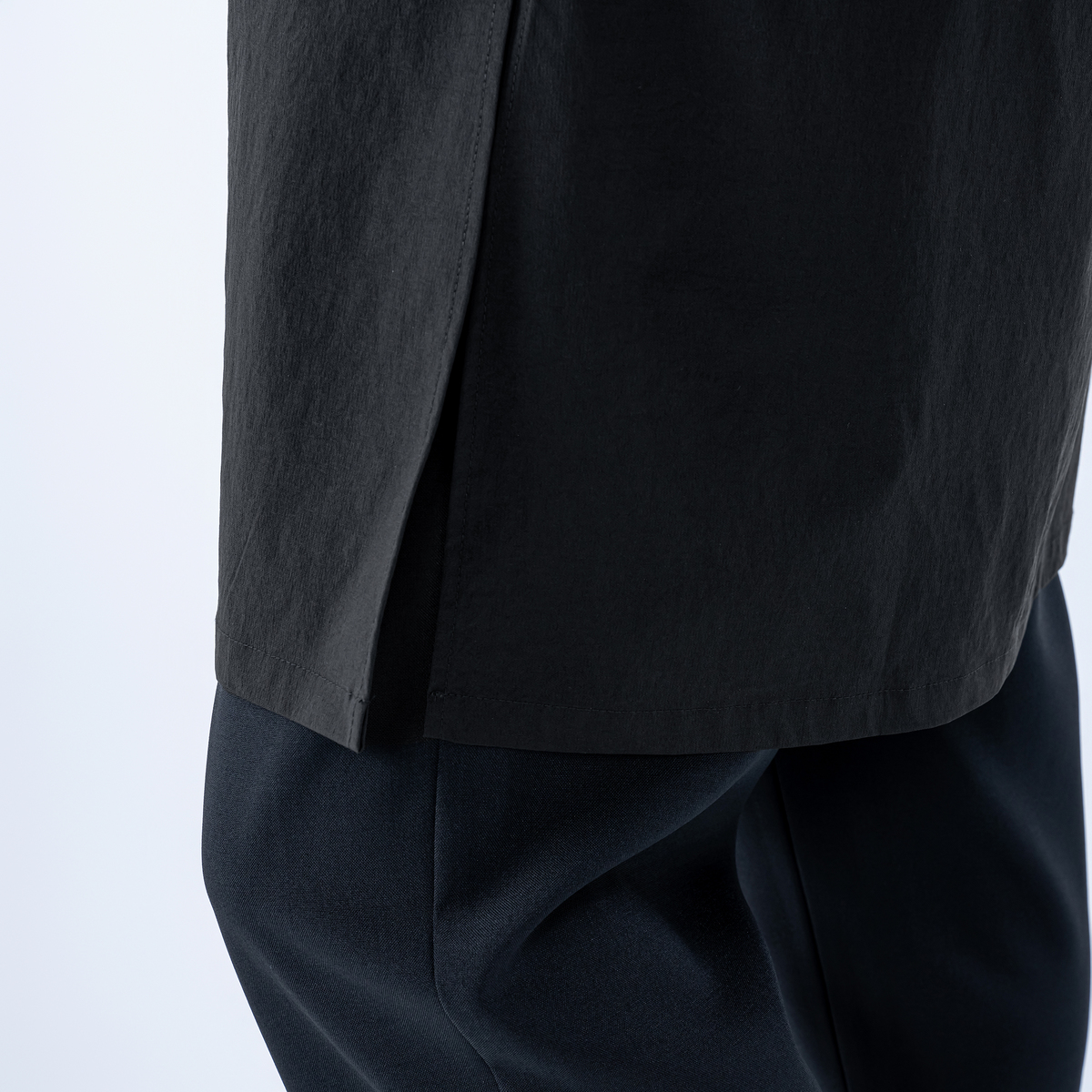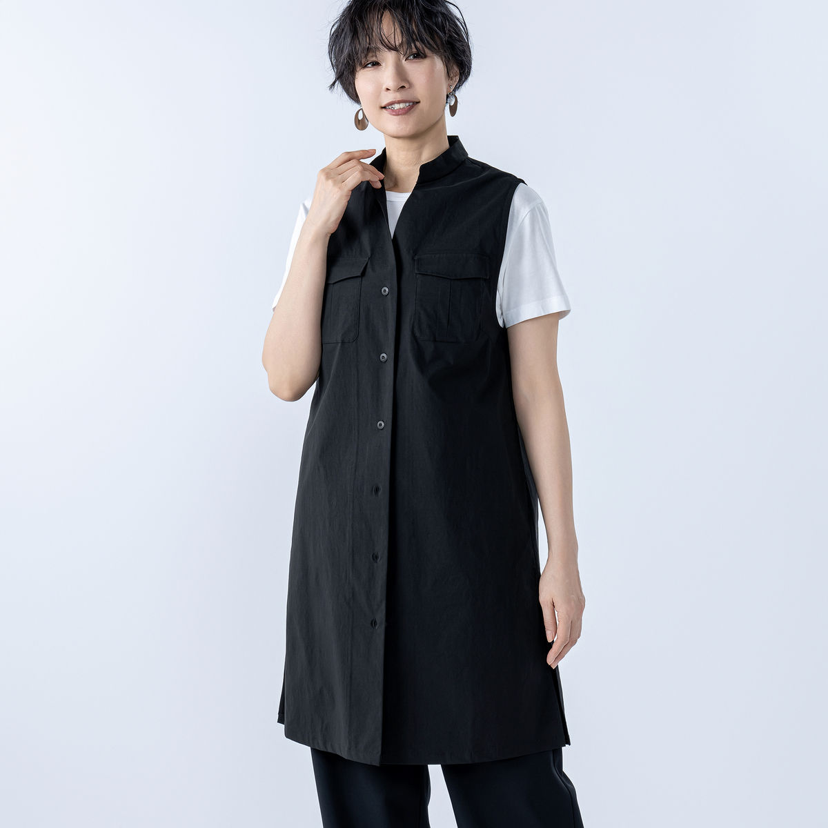 衿元は首周りがすっきり見えるスタンドカラー。顔周りをシャープに引き締め、洗練された印象で着こなせます