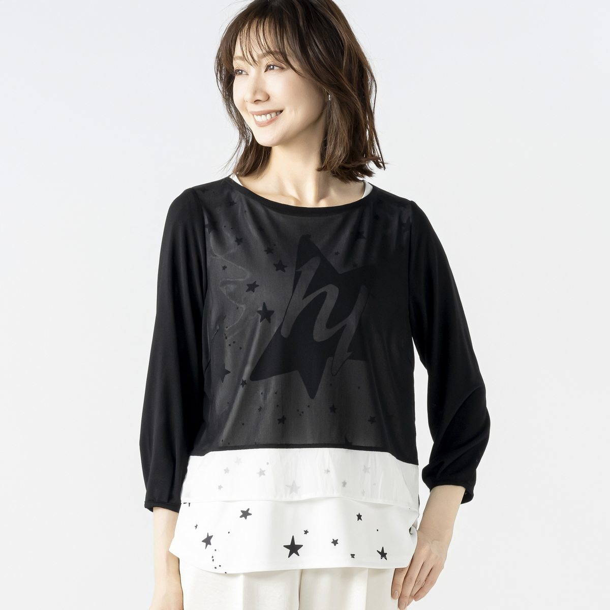 No. 752820 day to day チュールレイヤードスタープリントプルオーバー