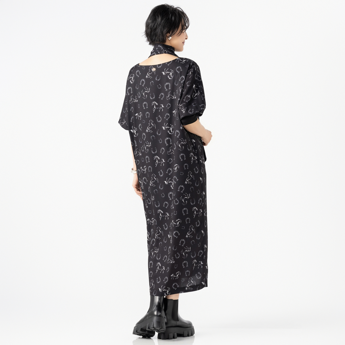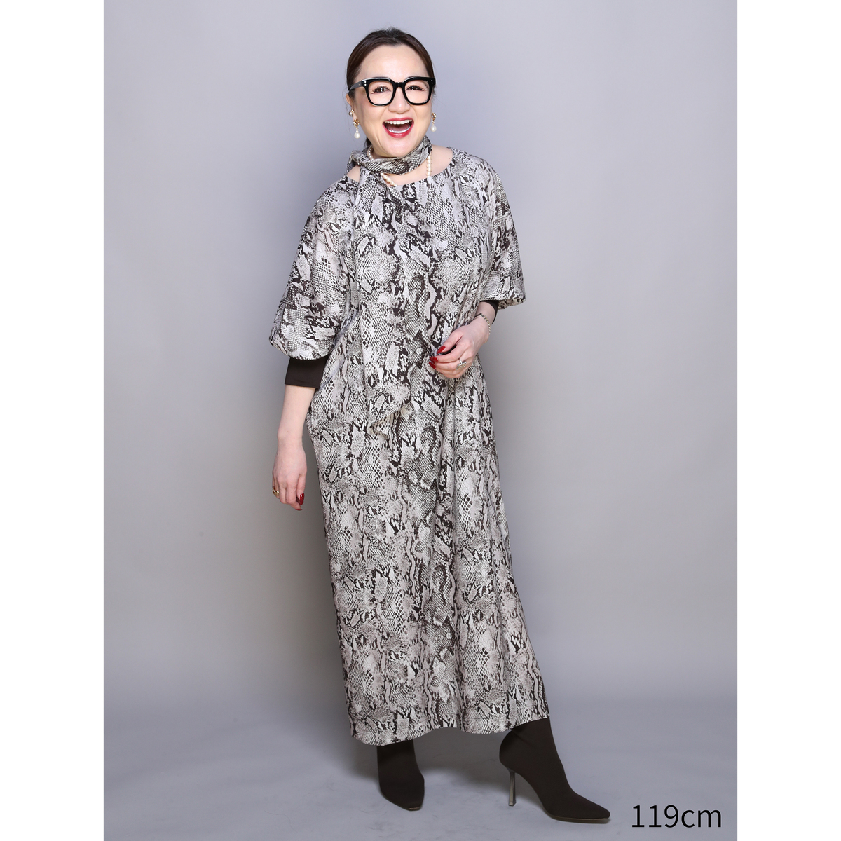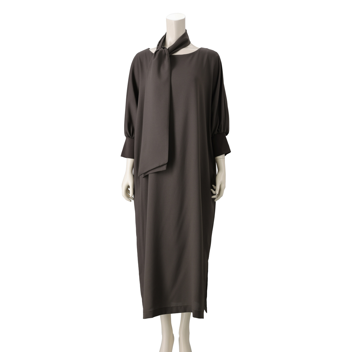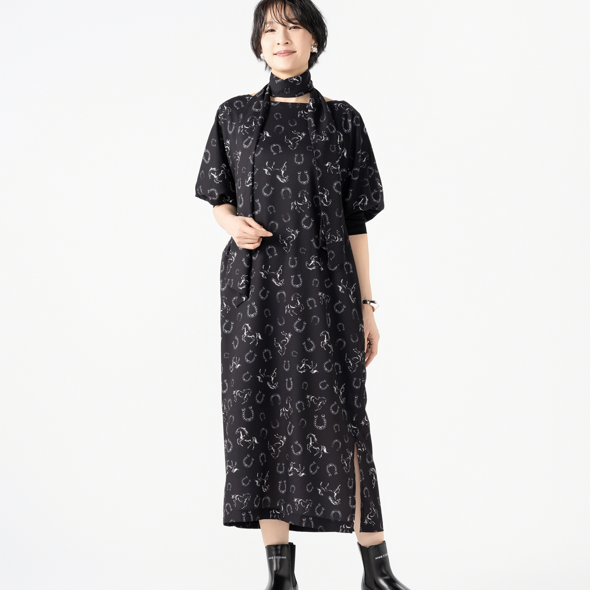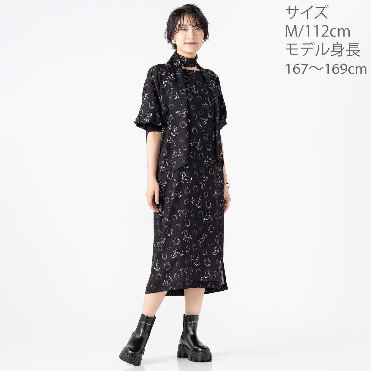 きれい見えするジョーゼット素材に、オリジナリティあるプリントをのせたワンピース。袖はパフスリーブとリブ仕様で、プッシュアップが映えるデザインです。2サイズの着丈から選べる仕様で、自分に合った長さを選べるのも嬉しいポイント。共布ストール付きで着こなしの幅も広がる一枚です