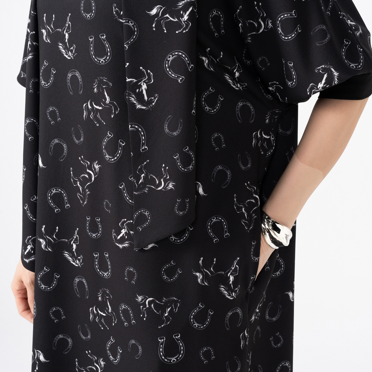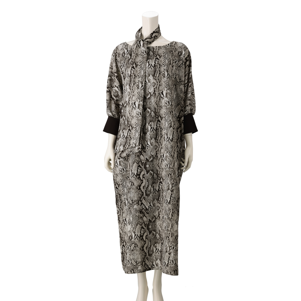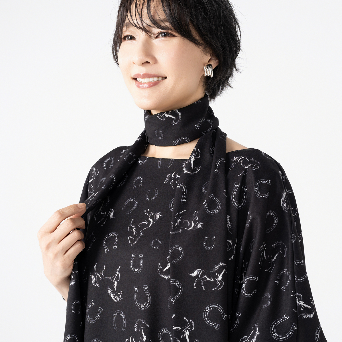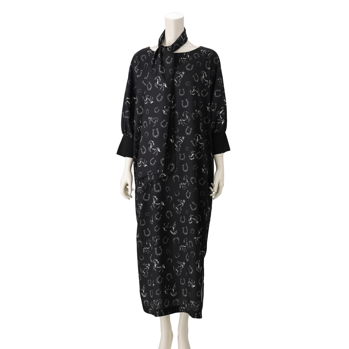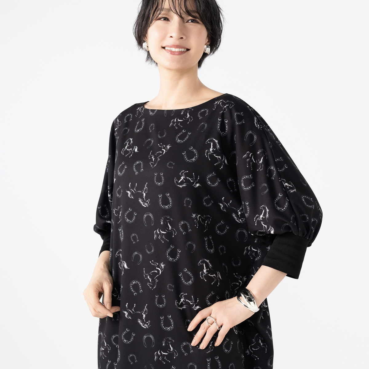 きれい見えするジョーゼット素材に、オリジナリティあるプリントをのせたワンピース。袖はパフスリーブとリブ仕様で、プッシュアップが映えるデザインです。2サイズの着丈から選べる仕様で、自分に合った長さを選べるのも嬉しいポイント。共布ストール付きで着こなしの幅も広がる一枚です