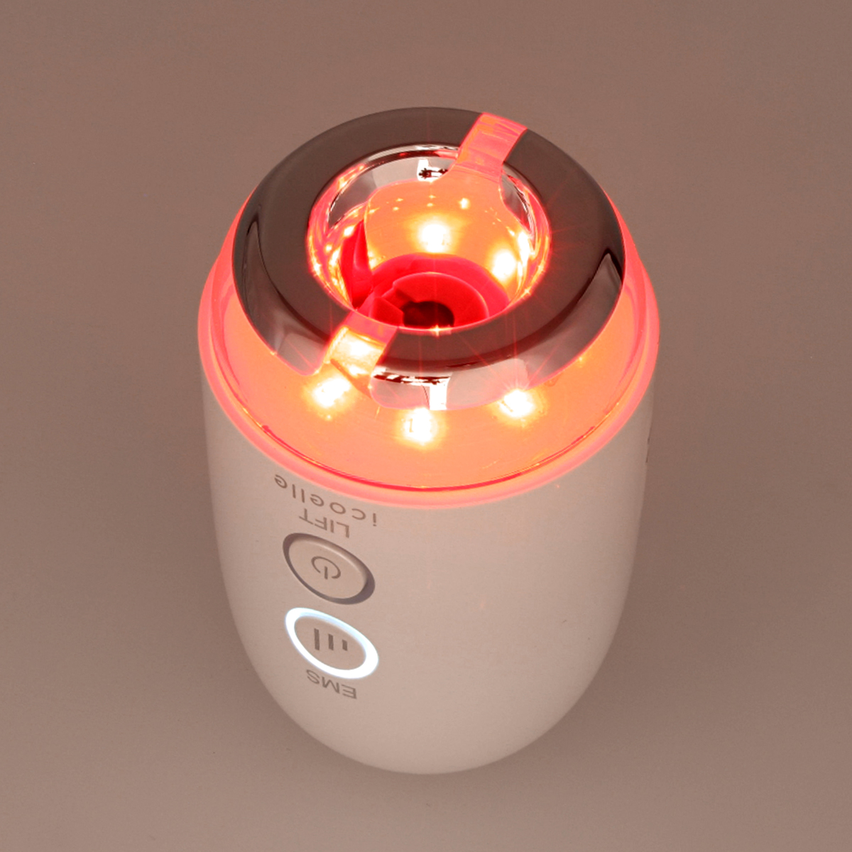 EMSの低・中・高周波による電気刺激や吸引機能、赤LED機能を搭載。EMSの刺激パターンは4種類、約76515回の刺激で筋肉を飽きさせず、約3分間のプログラム後は自動で電源オフ。リビングや寝室などお好きな場所で使える、充電式のコードレスです*