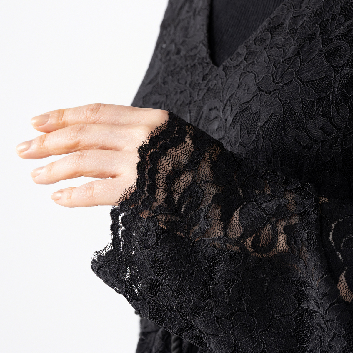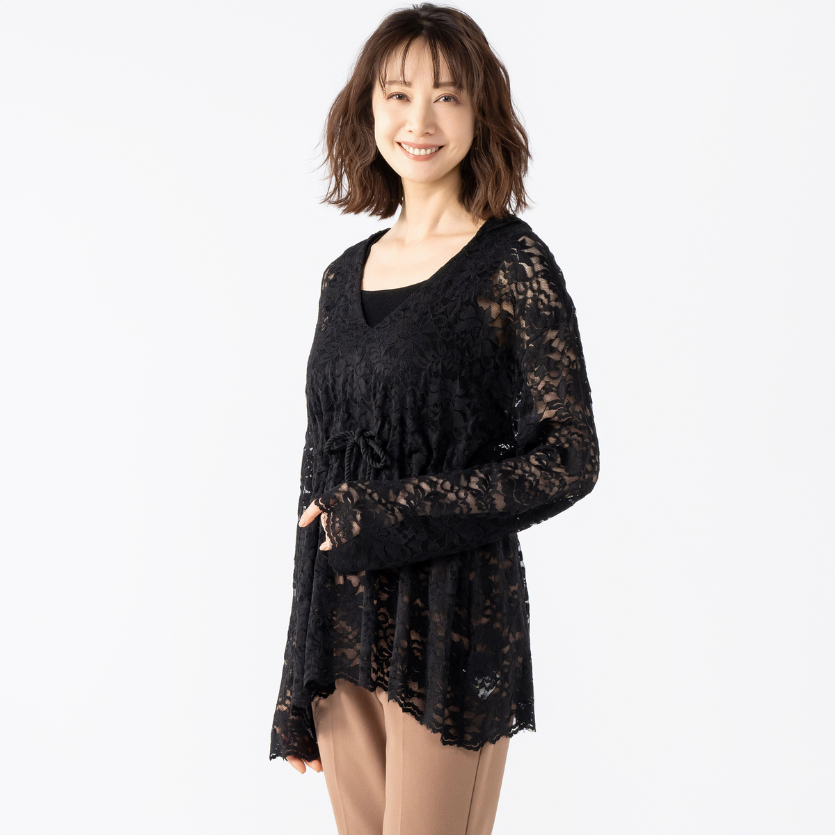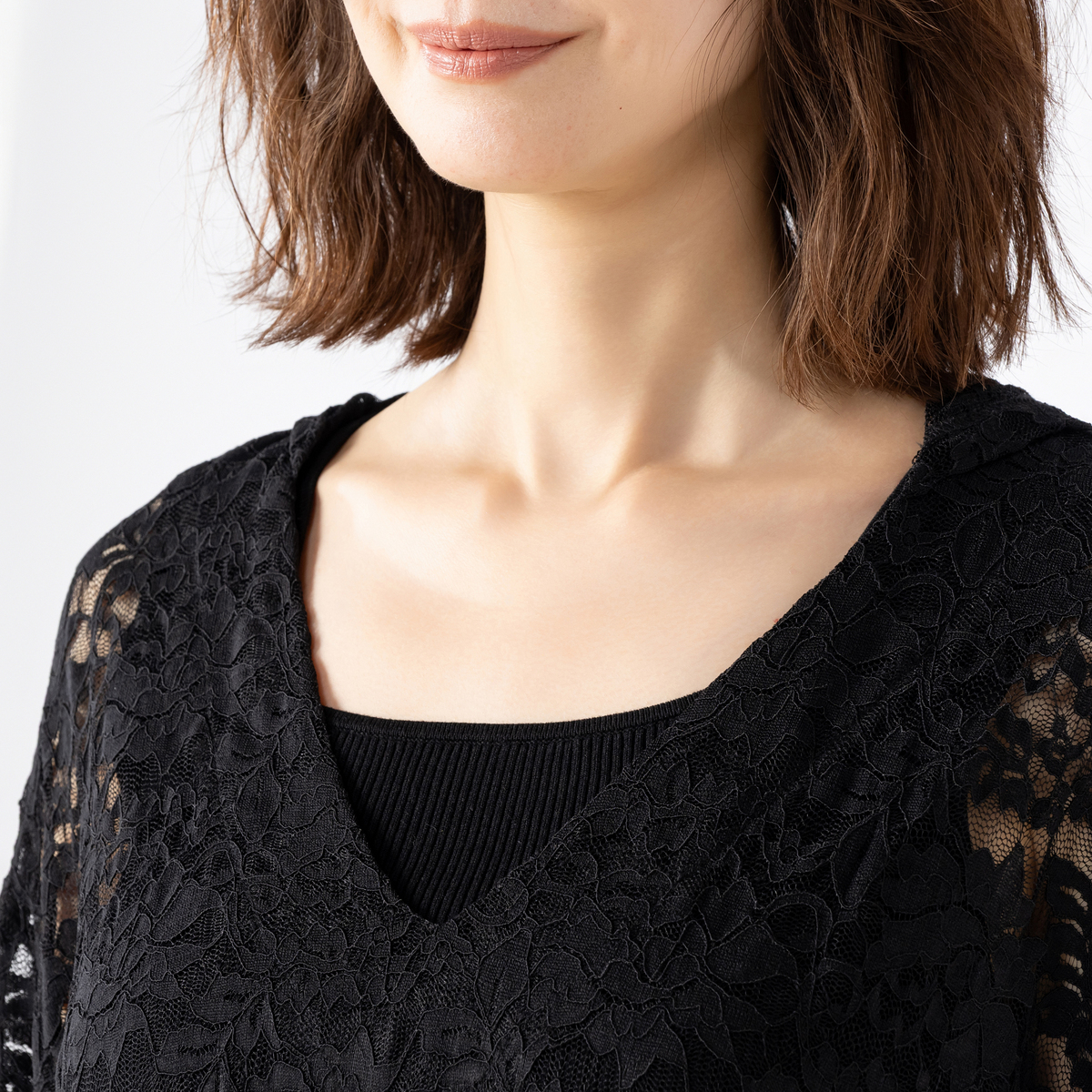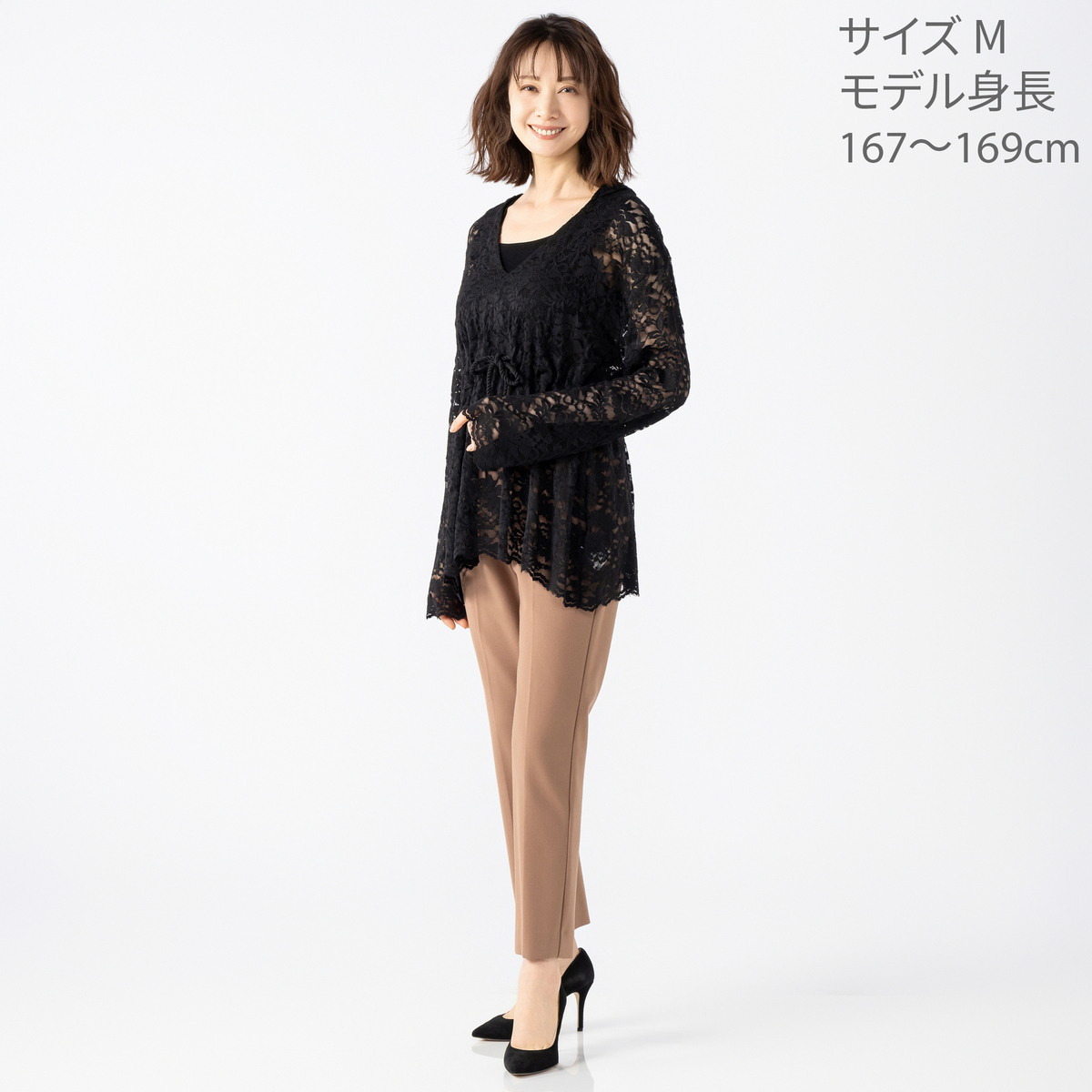 伸縮性のあるレース生地を使用。動きやすくラクな着心地です。合わせるインナー次第でロングシーズン活躍してくれます