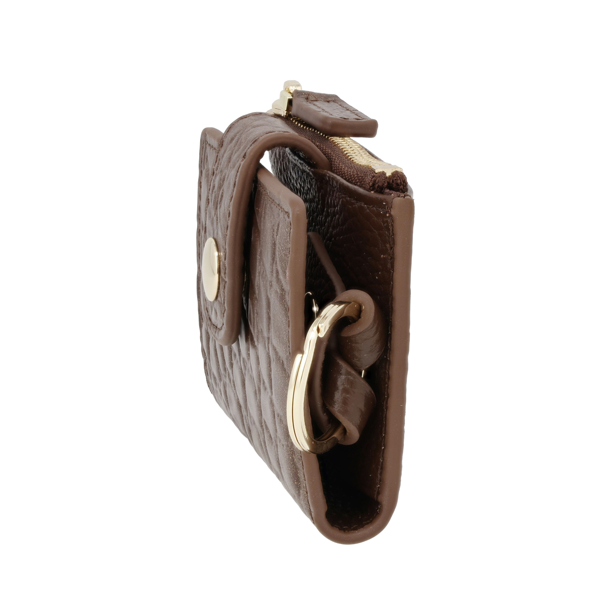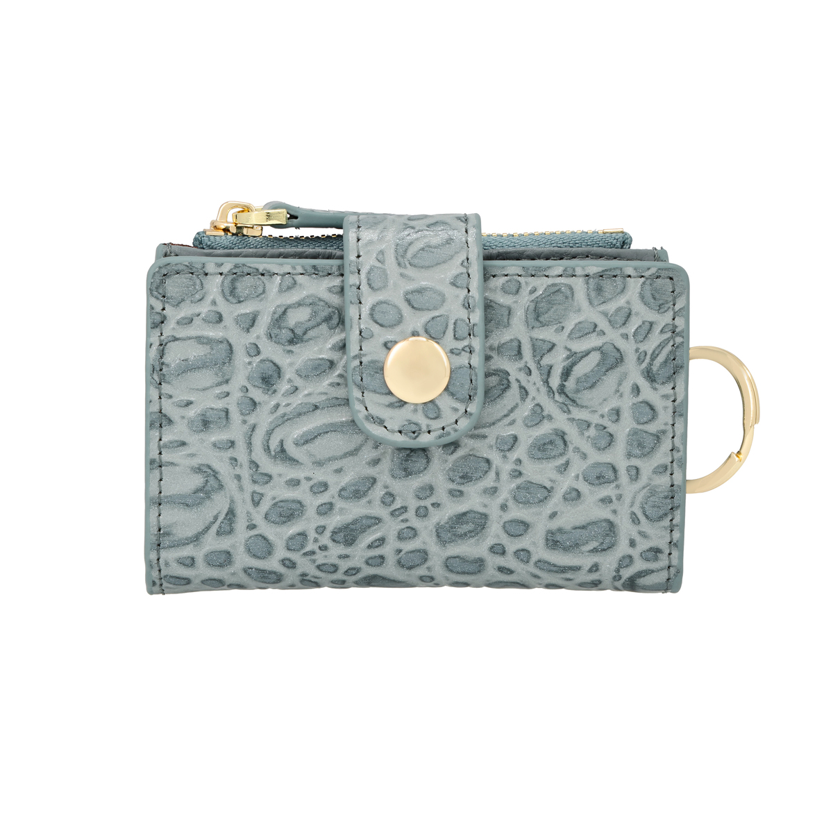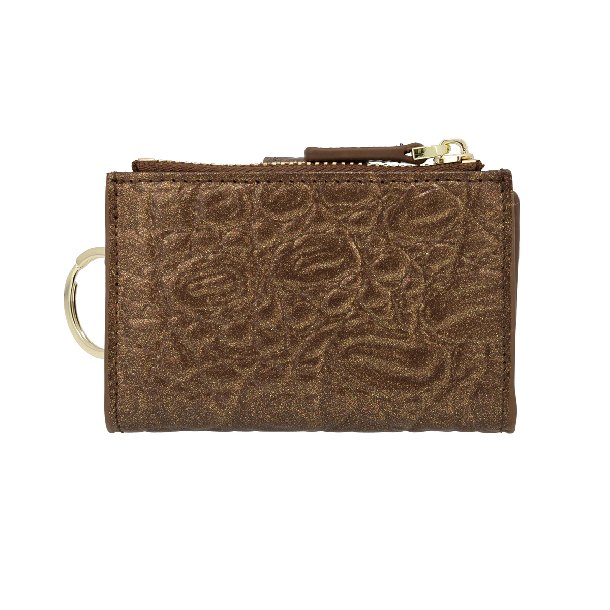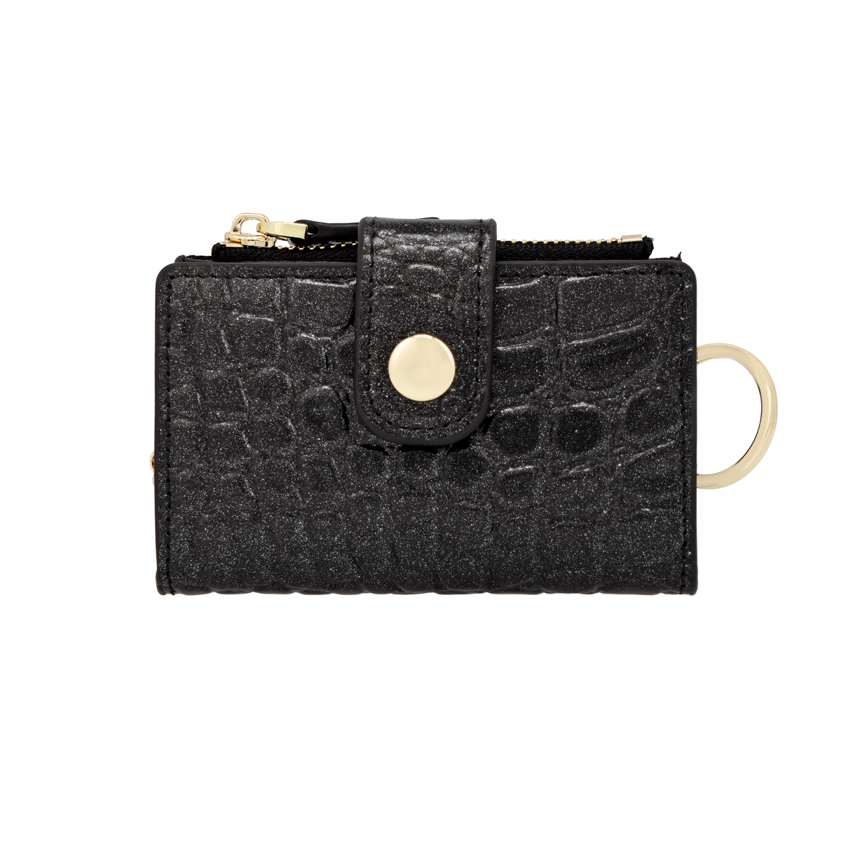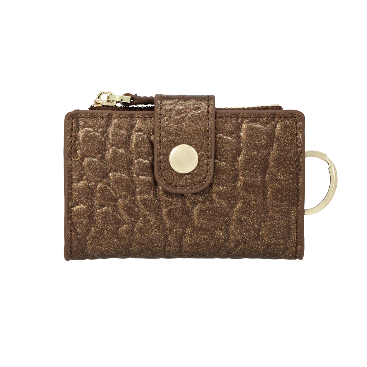 ラメ入りのクロコエンボス牛革を使ったマルチキーケース。凹凸がはっきりしたエンボス加工とゴールドカラーの金具がアクセントになり、革の色合いを引き立てます