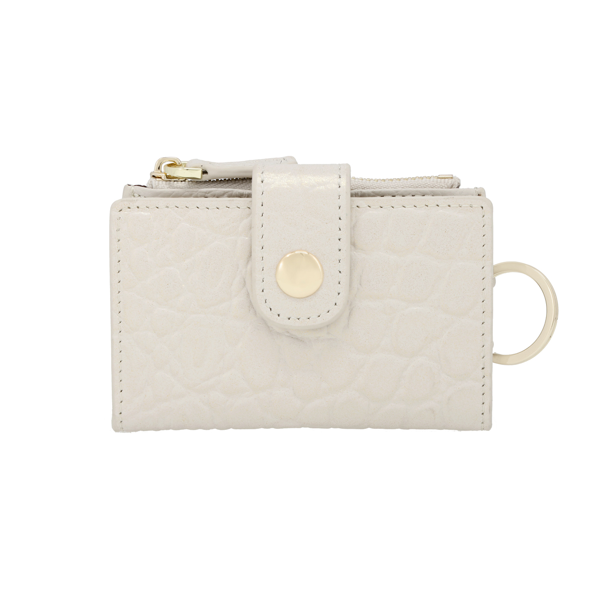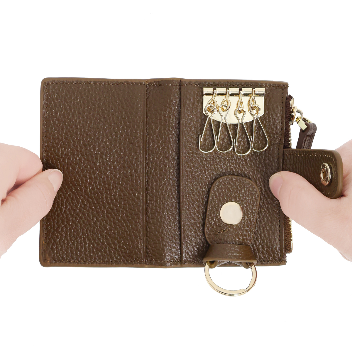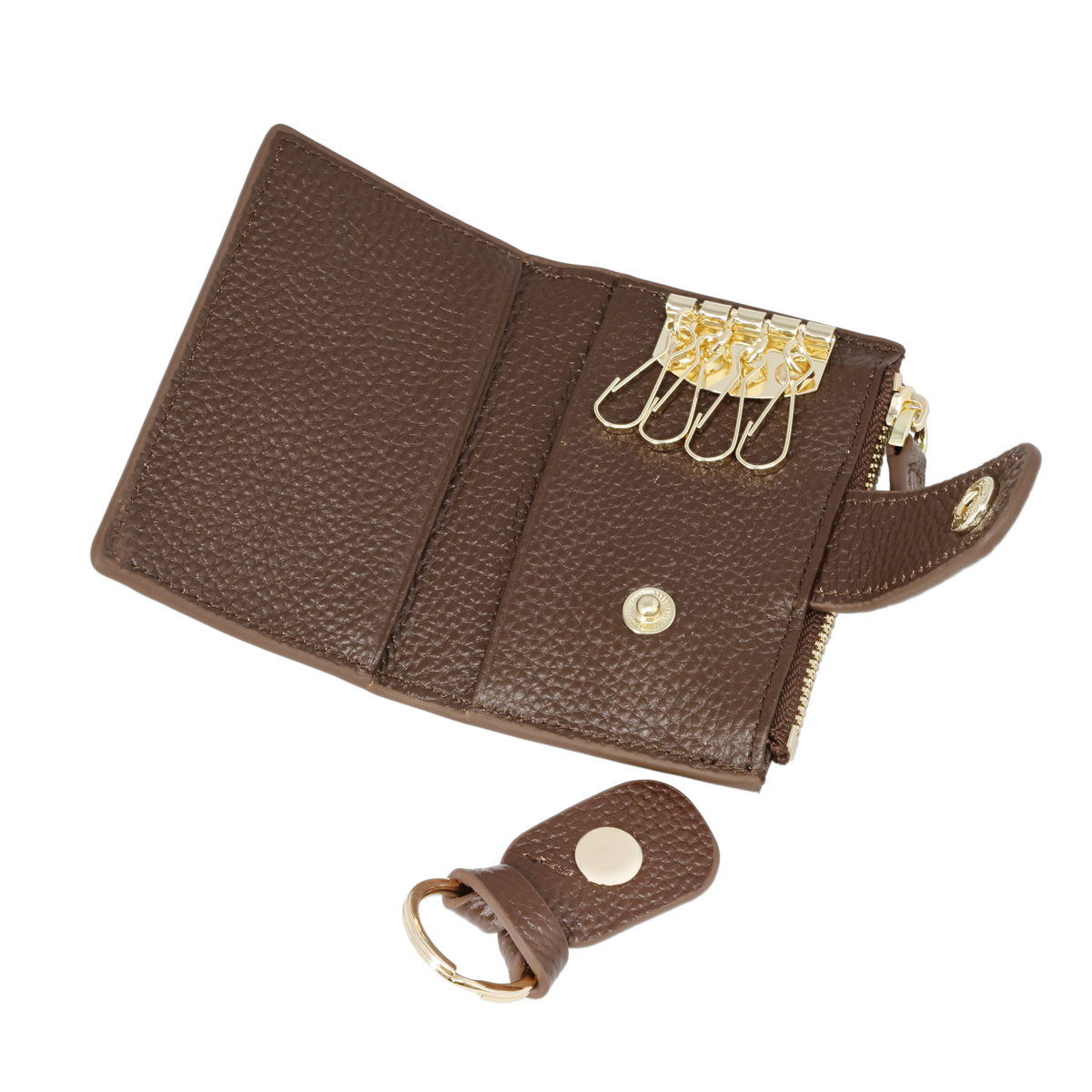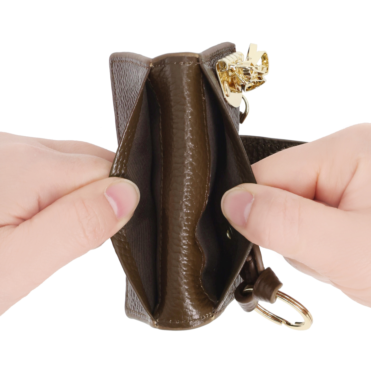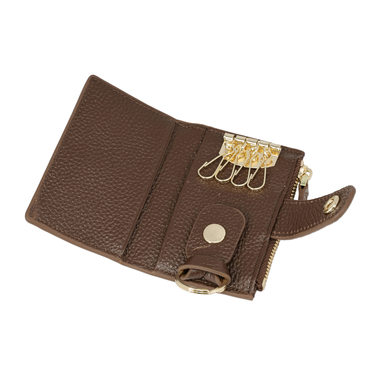 [サイズ(約)] 縦6.5×横10×厚み1.5cm [重量(約)] 60g [素材] 表地:牛革 内側:牛革 ※裏地有 [仕様] 開閉:ホック式 底ビョウ:無 [ポケット] 内側:キーフック×4 キーリング×1 オープンポケット×2 外側:ファスナーポケット×1 【中国製】