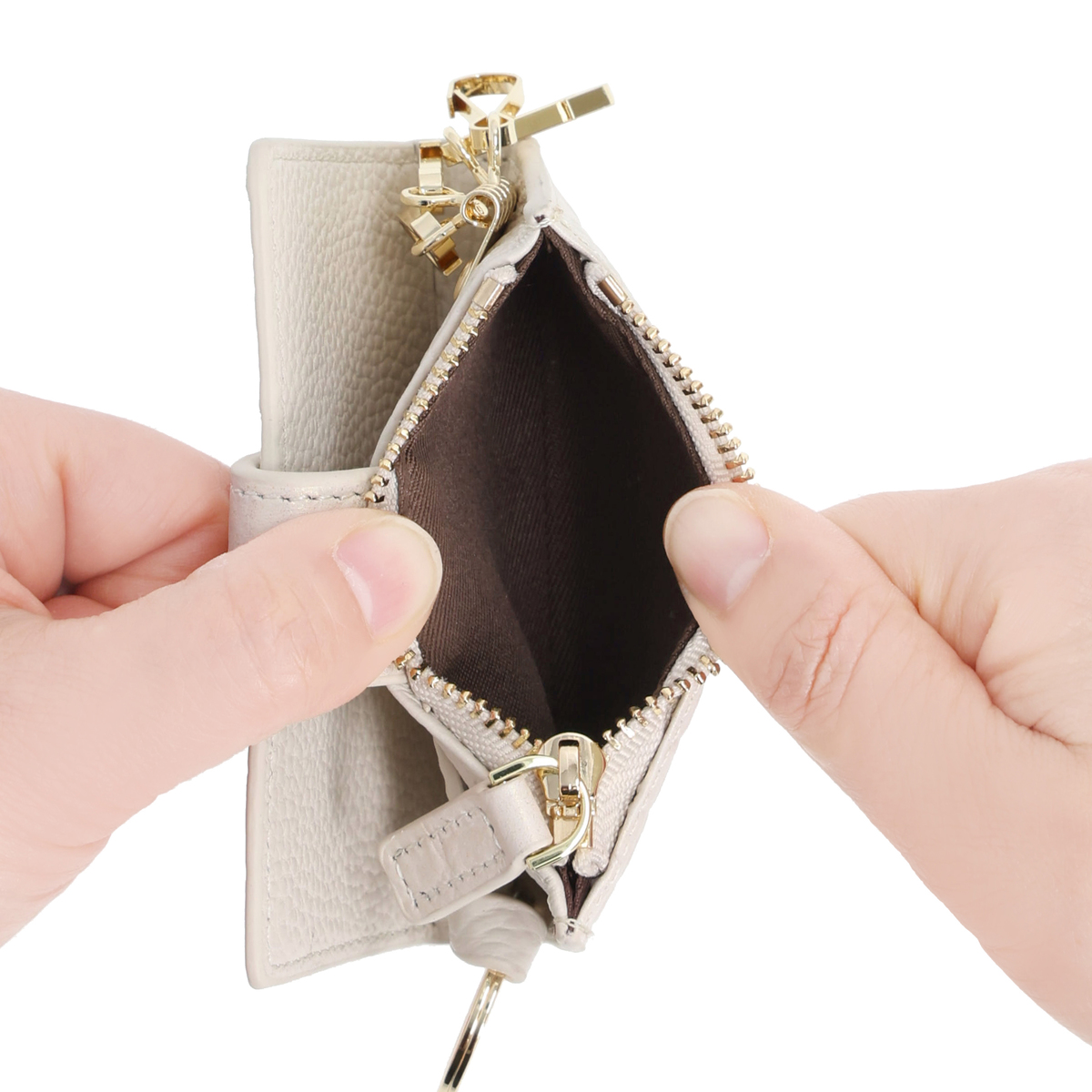 約60gと軽量で、キーフック4つと取り外し可能なキーリング付き。オープンポケット2つとファスナーポケットを備え、小銭やカードもまとめて収納できます