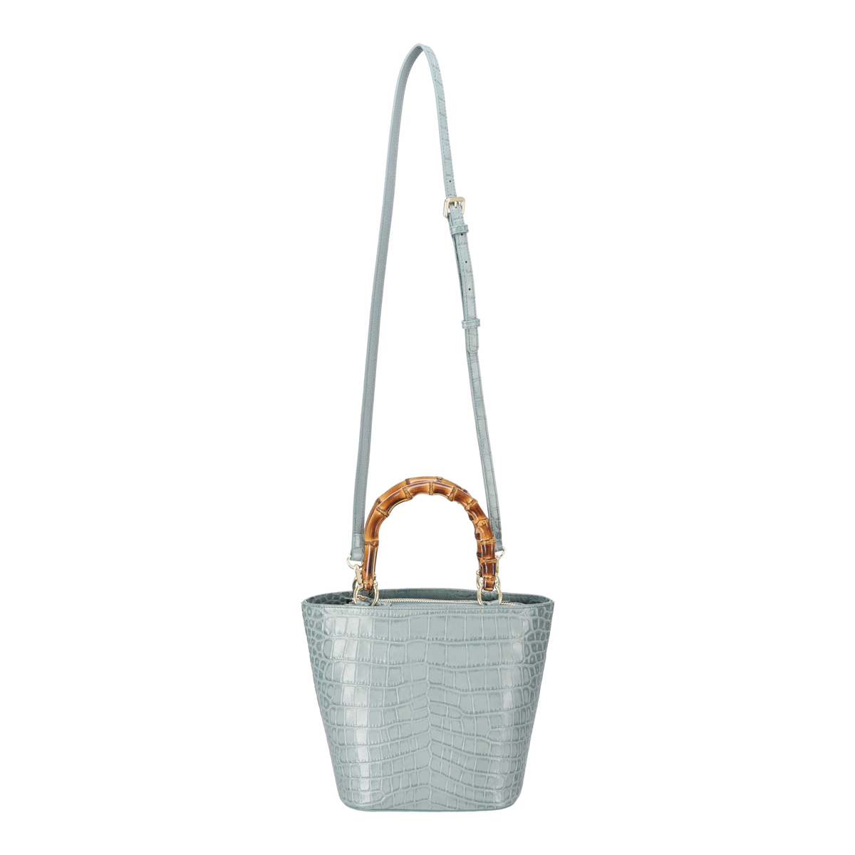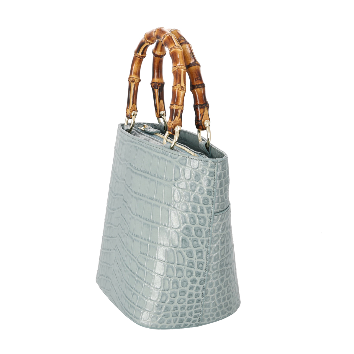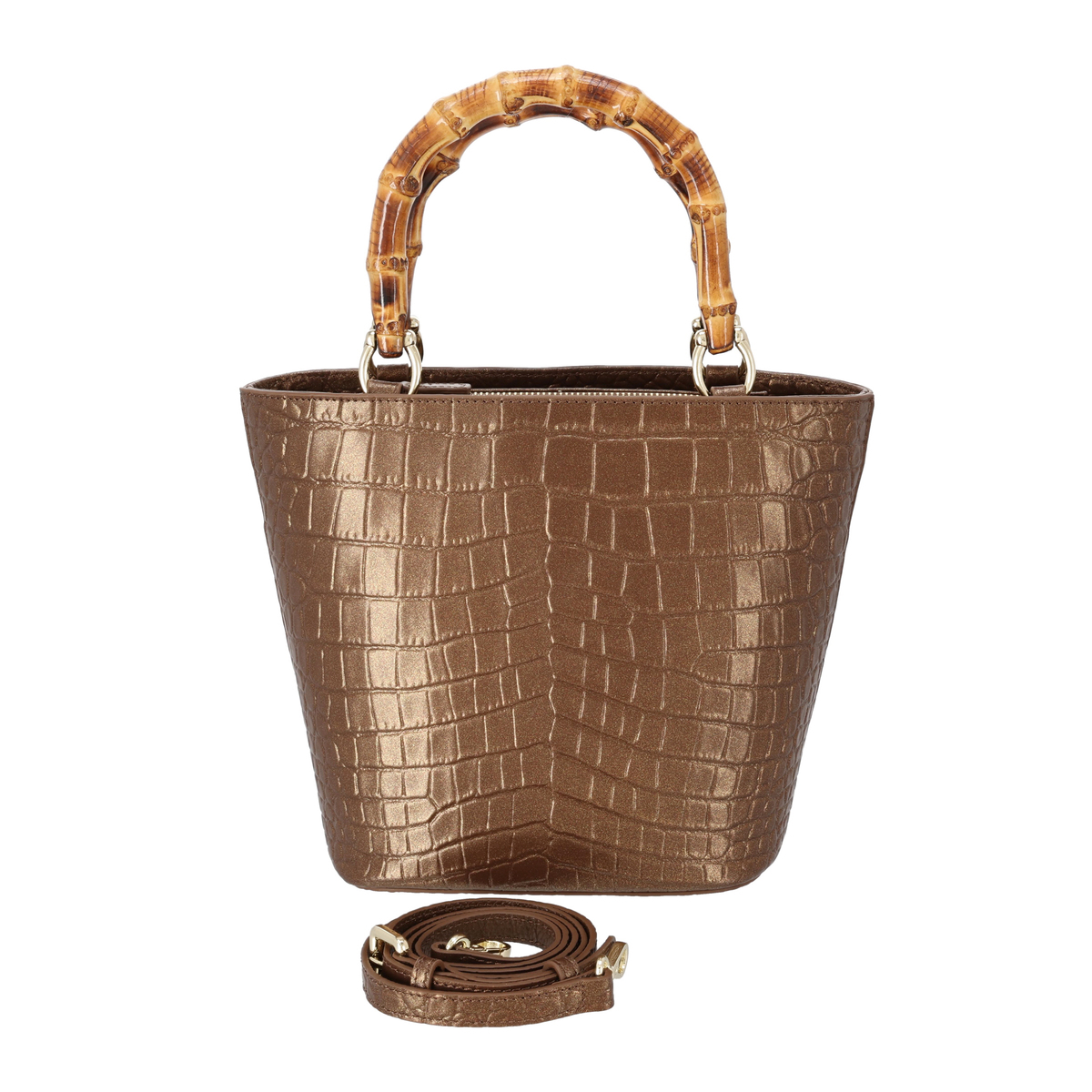 本体にしっかりと牛革を使用。またシルバー以外はラメ加工を施し、上品なきらめき感をプラスしています。牛革素材にしっかりと入れたクロコの型押し。通常型押しを施すと牛革に圧がかかるので硬くなりますが、ソフトな仕上げになっています