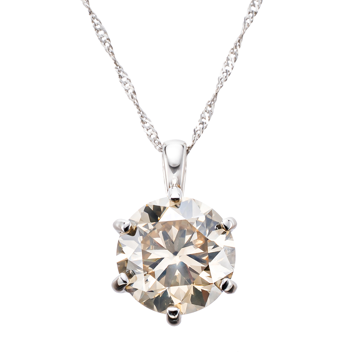 石が主役のシンプルなデザイン。プラチナ台に1.5ctUPのシャンパンカラーダイヤモンドをあしらったペンダントです