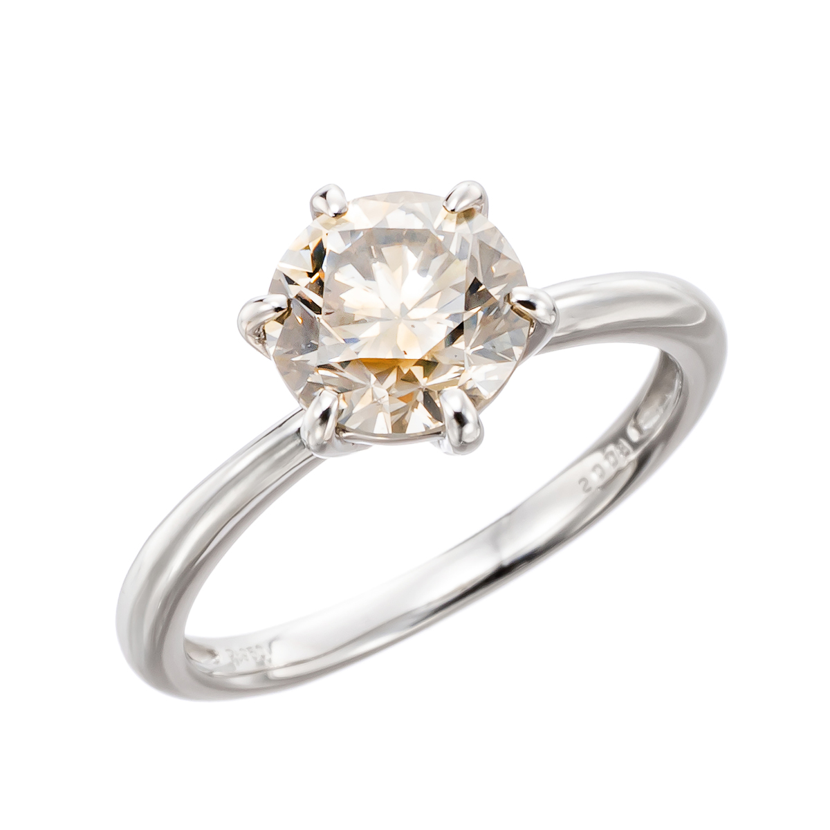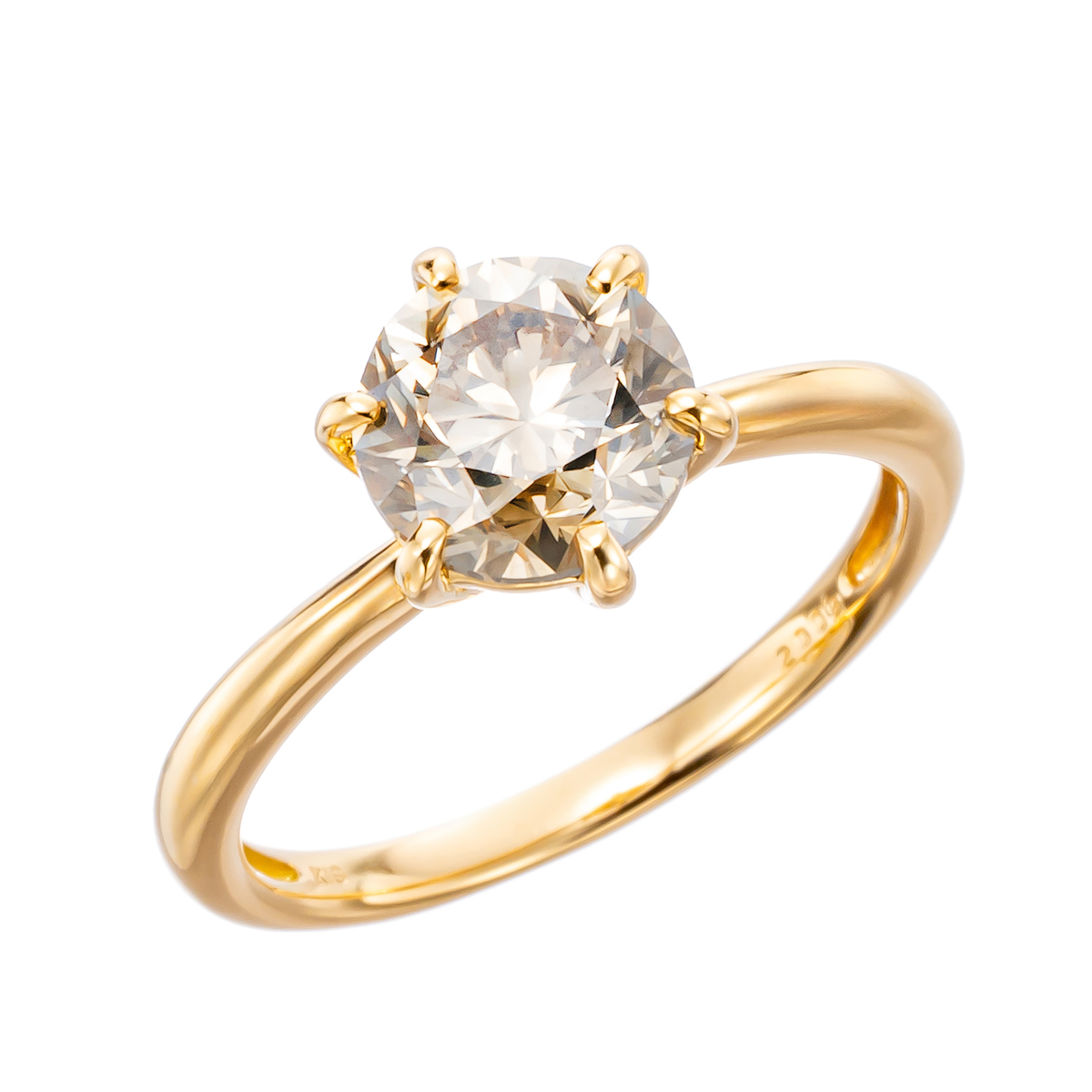 シャンパンカラーダイヤモンドリング 2.0ctUP鑑定書付