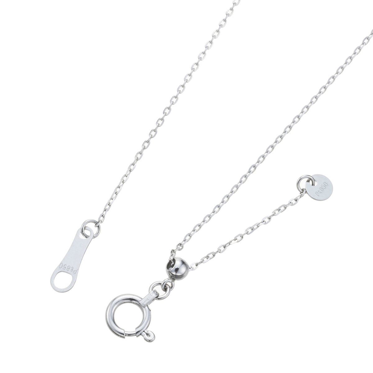 [地金] プラチナ850 総重量(約) 0.9g 長さ(約) 45.0cm 幅(約) 0.7mm チェーンの形状 アズキ 留具の形状 引き輪 アジャスターの有無 有(スライド式) 留め具の受け側 最大幅×高さ 2.7×2.1mm ■受注発注商品のためデザイン・価値に影響のない範囲で仕様が変わる場合がございます ■素材の大きさ・形・色合い、製品のサイズは1点1点多少異なります 【日本製】