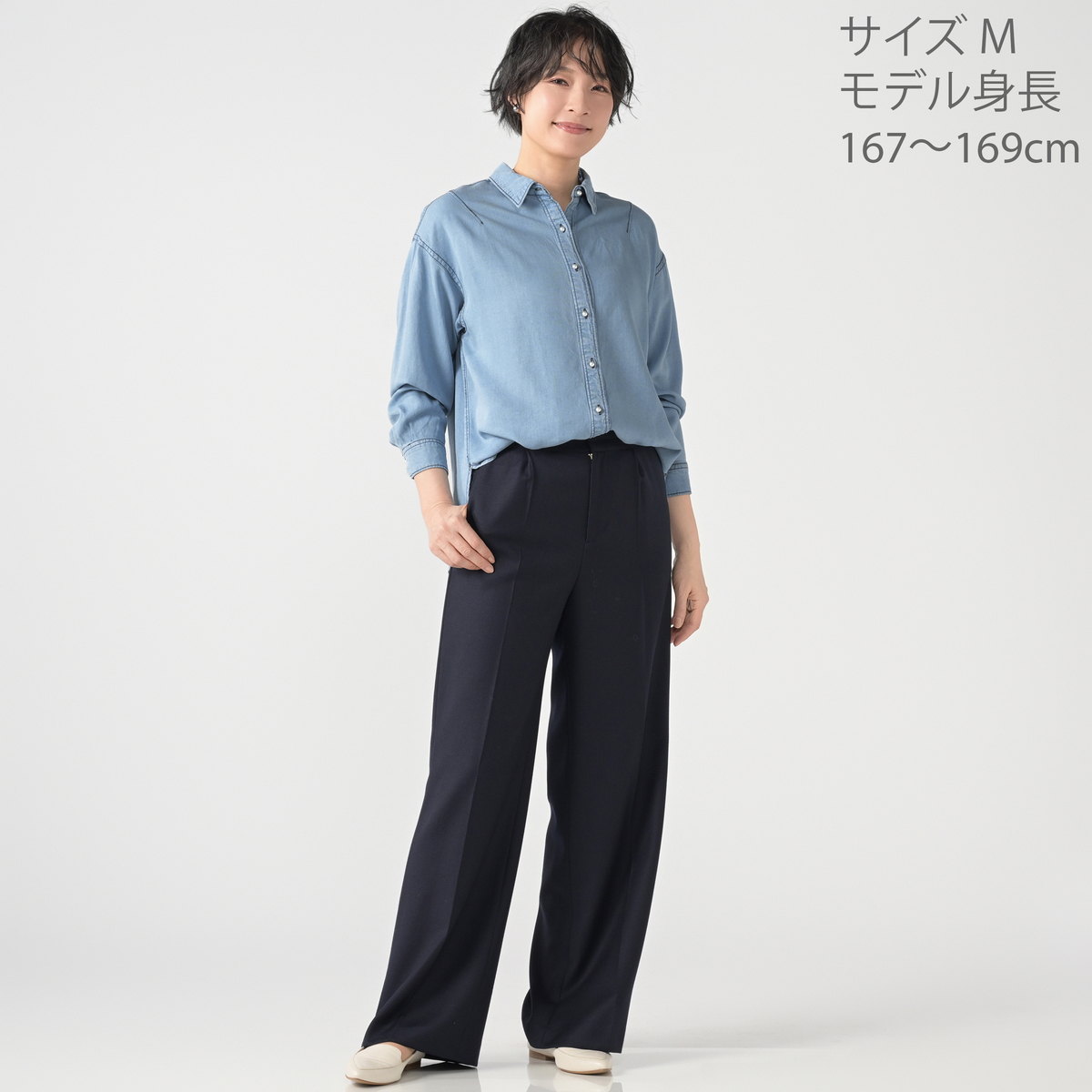 柔らかくしなやかなデニム生地を使用。きれいめな素材感で、レディーライクな雰囲気で着こなせます