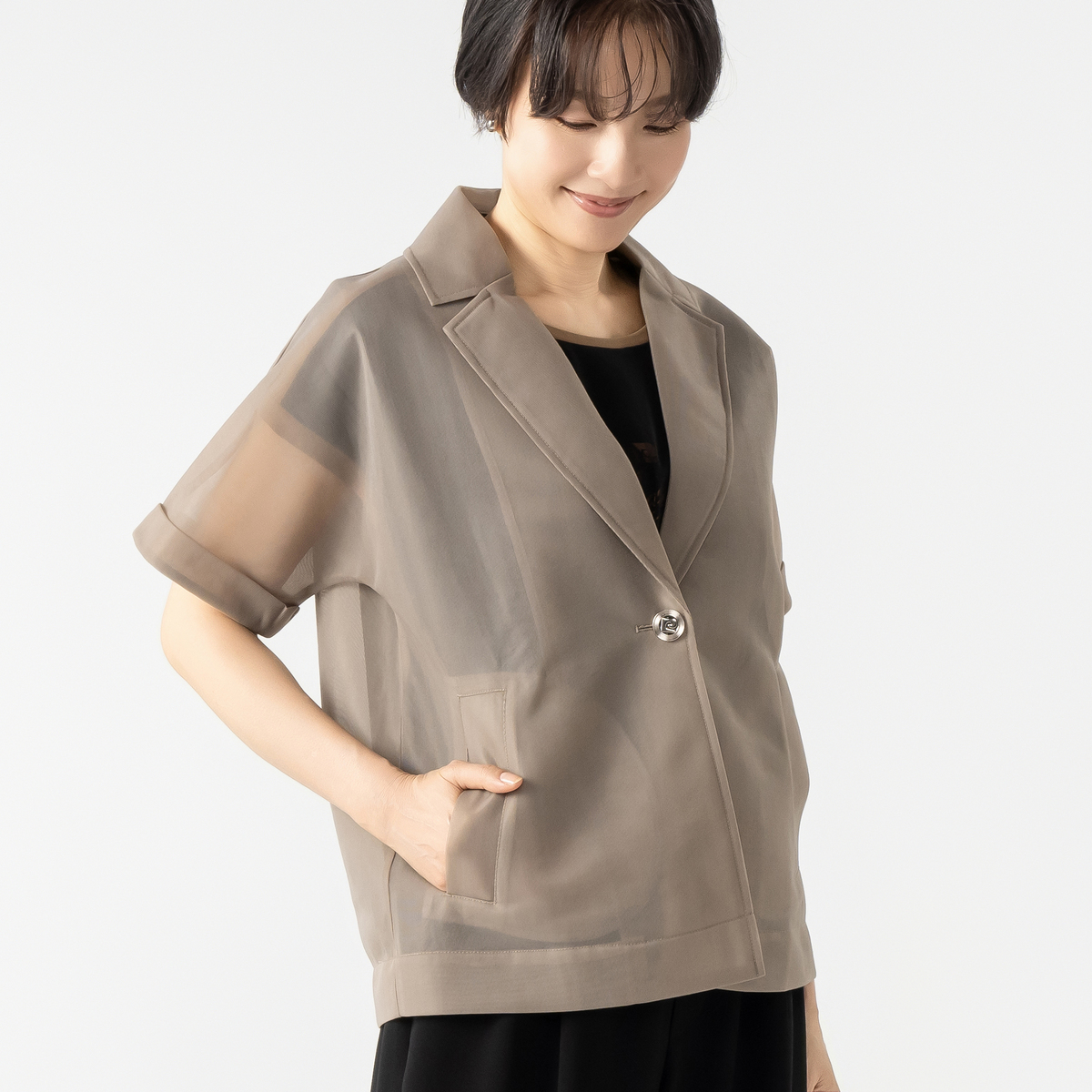 No. 752927 PCD チュールボンディングの半袖テーラージャケット
