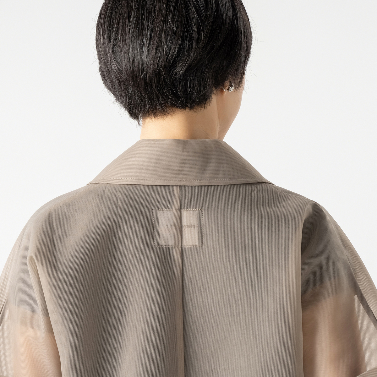短すぎない袖丈で二の腕をカバーし、裏地なしで軽く、裏側の縫い代は丁寧にトリミング。脱いだ瞬間まで上質さが際立つ、大人のための一枚です
