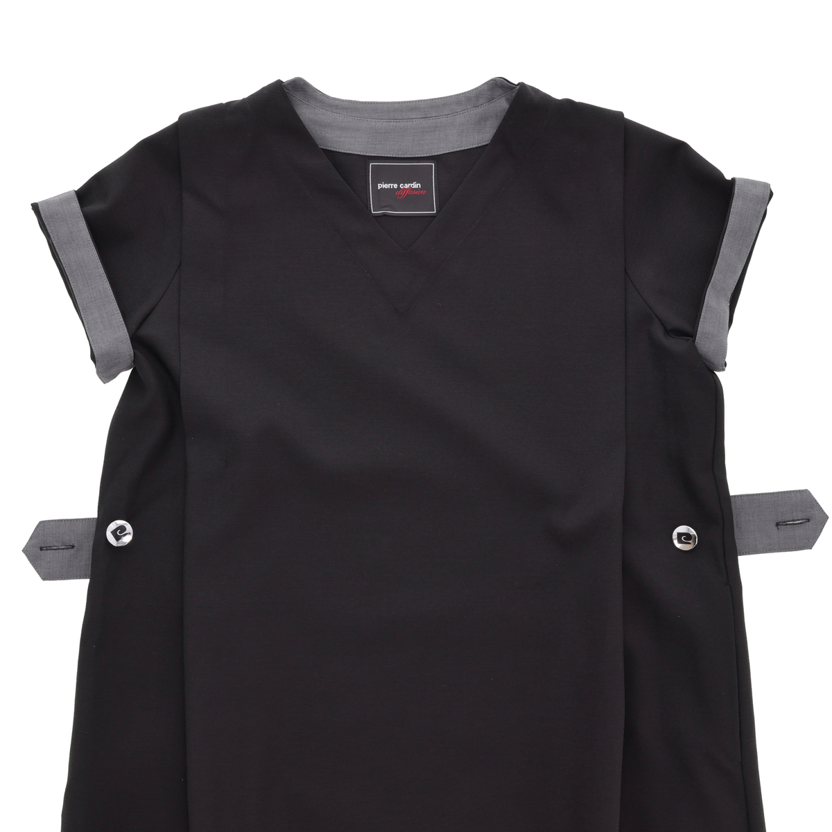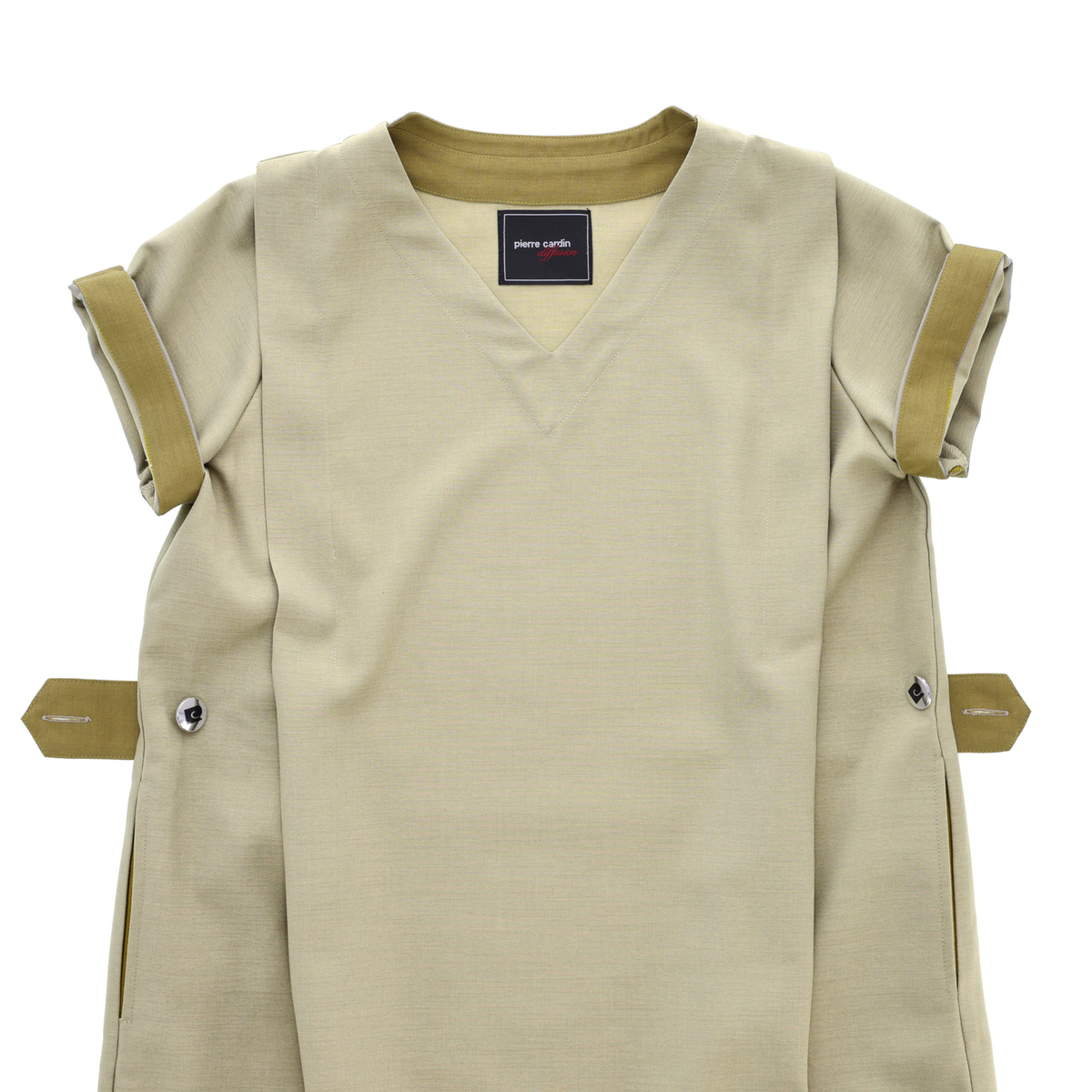 両脇にはポケットを配置。ブランドロゴ入りのボタンが付いたタブが、シルエットを美しく整え、全体にメリハリを与えます。衿裏やタブ裏などをさりげない配色使いに。シンプルな装いにもモダンなアクセントをプラスします