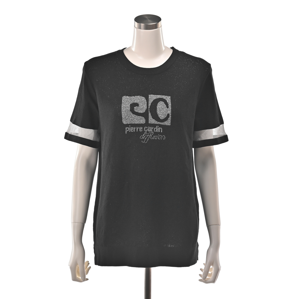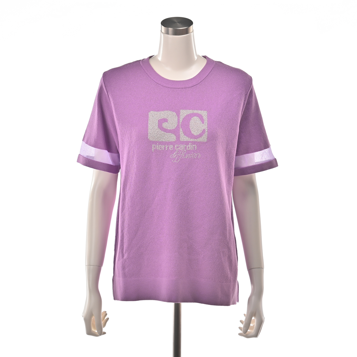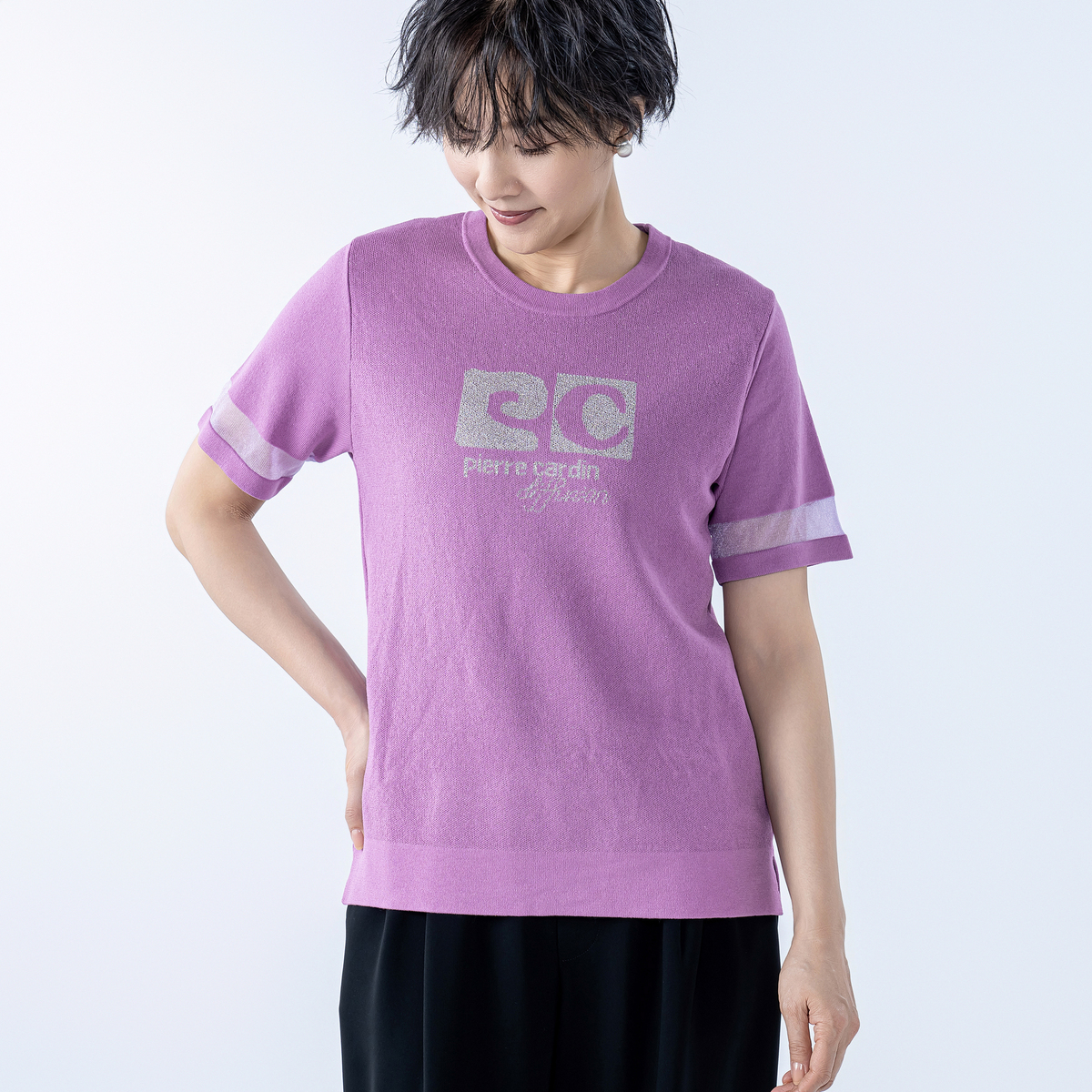No. 752929 PCD 半袖シアーラインのラメロゴジャカードニットプルオーバー