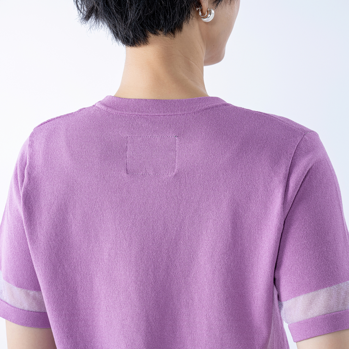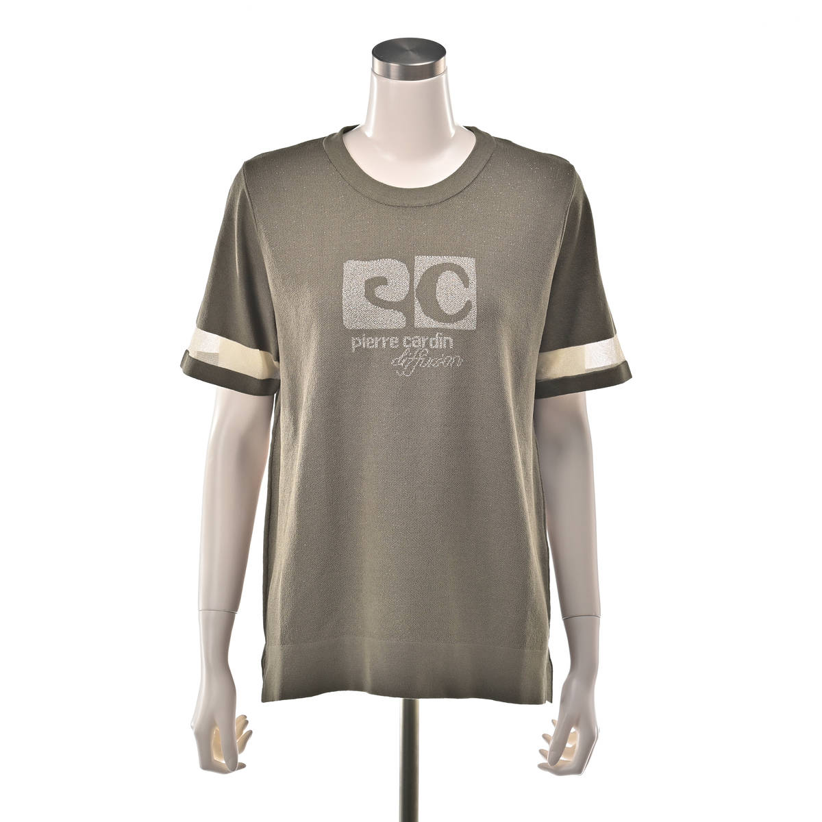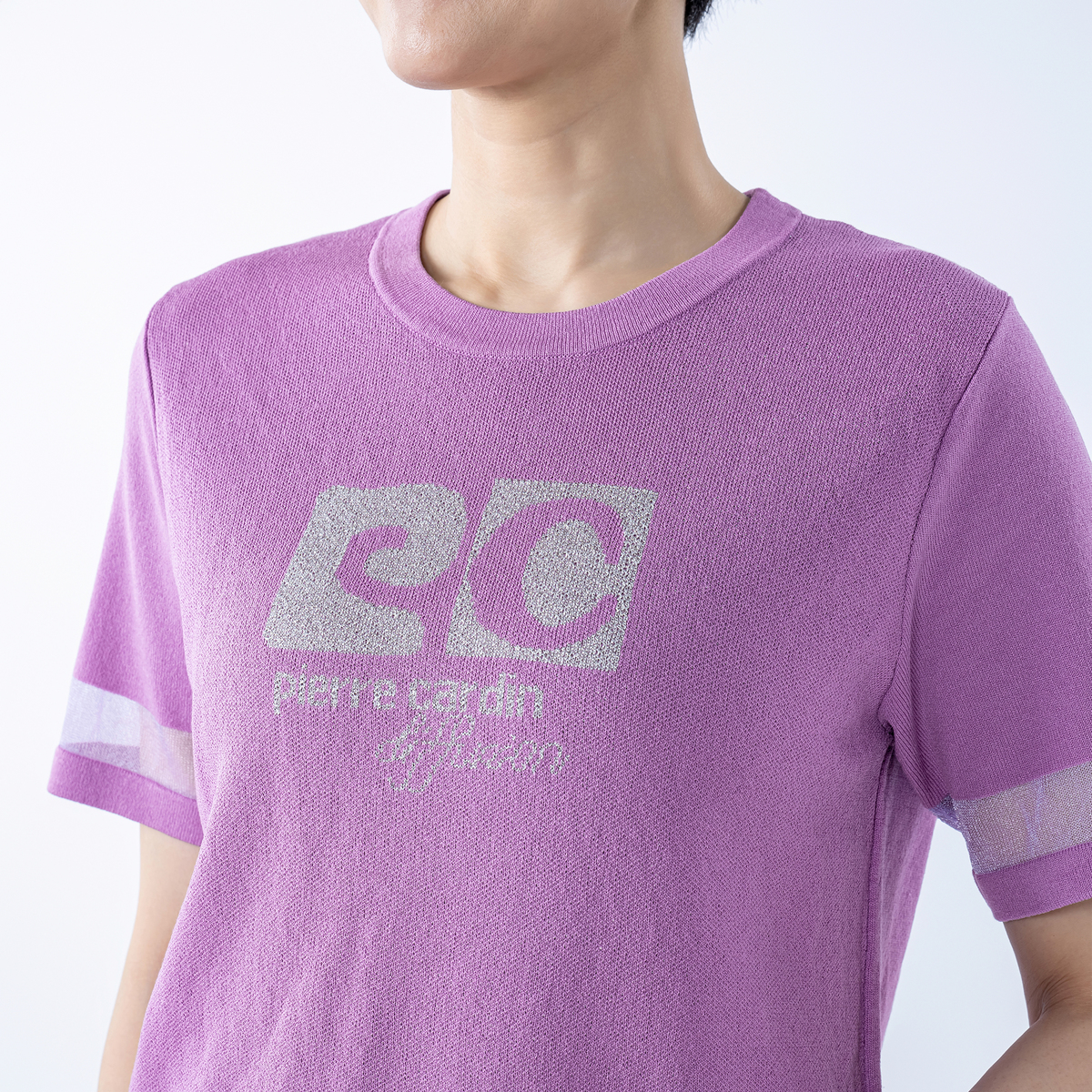 No. 752929 PCD 半袖シアーラインのラメロゴジャカードニットプルオーバー