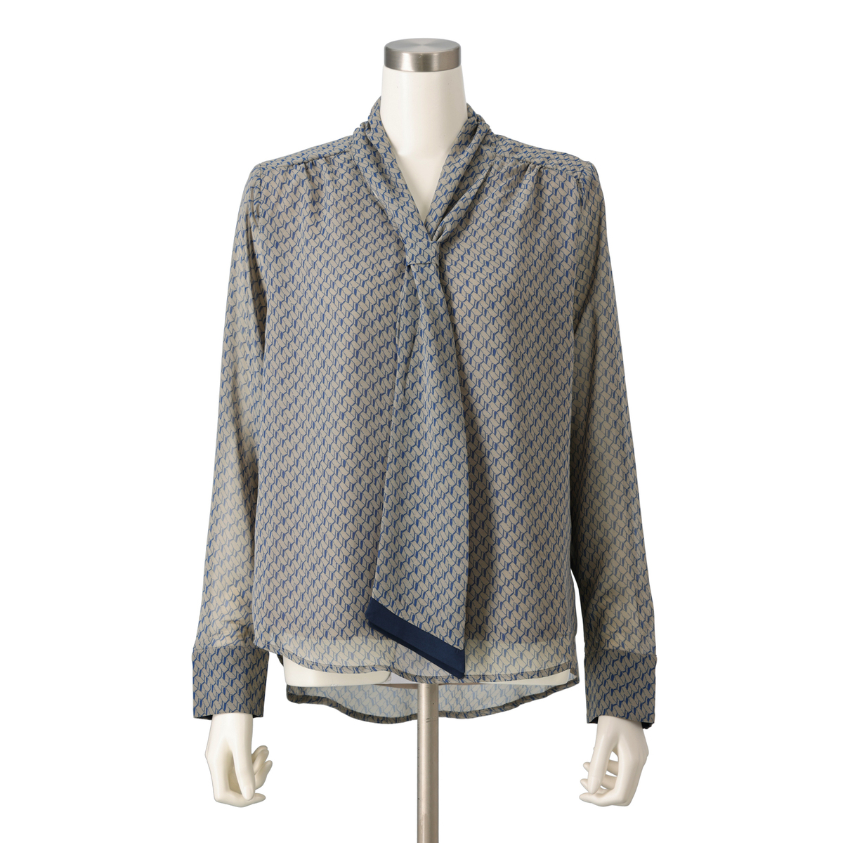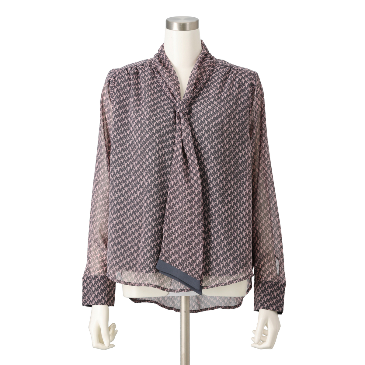 No. 752932 PCD バイヤスジオメトリック柄のシャーリングボウタイブラウス