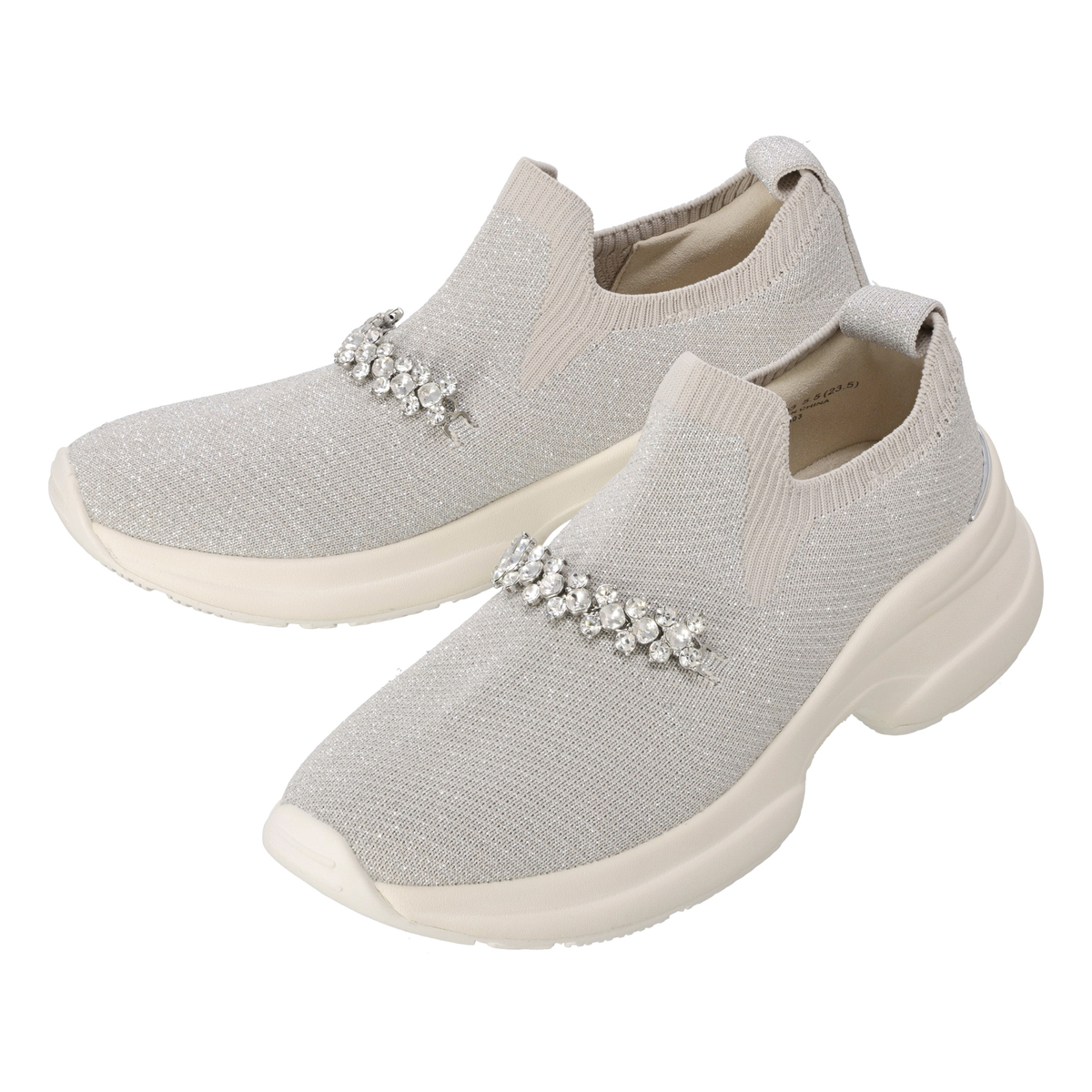 ビジューパーツが華やかさをプラス。気分やシーンに合わせて取り外しできるので、シンプルなプレーンスニーカーとしても活躍します
