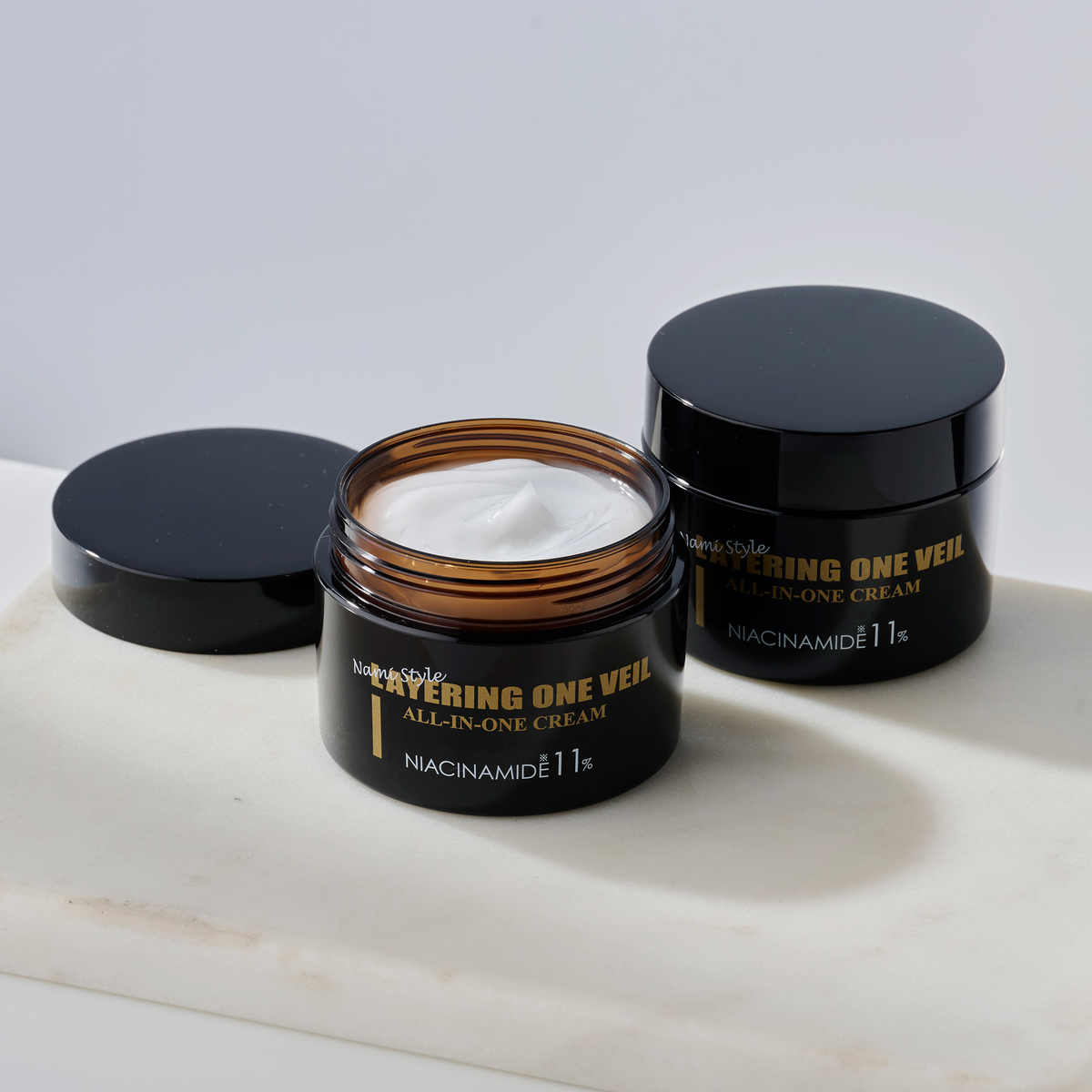 [セット内容] ナミスタイル レイヤリングワン ヴェール 50g(スパチュラ付き)×2 [使用方法] 洗顔後の清潔な肌にご使用ください。パール粒大を手に取り、お顔全体にやさしくなじませてください。目元や口元など気になる部分には重ね塗りしてください [注意事項] ※お肌に異常が生じていないかよく注意して使用してください。化粧品がお肌に合わないとき即ち次のような場合には、使用を中止してください。そのまま化粧品類の使用を続けますと、症状を悪化させることがありますので、皮膚科専門医等にご相談されることをおすすめします (1)使用中、赤み、はれ、かゆみ、刺激、色抜け(白斑等)や黒ずみ等の異常があらわれた場合 (2)使用したお肌に、直射日光があたって上記のような異常があらわれた場合 ※傷やはれもの、しっしん等、異常のある部位にはお使いにならないでください ※目に入らないようにご注意ください。もし入った場合は、こすらずにすぐ水又はぬるま湯で洗い流してください。目に異物感が残る場合は、眼科医にご相談ください ※開封後は容器のキャップをしっかりと閉め、お早めにご使用ください ※乳幼児の手の届かないところに保管してください ※極端に高温又は低温の場所、直射日光のあたる場所には保管しないでください ※自然由来成分を配合しておりますので、色や香りが商品によって若干異なる場合、また、経時により変化する場合がありますが品質には問題ありません 【日本製】 [成分] 水、ナイアシンアミド、BG、グリセリン、スクワラン、オリーブ油脂肪酸セテアリル、セタノール、ステアリルアルコール、オリーブ油脂肪酸ソルビタン、コハクエキス、セラミドNP、セラミドAP、加水分解コラーゲン、アセチルヒアルロン酸Na、加水分解ヒアルロン酸、サクシノイルアテロコラーゲン、ローヤルゼリーエキス、水溶性プロテオグリカン、ナス果実エキス、アロエベラ葉エキス、カミツレ花エキス、 トウキンセンカ花エキス、フユボダイジュ花エキス、ヤグルマギク花エキス、ローマカミツレ花エキス、セイヨウオトギリソウ花/葉/茎エキス、キュウリ果実エキス、セイヨウキズタ葉/茎エキス、 アルニカ花エキス、ゼニアオイ花エキス、パリエタリアエキス、セイヨウニワトコ花エキス、アーチチョーク葉エキス、サッカロミセス溶解質エキス、マカデミアナッツ脂肪酸フィトステリル、ヒドロキシアセトフェノン、ペンチレングリコール、ラウロイルグルタミン酸ジ(フィトステリル/オクチルドデシル)、ジメチコン、PEG-60水添ヒマシ油、ラウリン酸ポリグリセリル-10、ポリソルベート60、(アクリル酸ヒドロキシエチル/アクリロイルジメチルタウリンNa)コポリマー