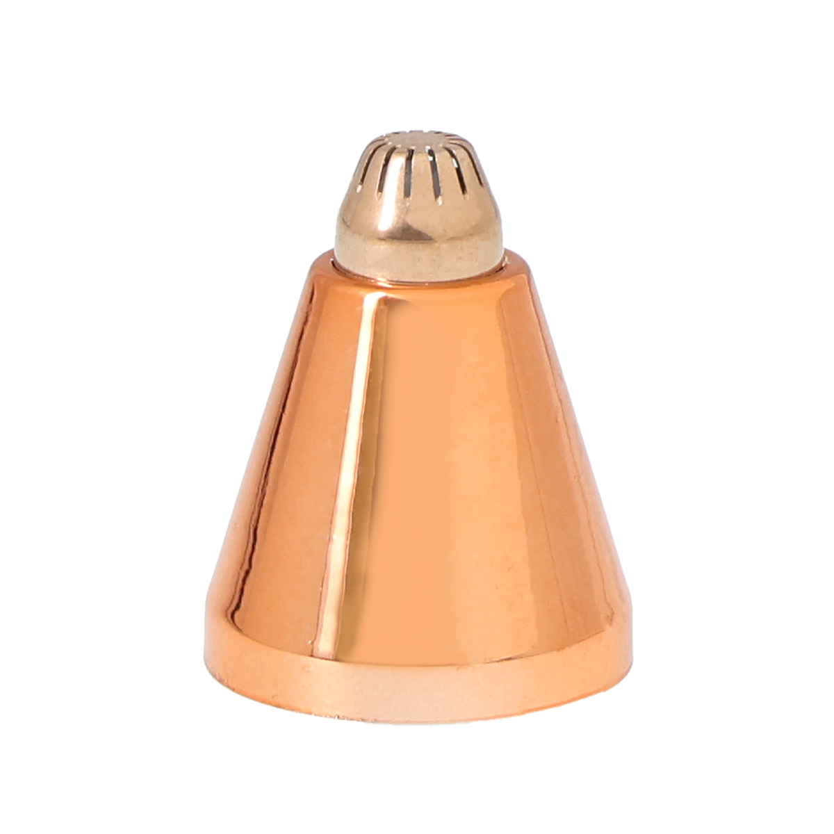 眉や目のきわなど細かい部分のお手入れにおすすめの、先端がペン先のような形状。肌に直接刃を当てない構造です。ヘッド内部の刃が回転しながら肌表面の産毛を吸い込んでカットします