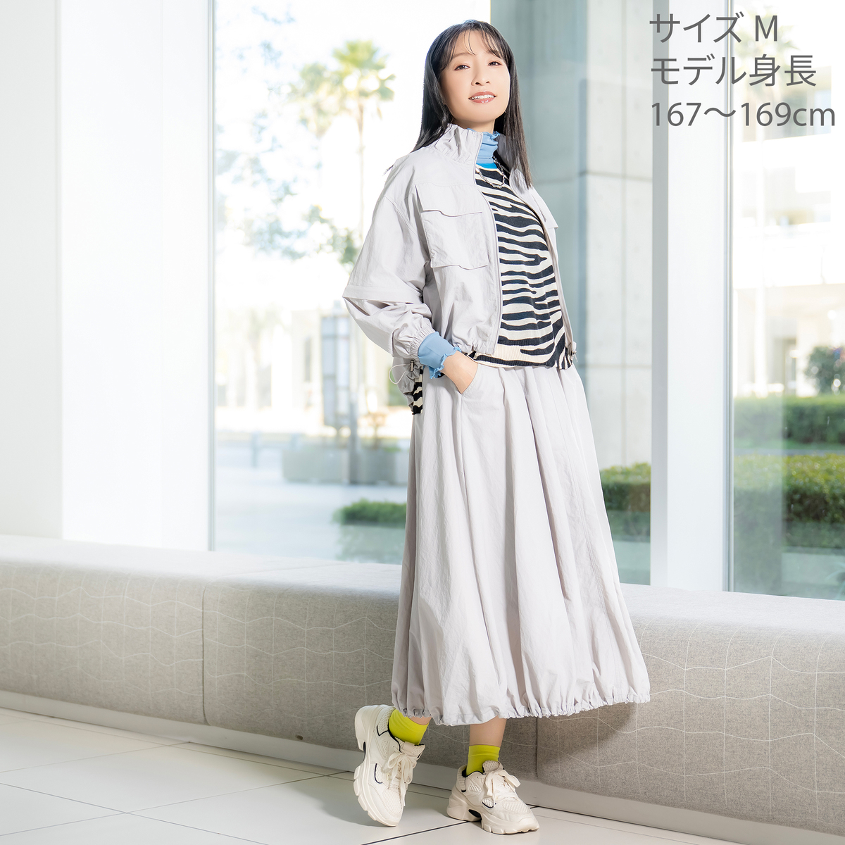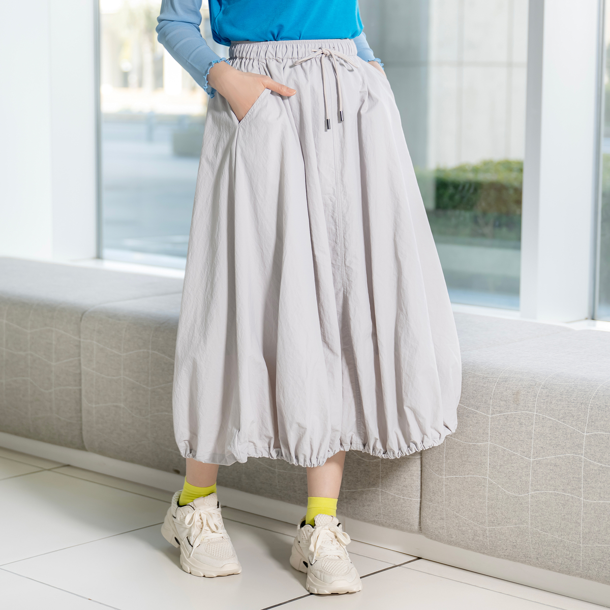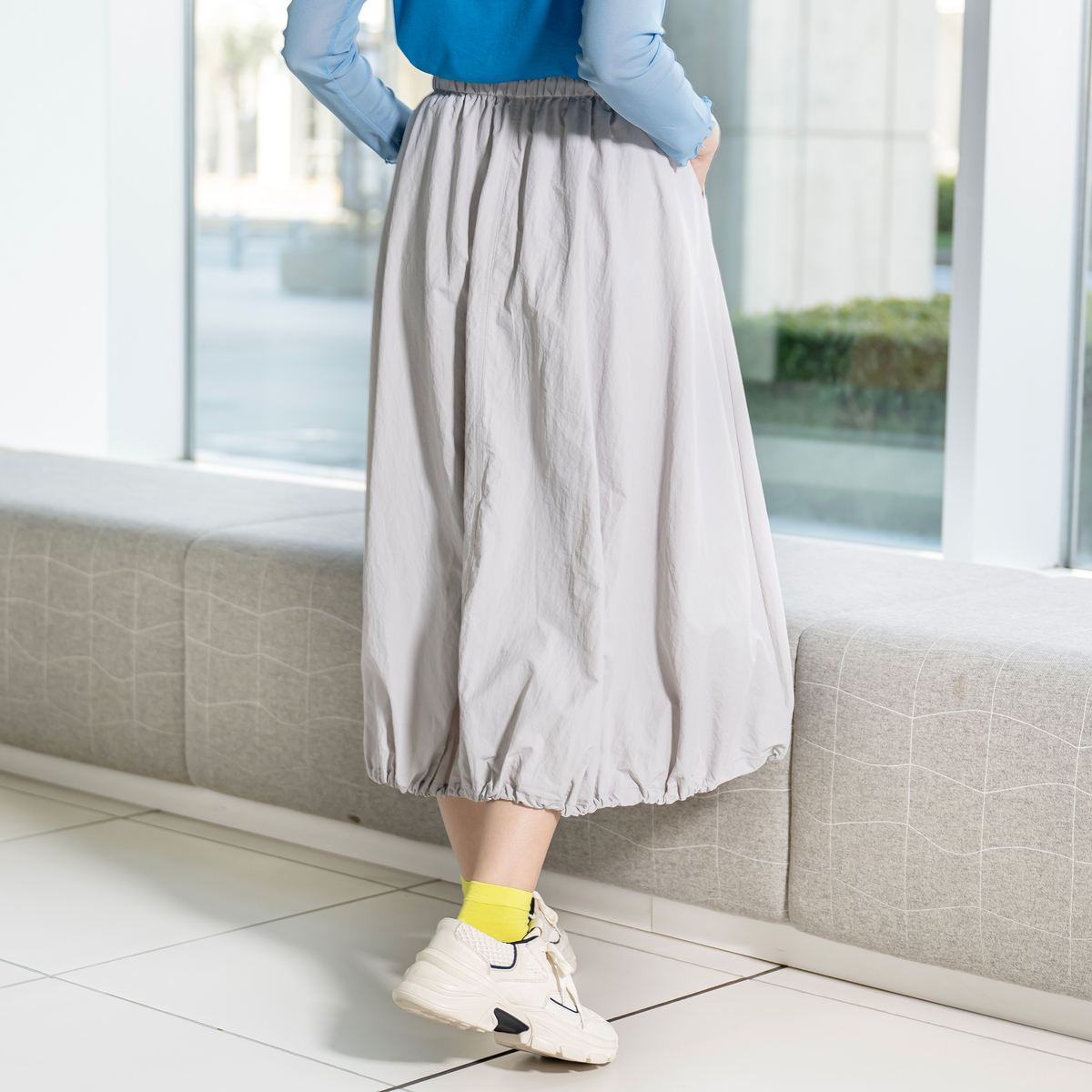 ふんわりと立体感のあるバルーンスカートです。ナイロンワッシャー素材の自然なシワ感が動きを生み、シンプルなトップスと合わせるだけでこなれた印象に。内側のドロスト仕様でシルエットを変えられ、気分に合わせてお楽しみいただけます