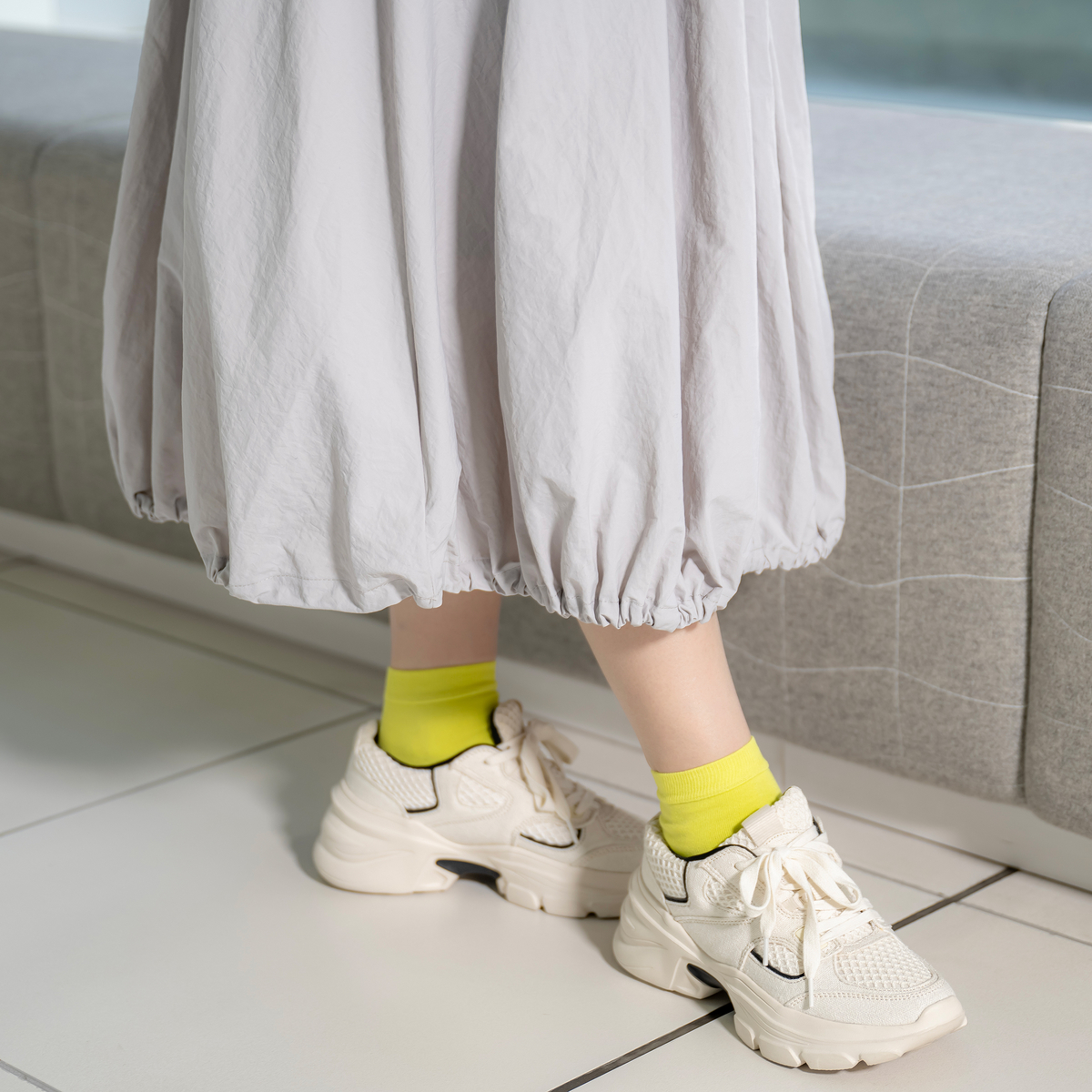 インナーをコンパクトにまとめれば、スカートの丸みが引き立ちます。足元はスニーカーで軽快に、フラットシューズで上品に仕上げるなど、シーンに合わせて自在にコーディネートをお楽しみください