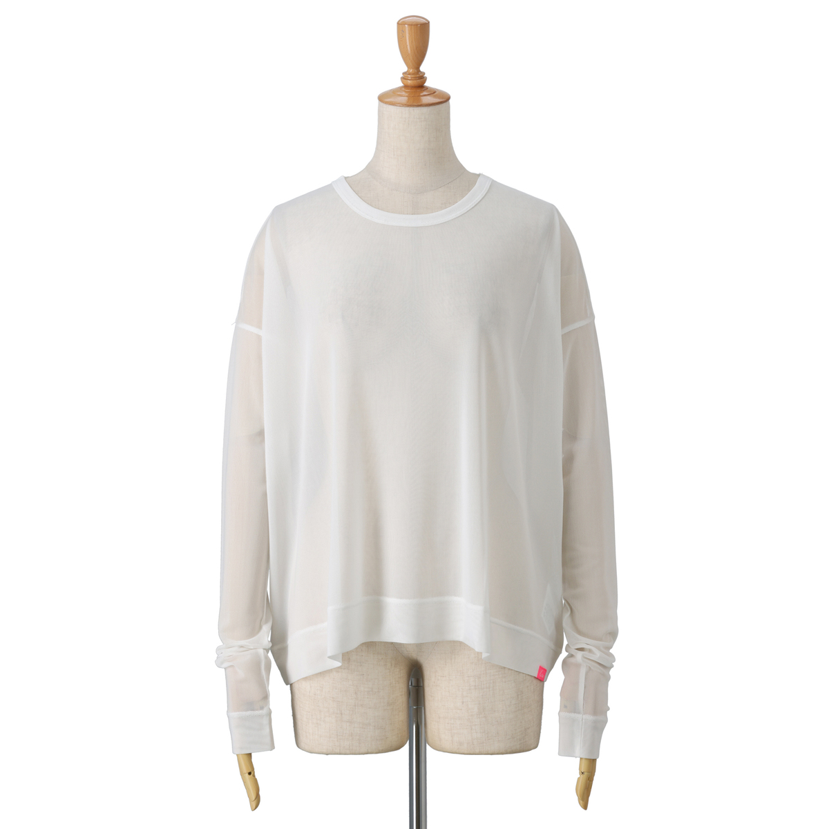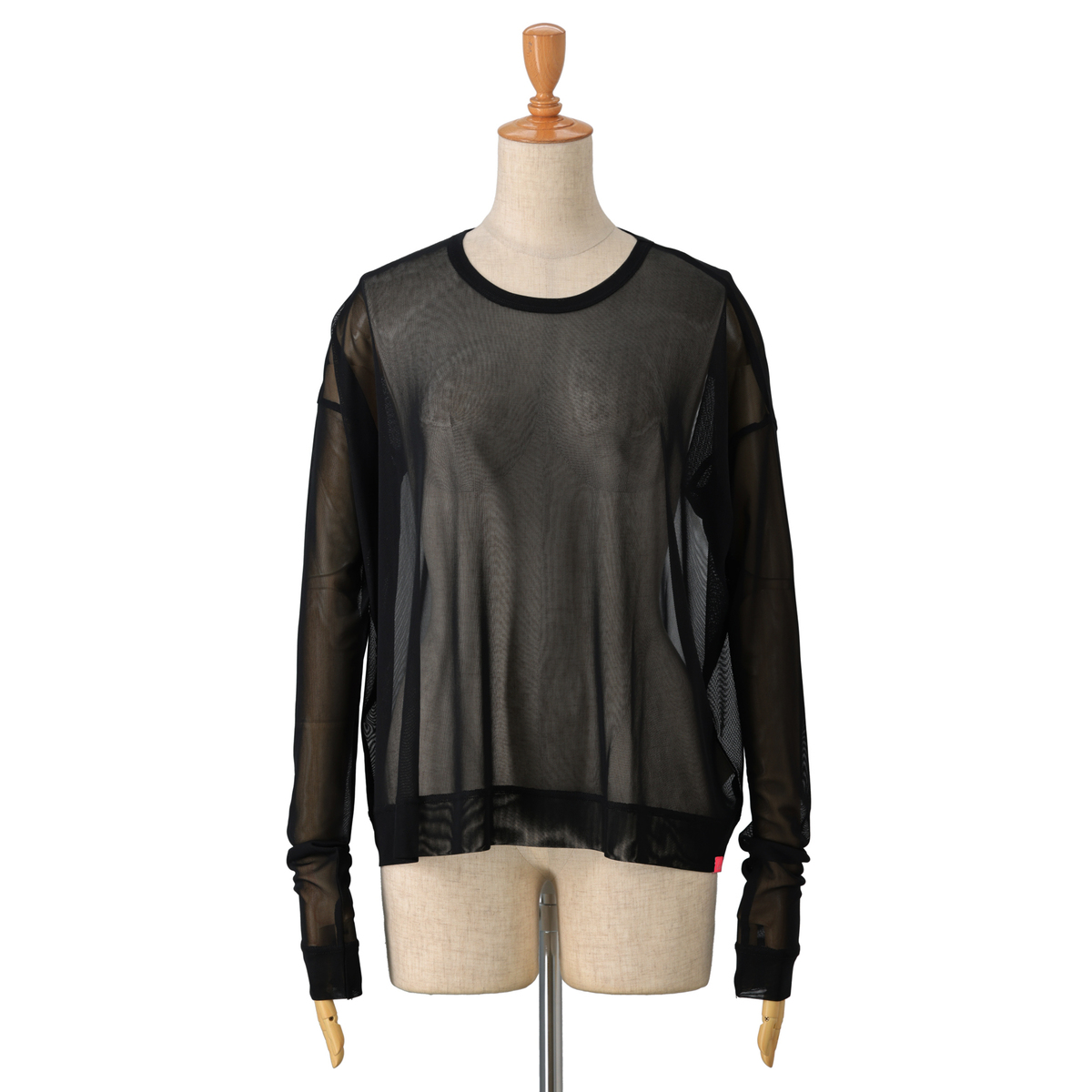 柔らかな風合いのソフトチュール素材を使用したプルオーバー。程良く透け感があり、軽やかに着こなせます