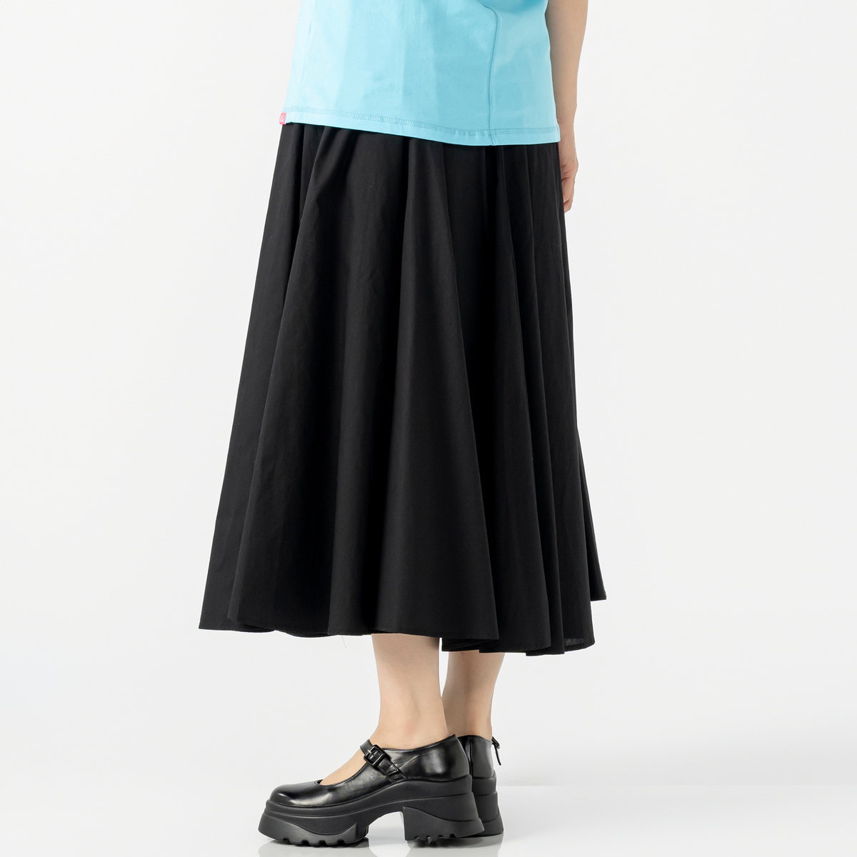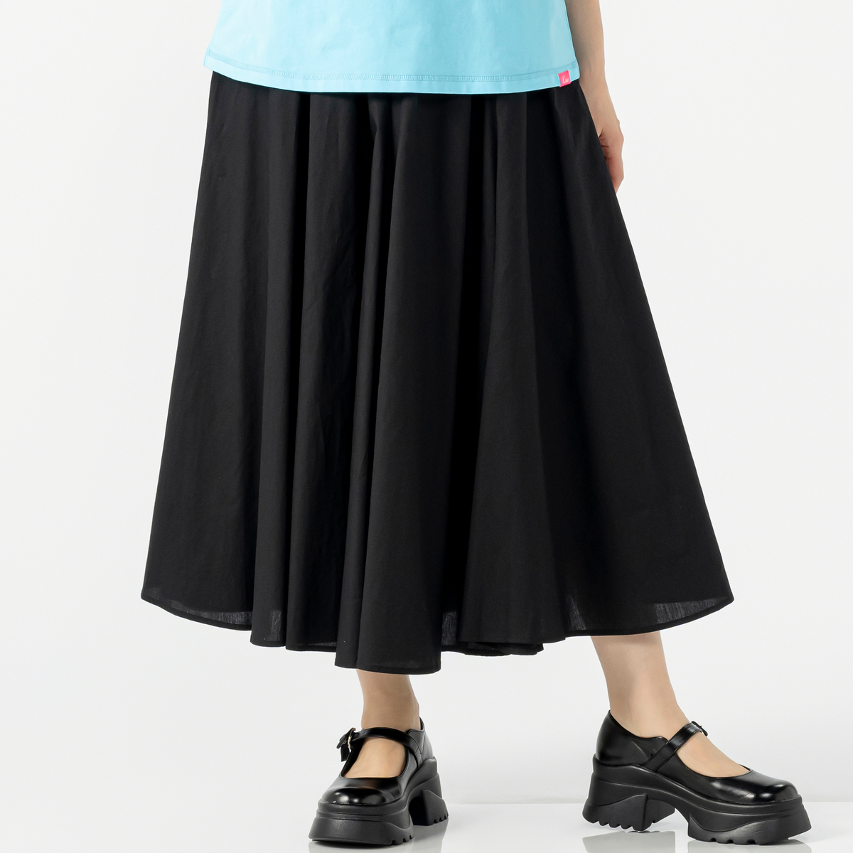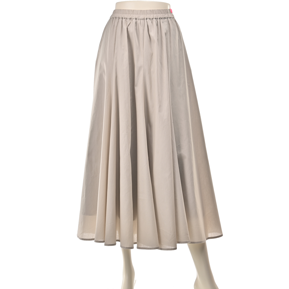 軽やかな素材感が魅力のフレアギャザースカート。ウエスト全体がゴム仕様で、たっぷり入ったギャザーが自然なドレープを生みます。ボディラインを拾いにくく、シンプルなトップスと組合せるだけでコーディネートが決まり、カジュアルにも綺麗めにも活躍します