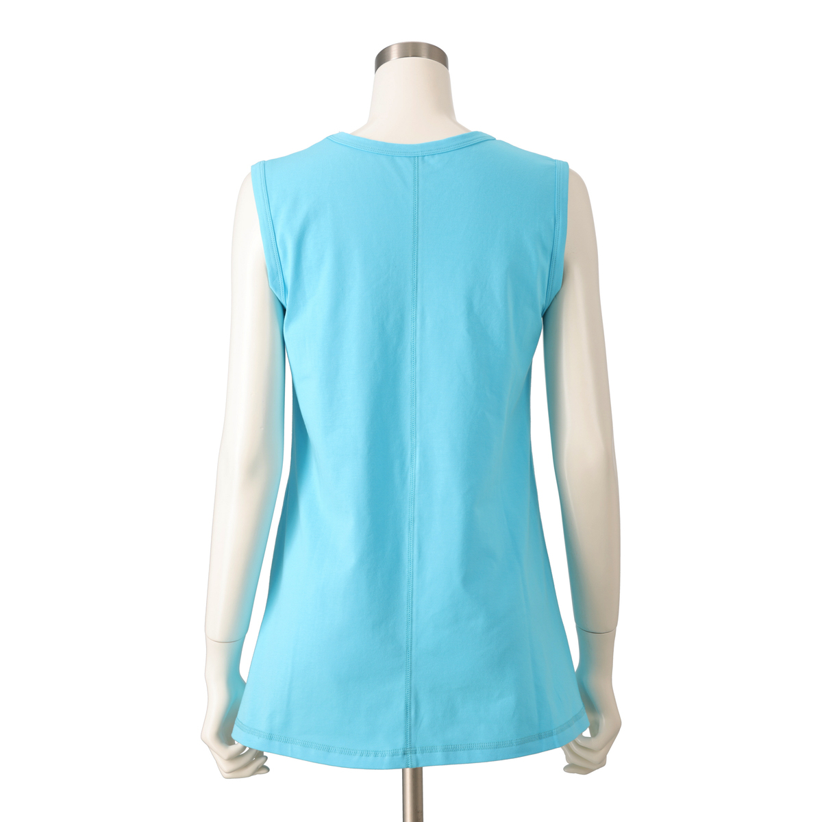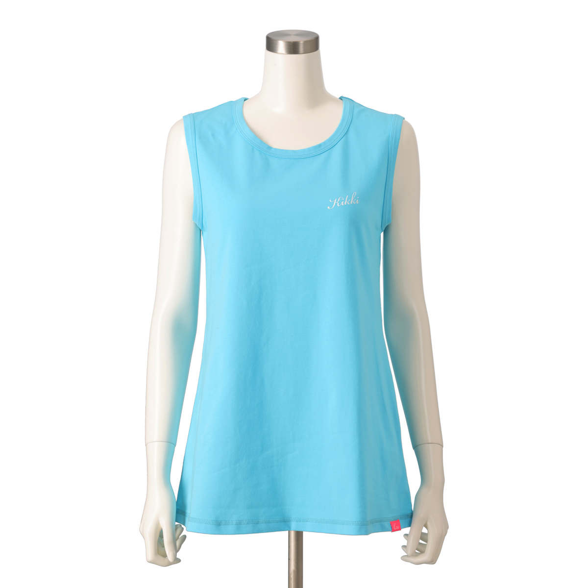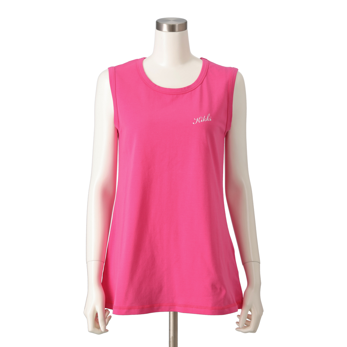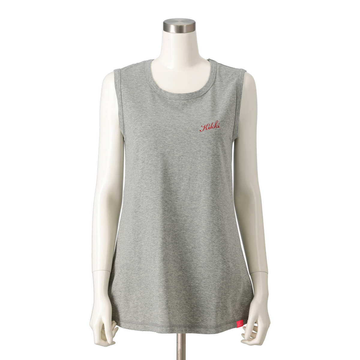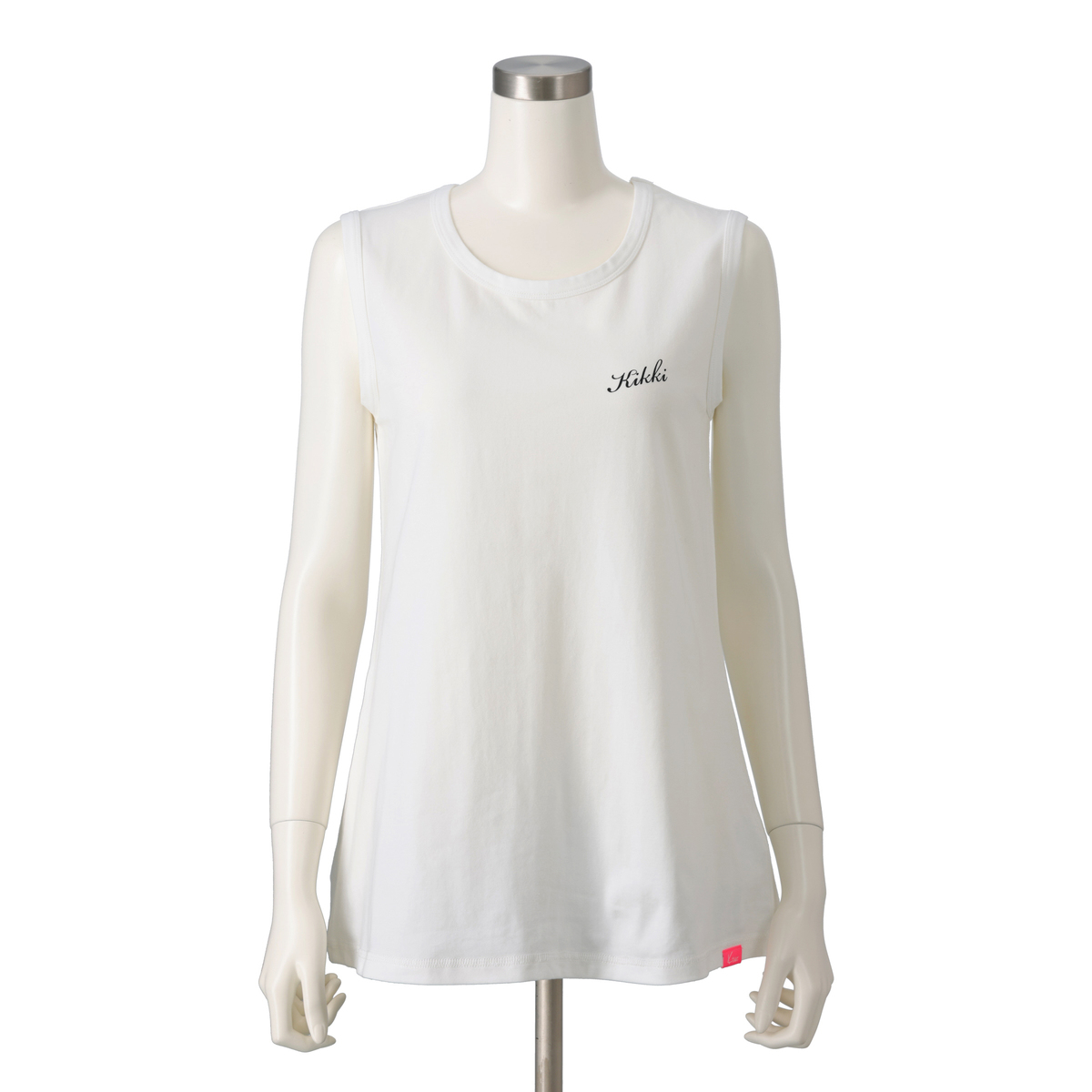 着回しやすいベーシックなタンクトップ。KiKKiオリジナルロゴを添えたデザインで、シアートップスや羽織のインナーとして万能に活躍します