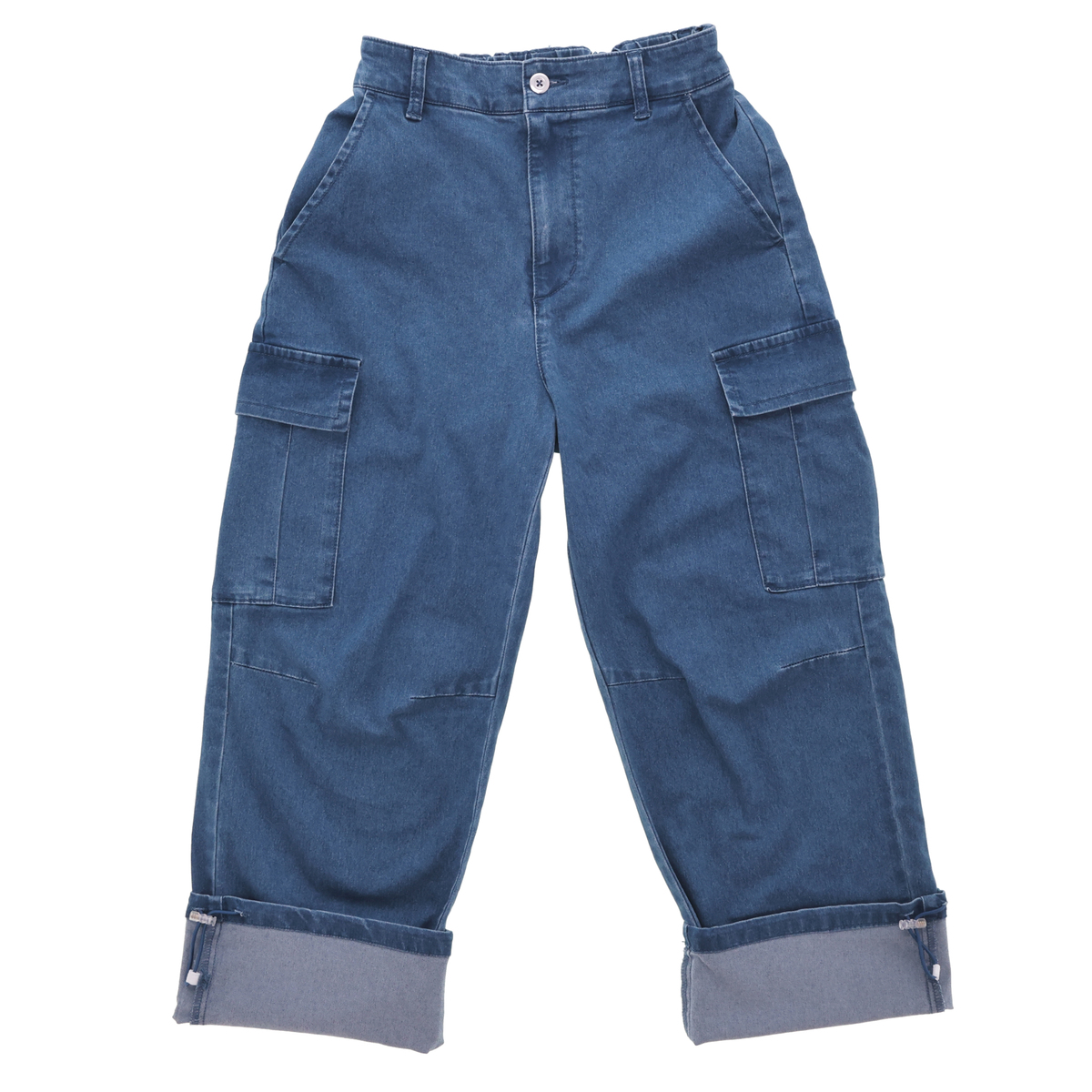 立体的なカーブシルエットが特徴のデニムカーゴパンツ。裾のストレッチコードで足元のラインを調整でき、ゆったりとした着こなしも細身のスタイルも自在にアレンジできます。シンプルなTシャツやパーカー、ベストなど幅広いトップスと組合せやすいデザインです