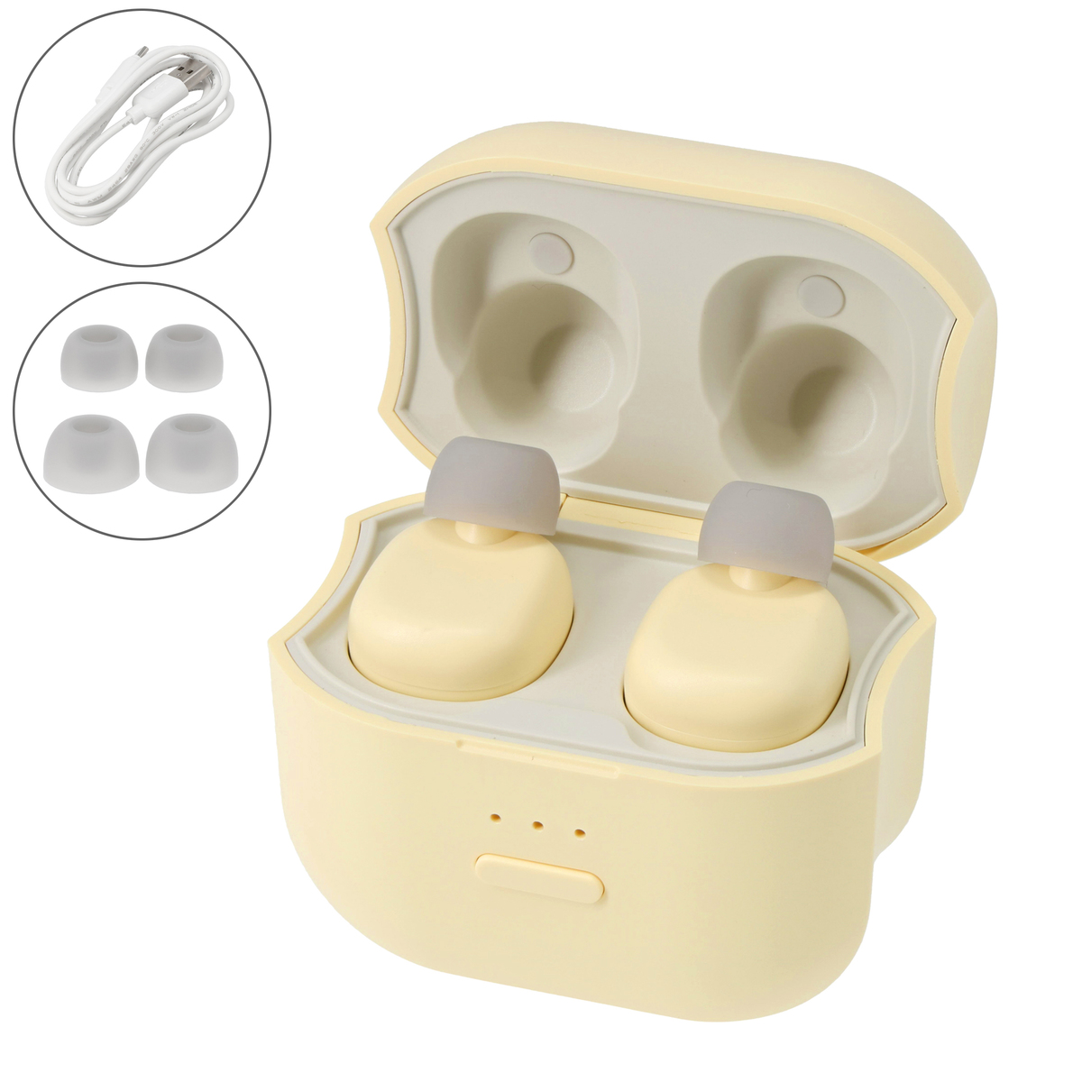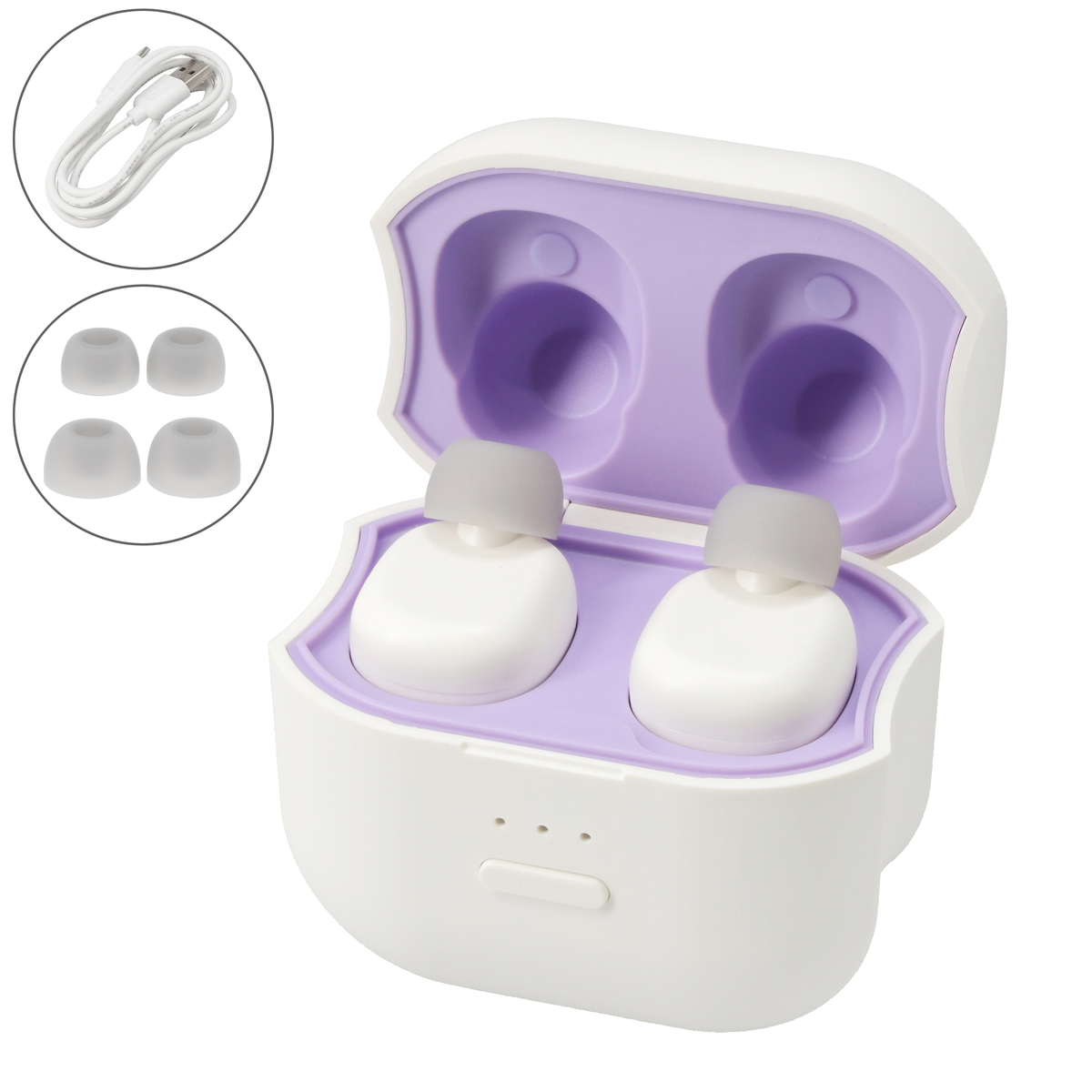 [商品内容] ・イヤラボmini本体(耳せん) ・充電ケース1台 ・イヤーピース3種(S/M/L ※Mサイズは本体に装着済) ・USBコード(TYPEーC(AーC)) ※ACアダプターは付属しておりません。定格出力5V2A以上のACアダプターをご使用ください。また急速充電器には対応しておりません [サイズ(約)]幅×高さ×奥行(突起部含む) 本体(耳せん):2.36×1.92×1.92cm 充電ケース:5.8×6.0×3.5cm [重量(約)] 本体(耳せん):10g 充電ケース:62g [材質] 本体:ABS、シリコン 充電ケース:ABS、シリコン [充電時間] 約2時間30分 [あたたかさ持続時間] 約15分(目安) ■取り扱い説明を充分にご確認の上、ご使用下さい 【中国製】 [使用方法] 初めてご使用になる場合や、長時間ご使用にならなかった場合は、充電を行ってからご使用下さい 1、本体(耳せん)を充電ケースにセットします 2、ファンクションボタンを長押し(約1.5秒)し、電源を入れます 3、ファンクションボタンを押して、ヒーターレベルを調節します(電源オン時、ファンクションボタンを押すたびに、ヒーターレベルは弱→中→強→弱…の順に切り替わります 4、ヒーターランプが全点灯したら、本体(耳せん)を充電ケースから取り出し、耳に装着します。あたたかさは約15分持続します。充電ケースから取り出した後、徐々に常温に近づきます [お手入れ] ・お手入れの前に、必ず電源を切って下さい ・シンナー・ベンジン・アルコールなどの溶剤や薬品類、熱湯は使用しないで下さい。故障や部品の割れ、変色などの原因になります ・本体(耳せん)、充電ケースは乾いた柔らかい布で汚れを拭き取って下さい。汚れがひどい場合は、水で濡らして固くしぼったスポンジや、柔らかい布で拭き取ります。その後、乾いた布で乾拭きして下さい [注意事項] ※次の方は使用しない ・自ら意思表示ができない方や操作が行えない方 ・温度感覚喪失が認められる方 ・睡眠薬等を服用した方及びめいてい状態の方 ・耳に疾患のある方、耳周りにトラブルがある方 ※次の方は必ず医師とご相談の上使用する ・悪性腫瘍のある方 ・妊娠初期の不安定期または出産直後の方 ・糖尿病などによる高度な末しょう(梢)循環障害からくる知覚障害のある方 ・安静を必要としている方や体調がすぐれない方 ・体温38℃以上(有熱期)の方 ・例:急性炎症症状(倦怠感、悪寒、血圧変動など)の強い時期、衰弱しているとき ・適用部位の皮膚に異常(感染症、創傷)などのある方 ・その他、医療機関で治療中の方 ・低温やけどをしたことのある方 ※下記の場合や、耳以外の部位には使用しない ・体調がすぐれないとき、発熱しているとき ・使用する部位に傷、湿疹、はれものやニキビなど、肌に異常があるとき ・皮膚炎、過度の日焼けなど肌に異常のある時 ・外科手術(形成・美容など)を受けた部位 ※使用中に眠らない ※他の製品、機器などと同時に使用しない ※化粧品などを併用しない ※イヤーピースを外した状態で使用しないで下さい ※飲酒、食事直後の約30分〜1時間は使用しないで下さい ※1日の使用は3回までを目安とし、連続して使用しないで下さい ※耳や耳のまわりに湿疹、かぶれ当が現れた場合は、その後の使用を中止し、医師に相談して下さい ※熱すぎると感じた場合、痛みや違和感等、身体に何らかの異常を感じた場合はすぐに使用を中止して下さい ※Mサイズのイヤーピースは本体(耳せん)に装着されています。より快適にお使いいただくために、イヤーピースのサイズを変えて耳の収まりが良いものに調節して下さい ※イヤーピースを外した状態で使用しないで下さい(やけどやケガの原因) ※飲酒、食事直後の約30分〜1時間は使用しないで下さい ※熱いと感じた場合は、使用を中止して下さい(低温やけどの原因) ※1日の使用は3回までを目安とし、連続して使用しないで下さい ※耳や耳のまわりに湿疹、かぶれ当が現れた場合は、その後の使用を中止し、医師に相談して下さい ※熱すぎると感じた場合、痛みや違和感等、身体に何らかの異常を感じた場合はすぐに使用を中止して下さい ※使用しないときは必ず電源を切り、長時間の加熱を避けて下さい ※イヤーアクセサリー類は外して使用して下さい ※ACアダプタは付属しておりません。市販のUSB対応アダプタをご使用下さい ※市販のUSBコードもご使用になれます。市販品をご使用の際は、必ず「56kΩレジスタ(抵抗)」の実装されたUSB TYPE-AtoCコードを使用して下さい
