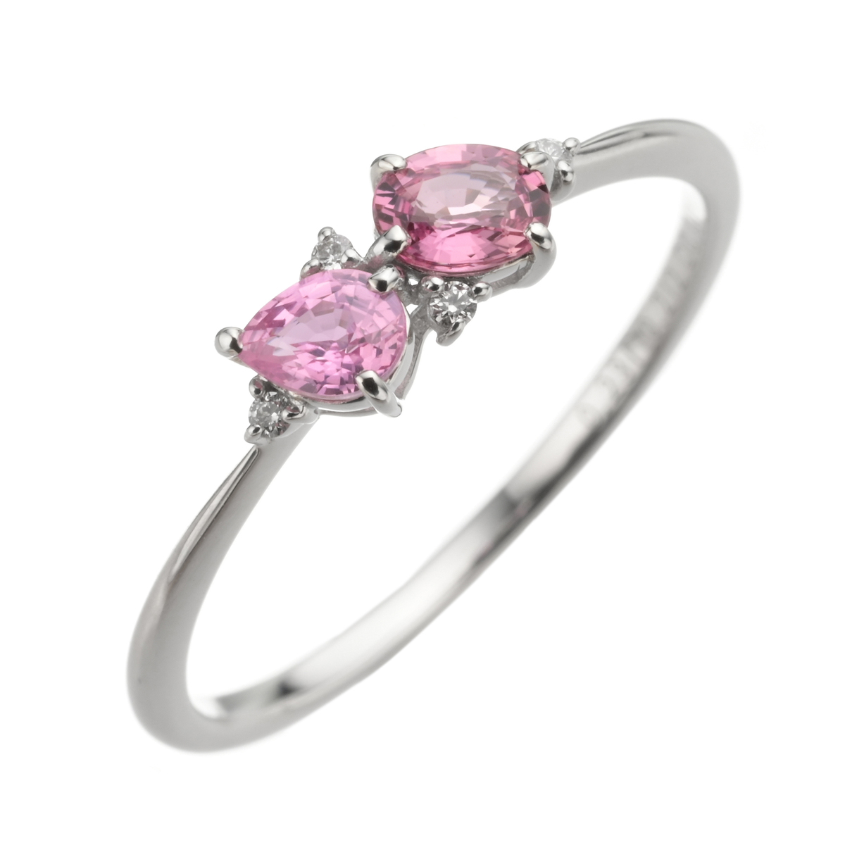 素材:[パパラチアサファイヤ] オーバルシェイプ 爪留め 1石、 ペアシェイプ 爪留め 1石 2石合計0.40ctUP [ダイヤモンド] ラウンドシェイプ 爪留め 4石 合計0.01ctUP 最大幅(約) 4.5mm 最小幅(約) 0.5mm 総重量(約) 1.5g [地金] プラチナ950 [付属品] 鑑別書×2 ■受注発注商品のためデザイン・価値に影響のない範囲で仕様が変わる場合がございます ■素材の大きさ・形・色合い、製品のサイズは1点1点多少異なります 【日本製】