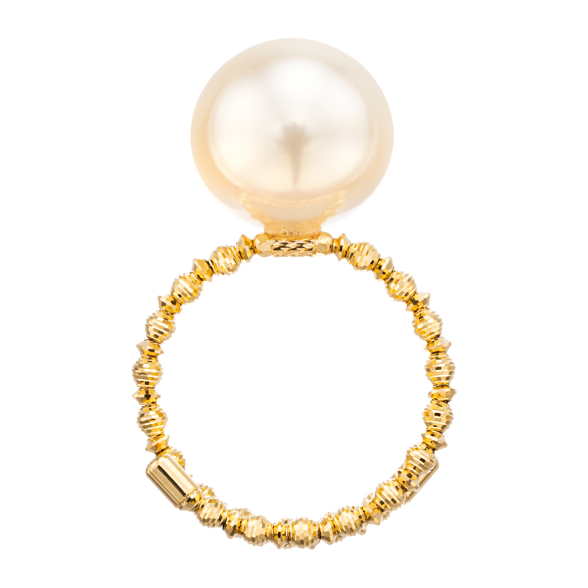 真珠総合研究所にテリがトップグレードの範疇と認められた、フィリピン・パラワン産のナチュラルシャンパンカラーの白蝶真珠を使用したリング。存在感のあるデザインが装いに華やかさを添えてくれます