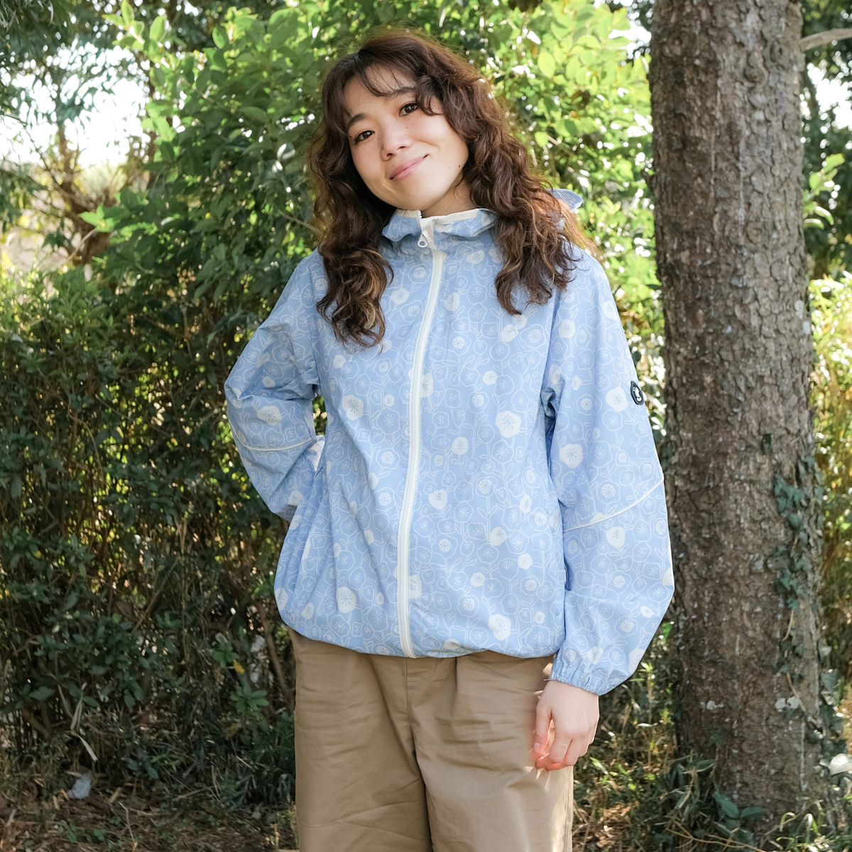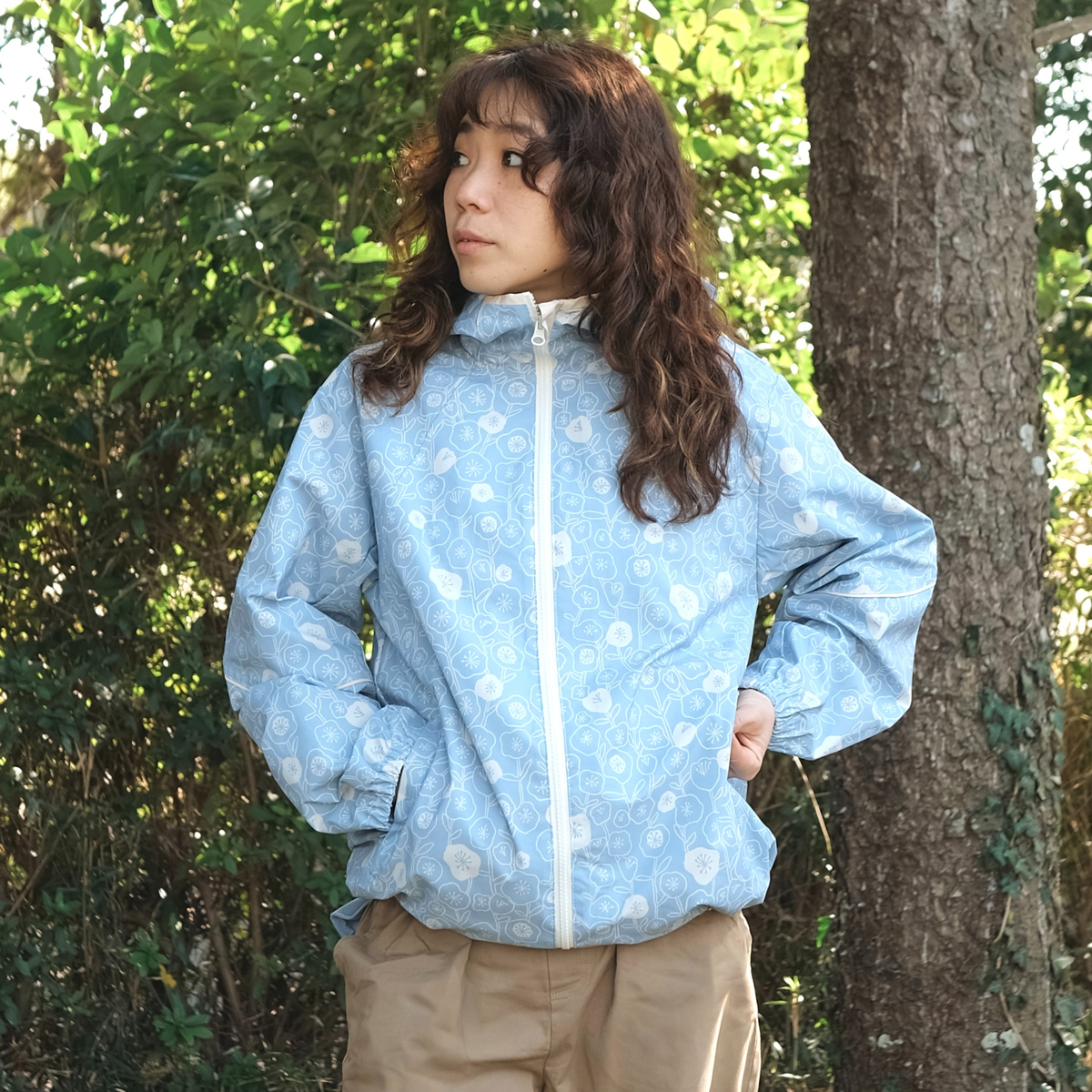 オイスタープリントとても可愛いTVで映っていた通りでした。カシャカシャしてないし、フードも脱げないし顔周り首周りが良く考えられていてストレスありません。梅雨の自転車も安心です。