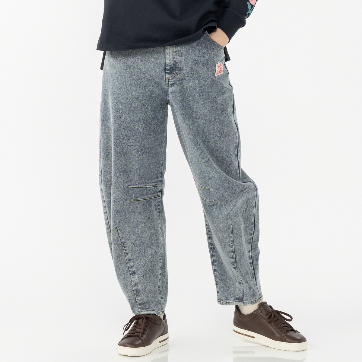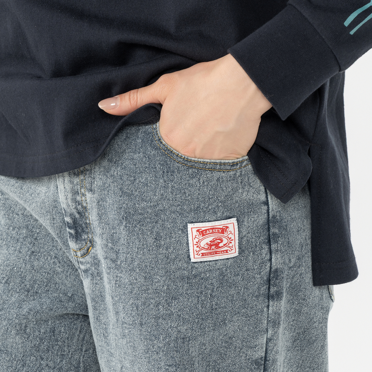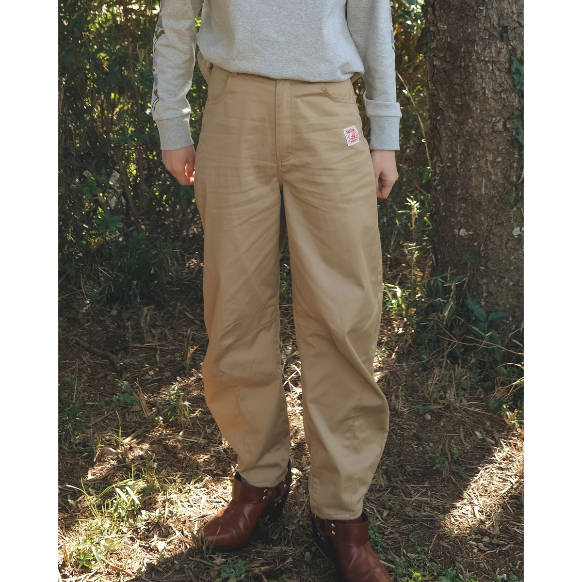 ポリエステルとコットンを混ぜたストレッチデニムとストレッチツイルを使用し、動きやすさにこだわったパンツです。白地に赤の小さなリスのネームを左ポケット口下に叩き付け、クラシックなワークウエアのような雰囲気を添えました
