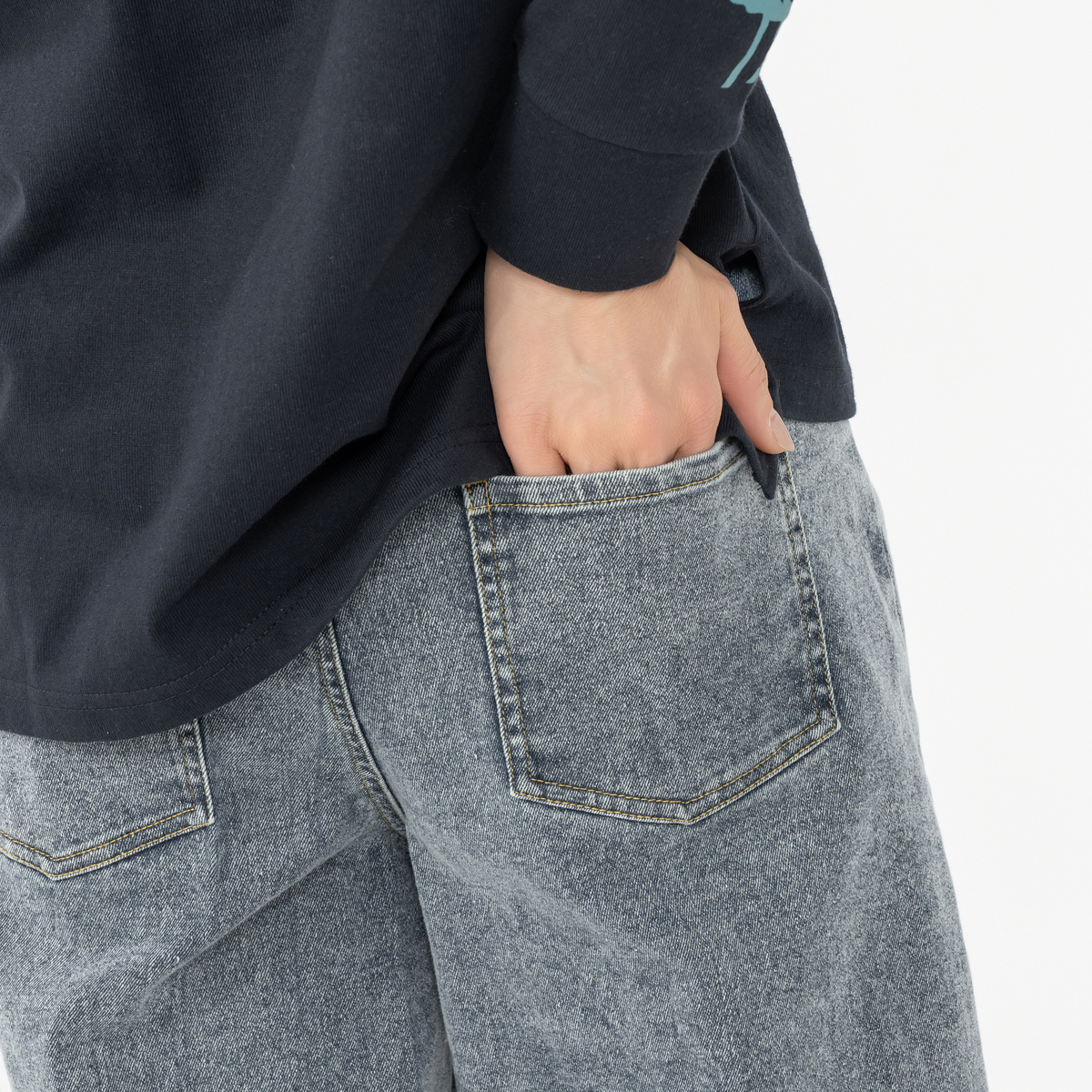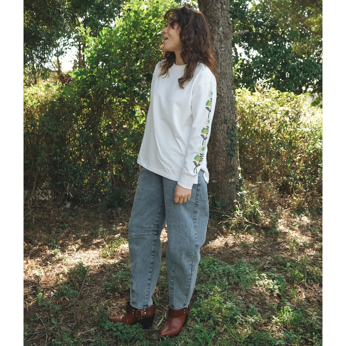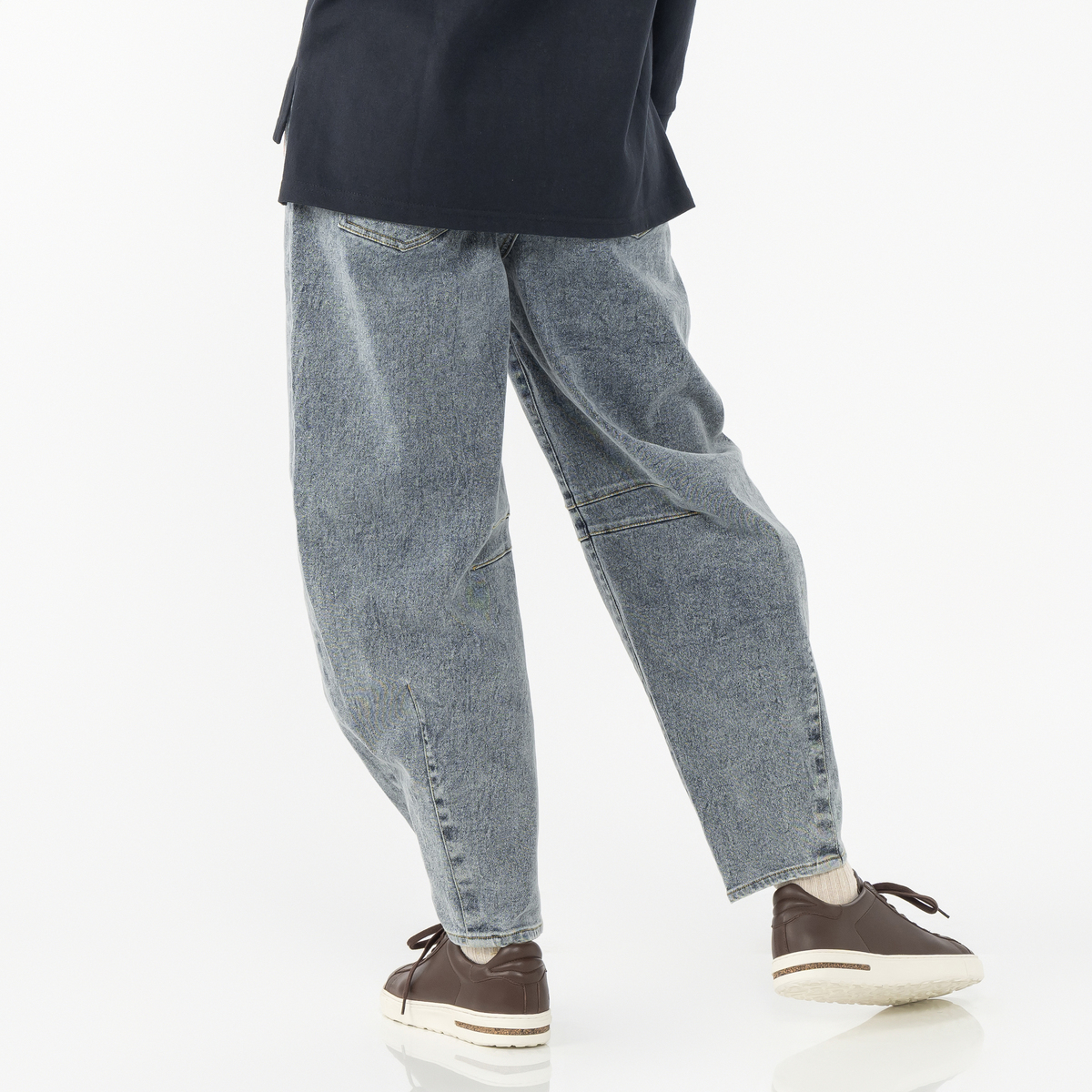 ポリエステルとコットンを混ぜたストレッチデニムとストレッチツイルを使用し、動きやすさにこだわったパンツです。白地に赤の小さなリスのネームを左ポケット口下に叩き付け、クラシックなワークウエアのような雰囲気を添えました