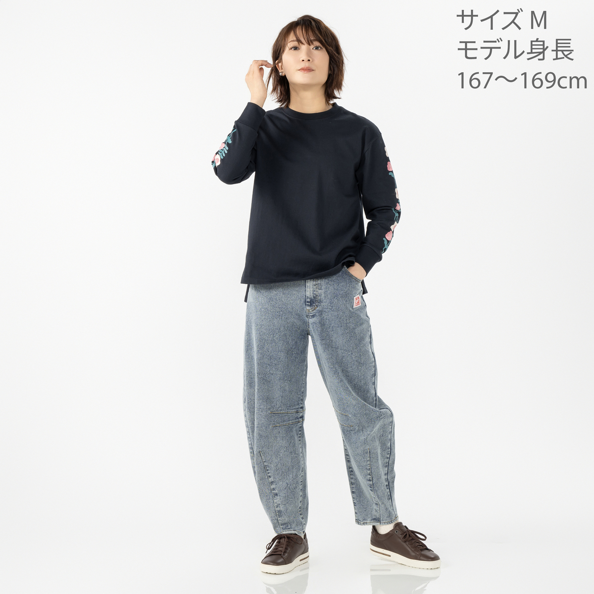 ぶかっとしたシルエットがとても気に入りました。体型が隠れて良いです。 サイズはいつもLLですがゆったりはきたかったので3Lにしました。 ウエストがブカブカです。 でも、シルエットが気に入ったのでこのまま使わせていただきます。