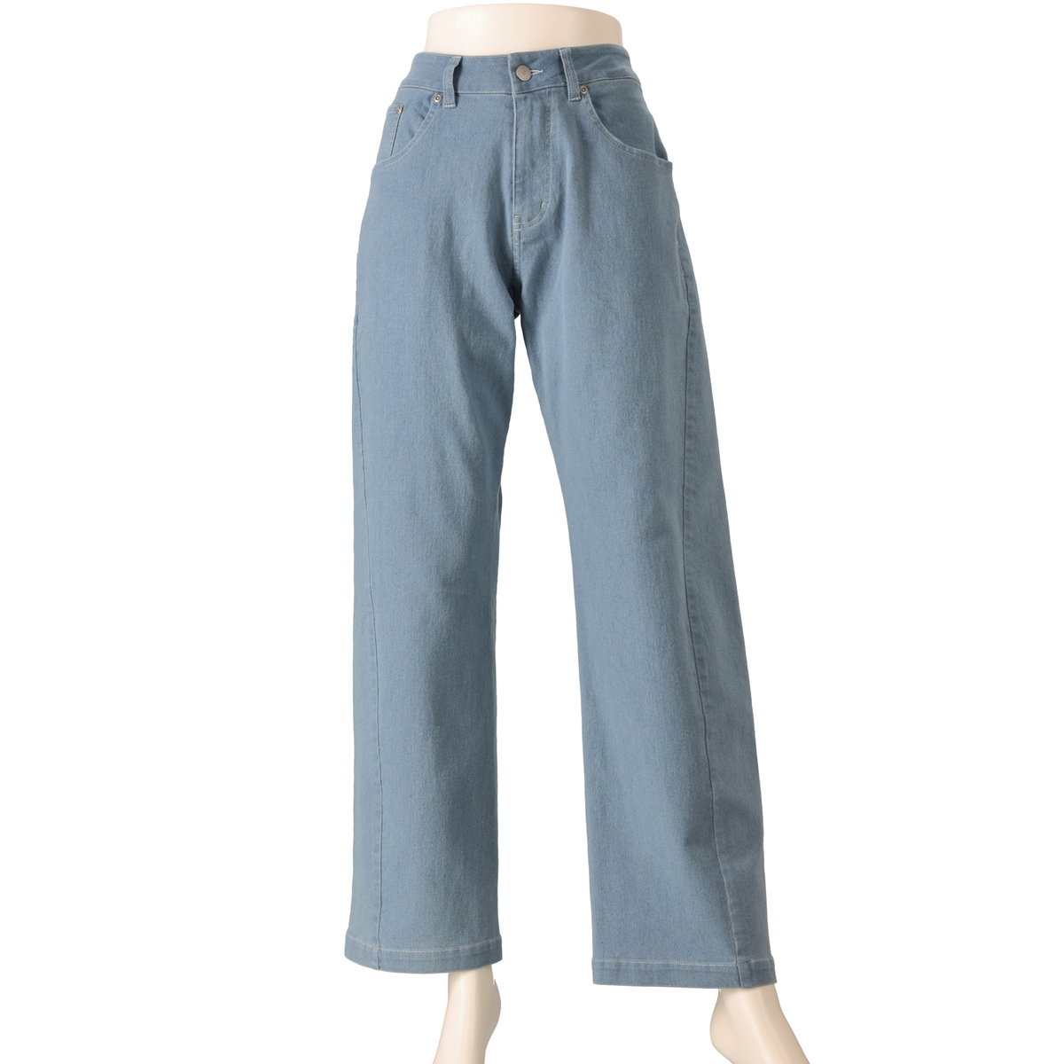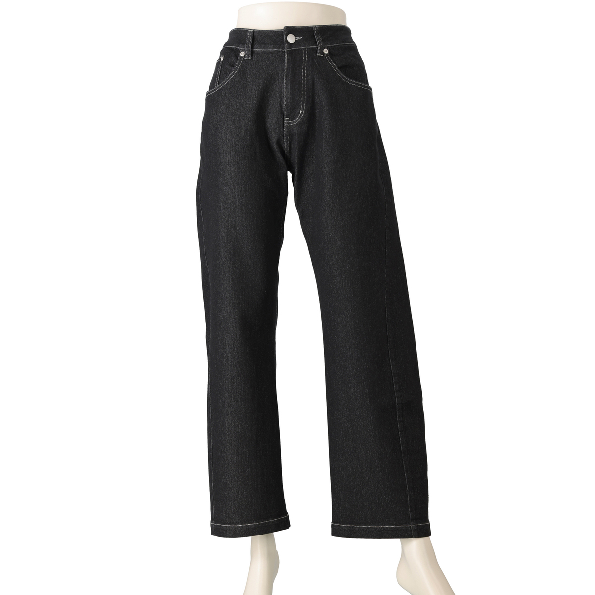 通常のデニムパンツより開脚の可動域を大幅に広くしたカッティング仕上げ。着用したときに自然に出る、緩やかなバレルシルエットです。ステッチは配色で太番手の糸を使い、粗くざっくりと施しています
