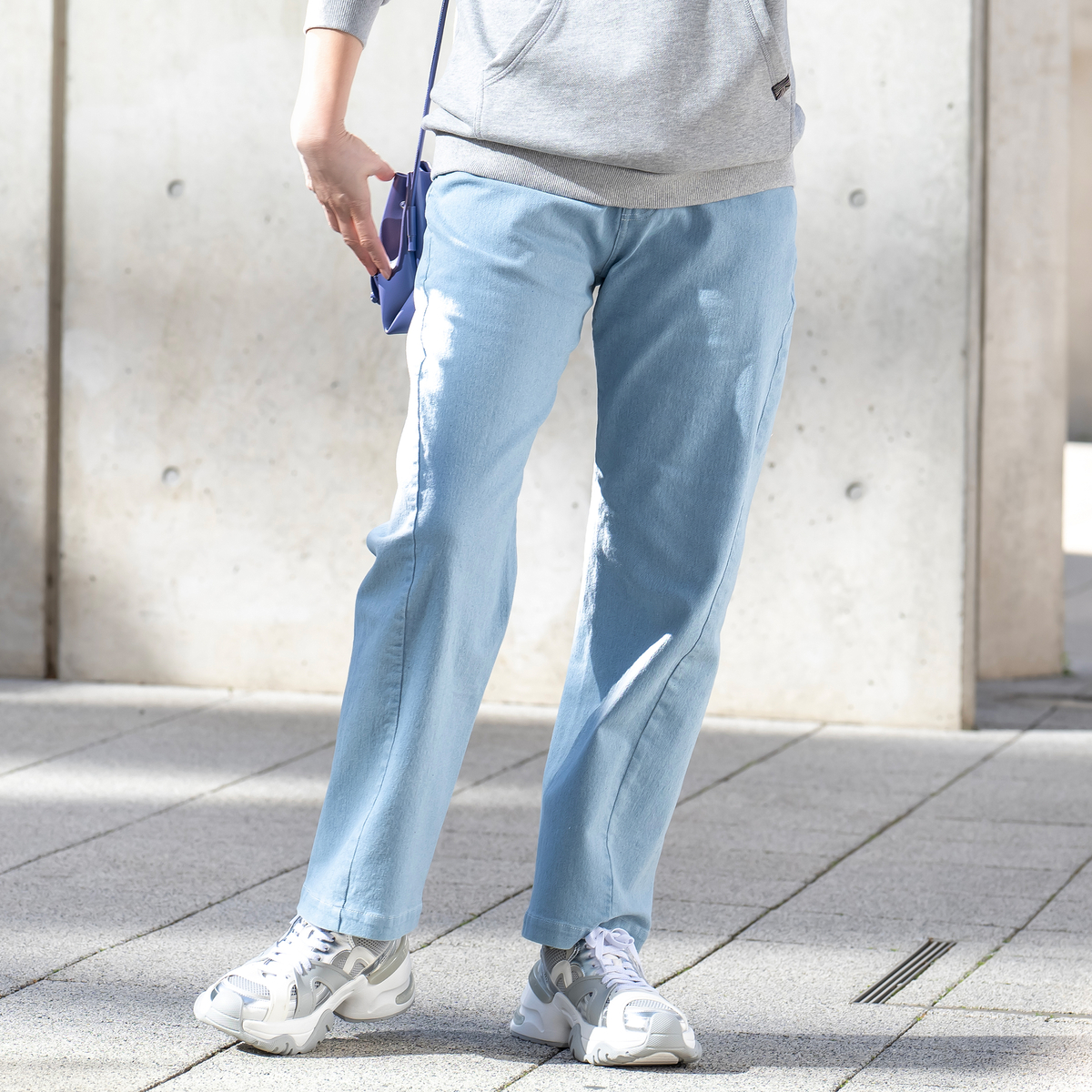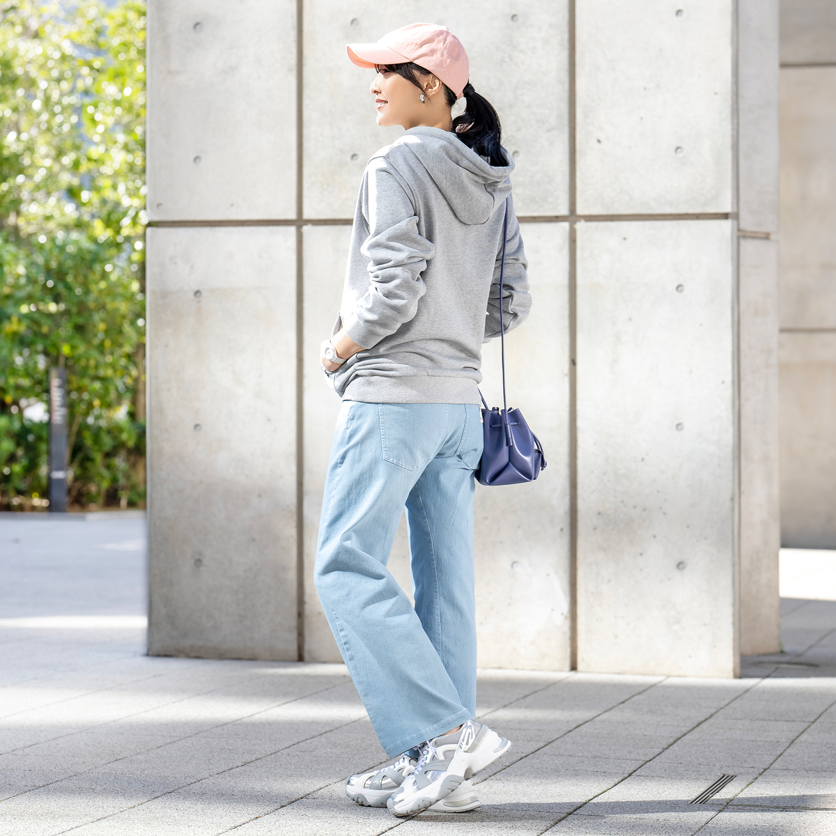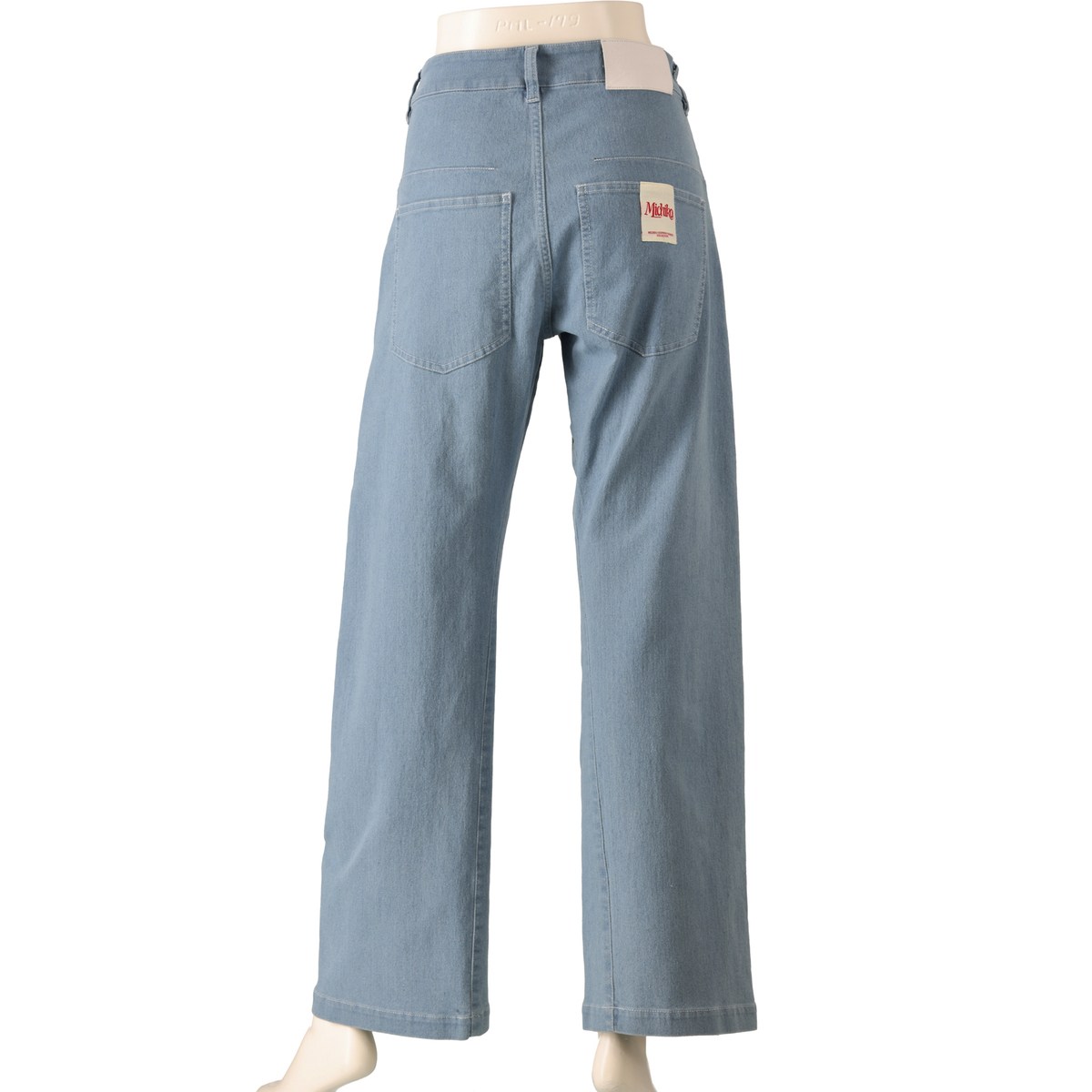 大きめの後ろポケットとヨークラインで個性的に。ウエストベルトに付けられたパッチとポケット口のネームが後ろ姿を印象付けます。裾を折って足首を見せて、サンダルやヒールに合わせても素敵です