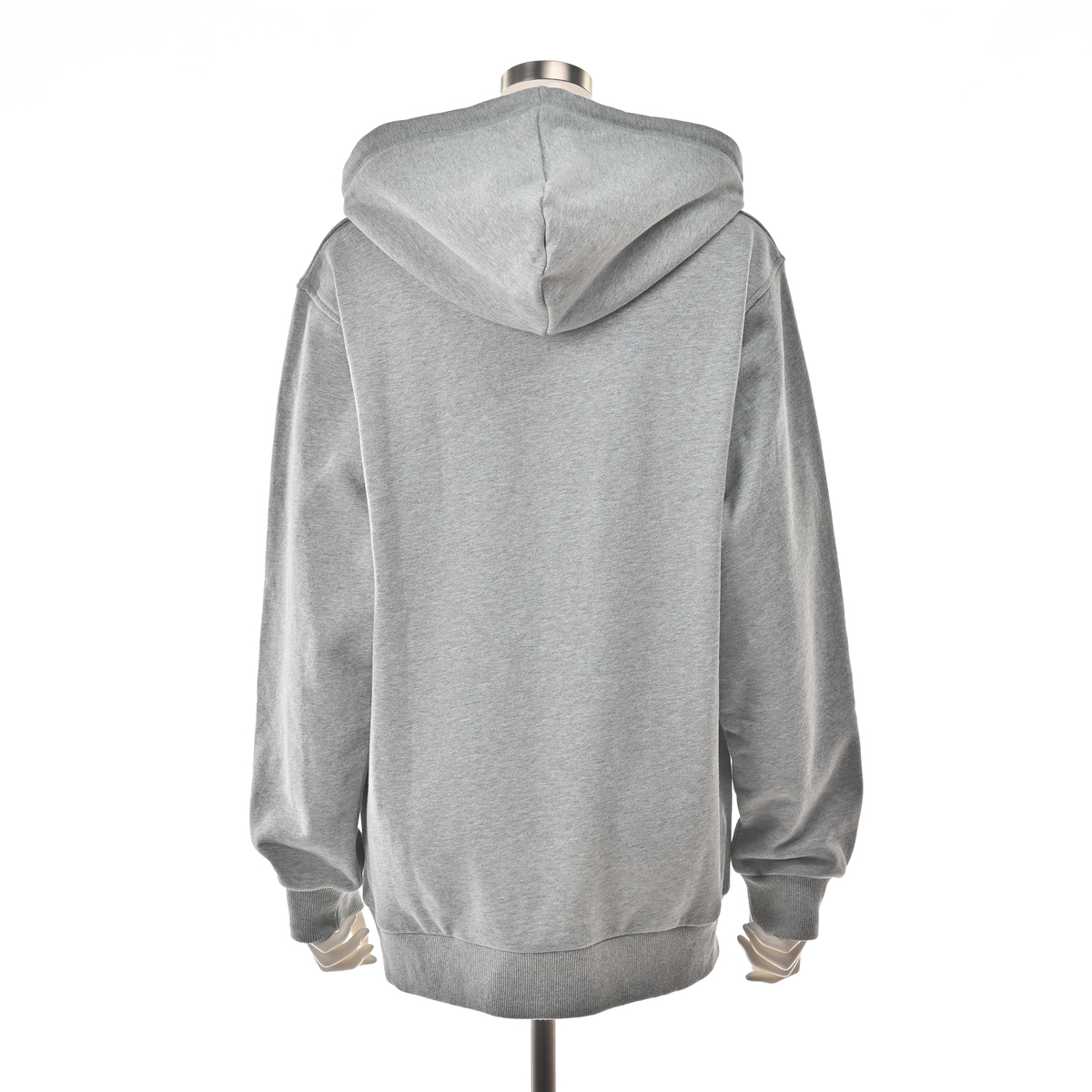 ヒップまで隠れる丈感で、身幅やアームホールはゆったりめながら、裾と肘下をすっきり整えたラインでラフになりすぎません。アウターも重ねやすい形で、しっかりした肉感の裏毛が心地よく、袖口と裾のリブがメリハリを添えます