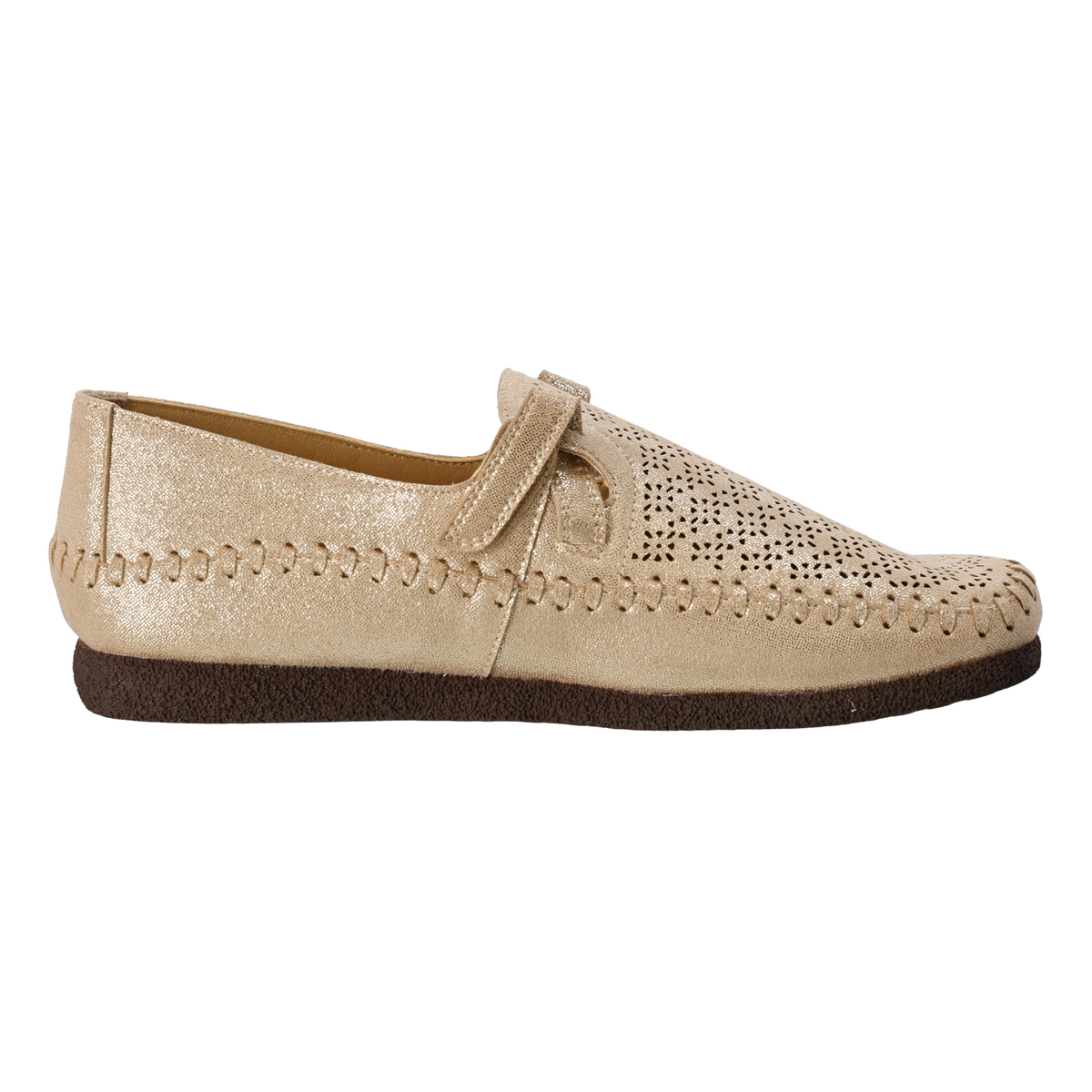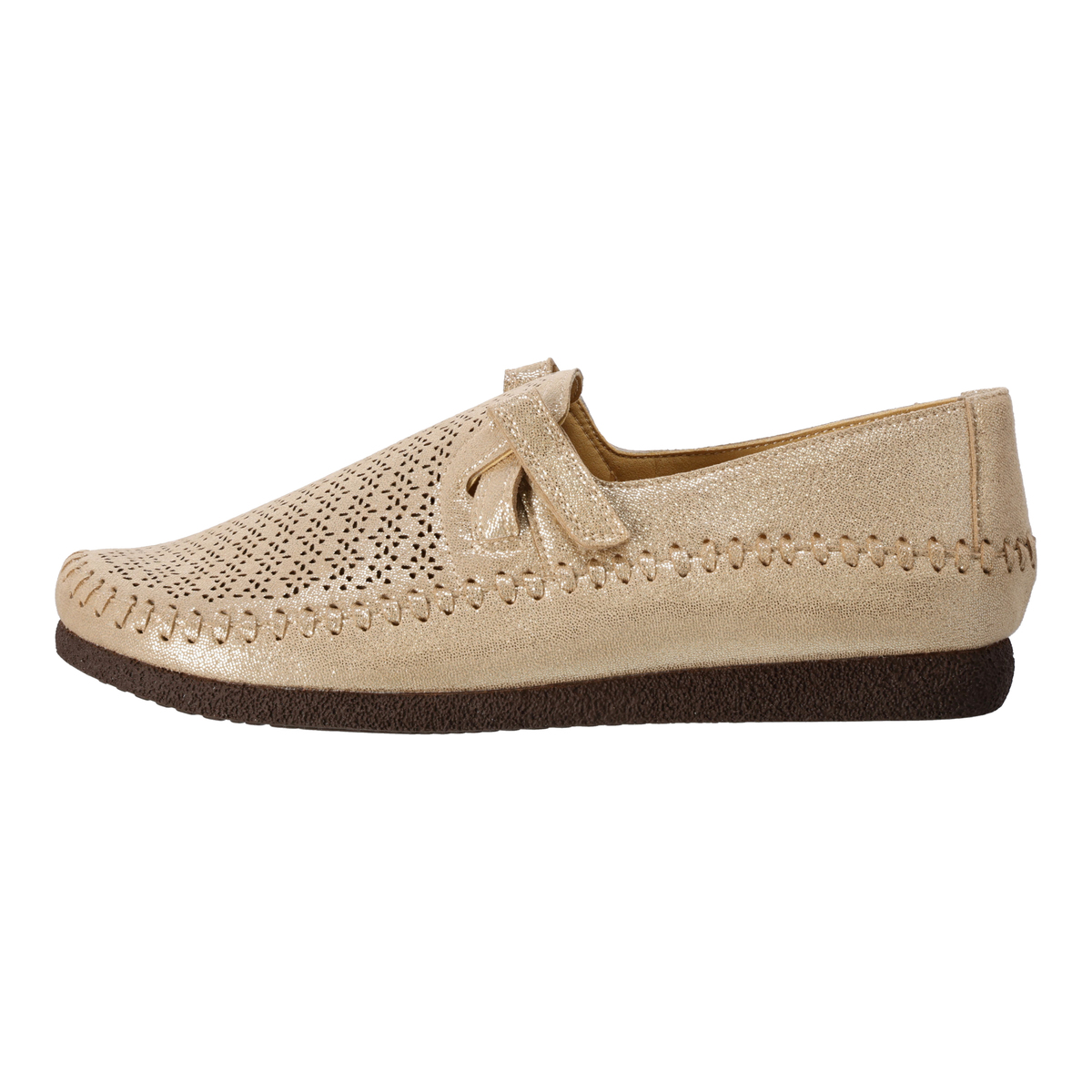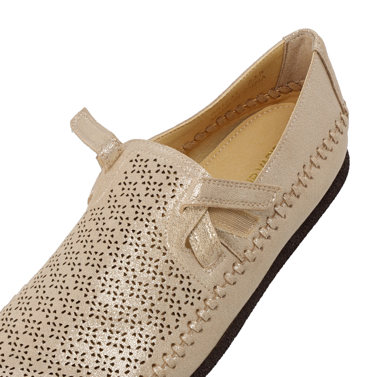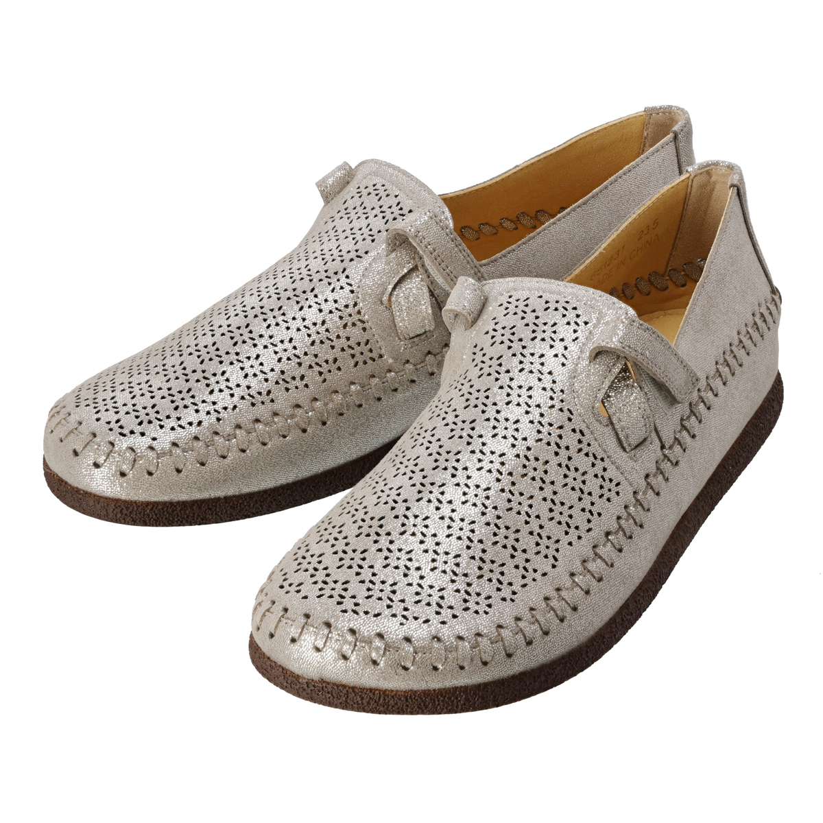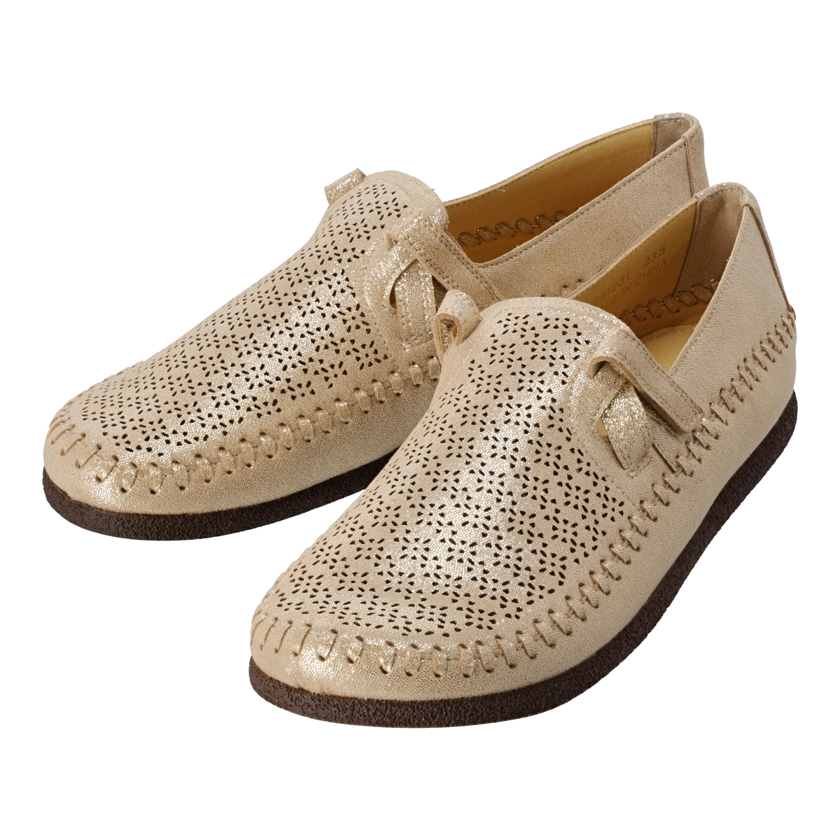 アッパー部分のカットワークが細かい高いデザイン性。特徴的な手縫いステッチもポイントです。発色が良く、軽くて通気性に優れ、ウォッシャブルという機能を持った東レ人工スエード(日本製)をメイン資材として使用しています