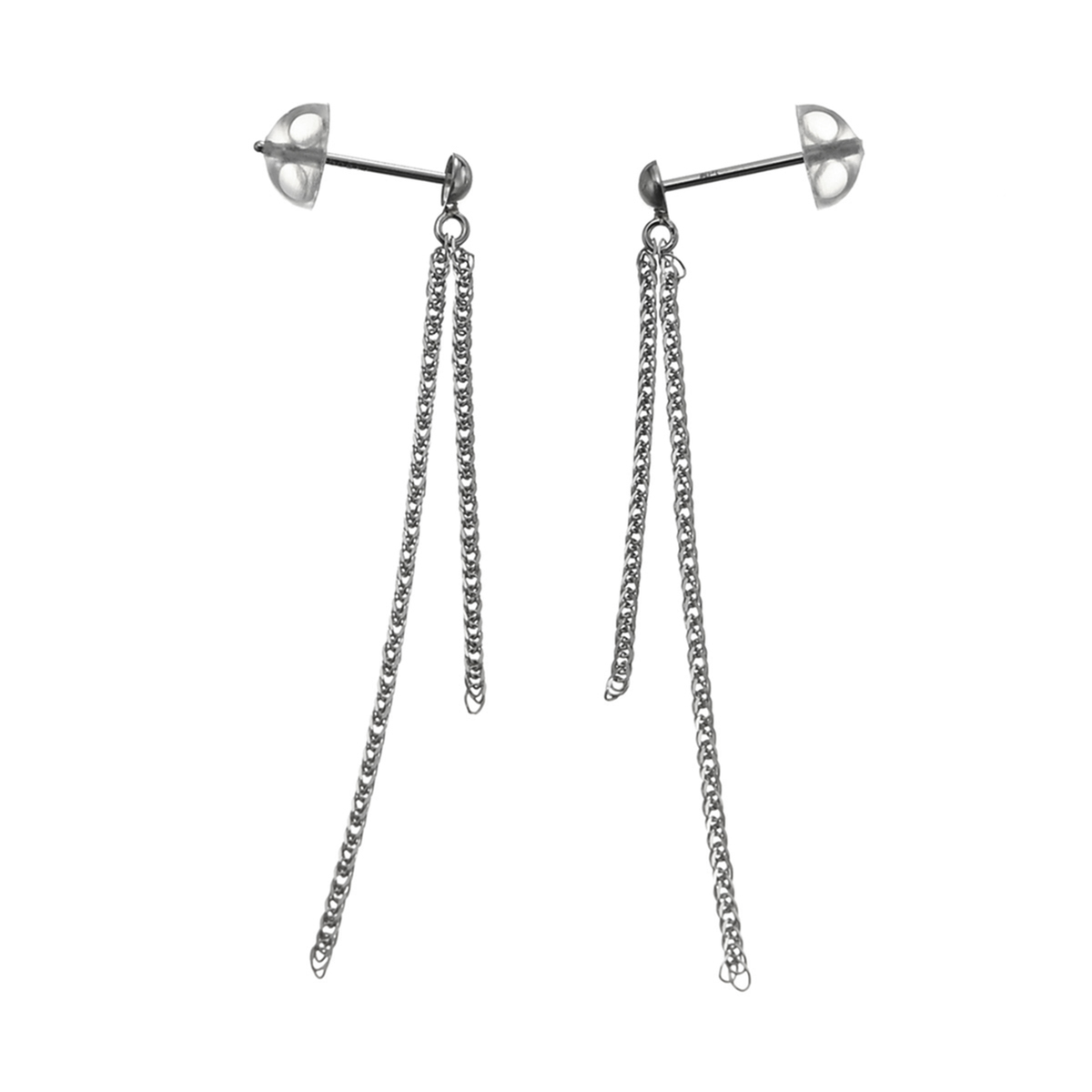 美しい2本のラインで構成されたスイングタイプのイヤリングまたはピアス。耳元で揺らめき、動きに合わせた光の変化を楽しめます