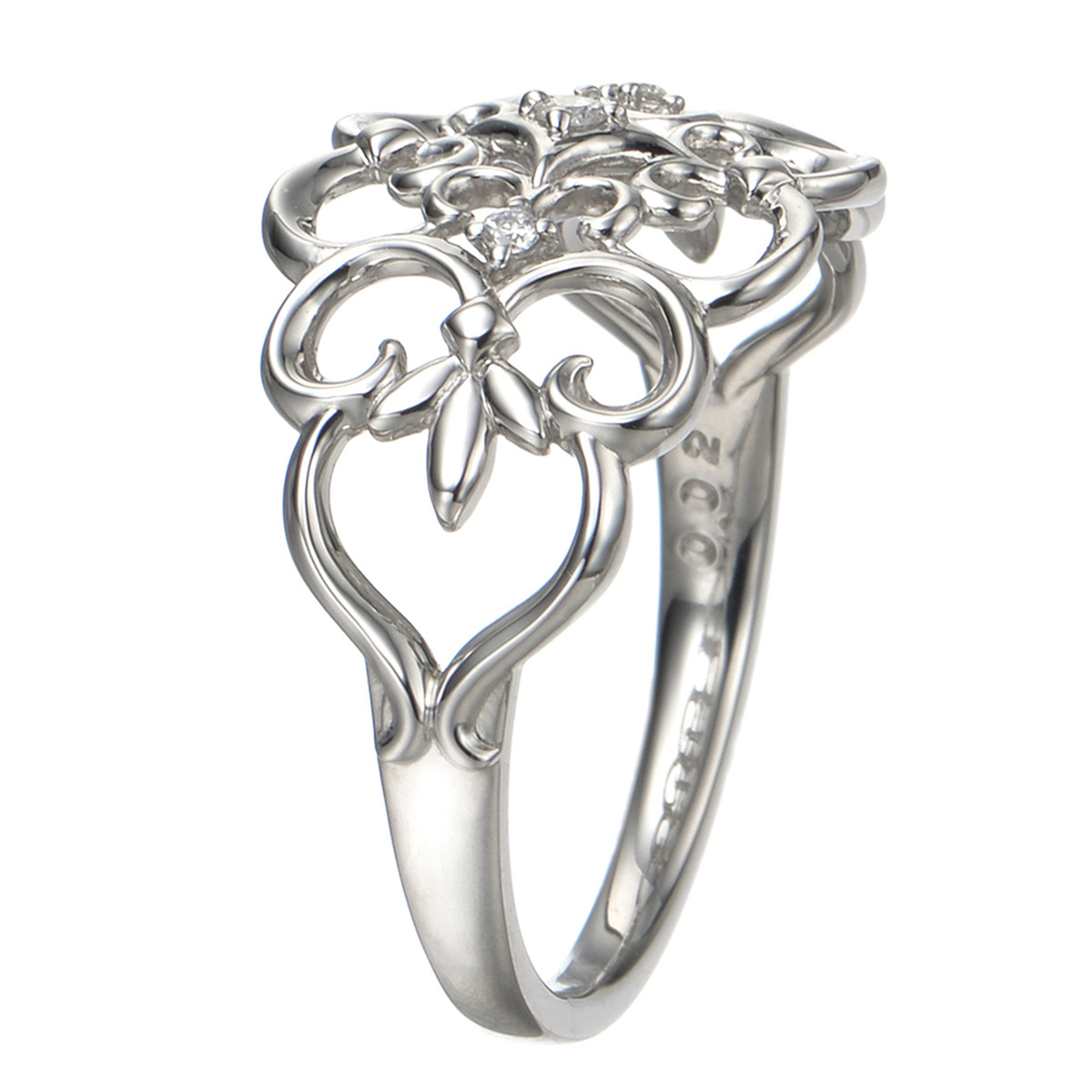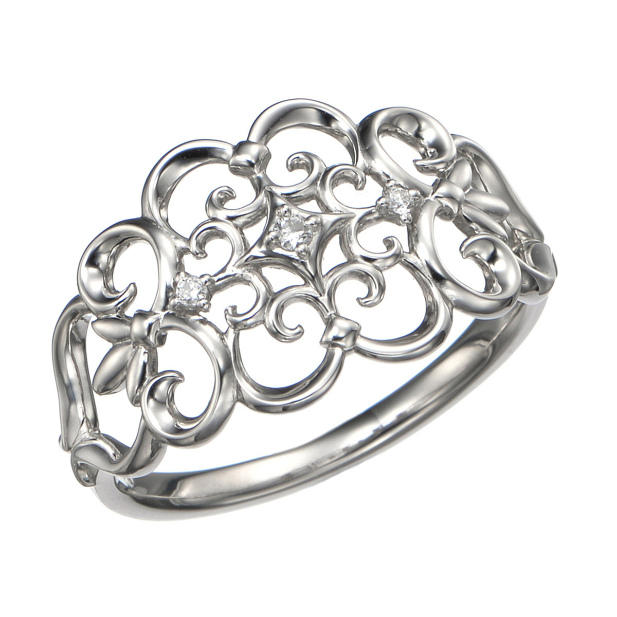 柔らかな曲線の透かし細工を施した、幅広デザインのリングです。ダイヤモンドを配したエアリーなモチーフは、日常使いにもおすすめ。指につけた時の圧迫感がなく、軽やかなつけ心地です