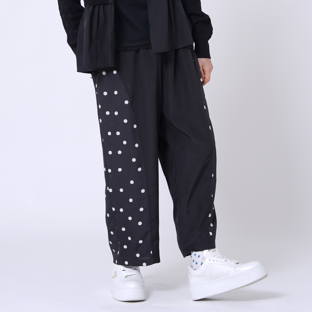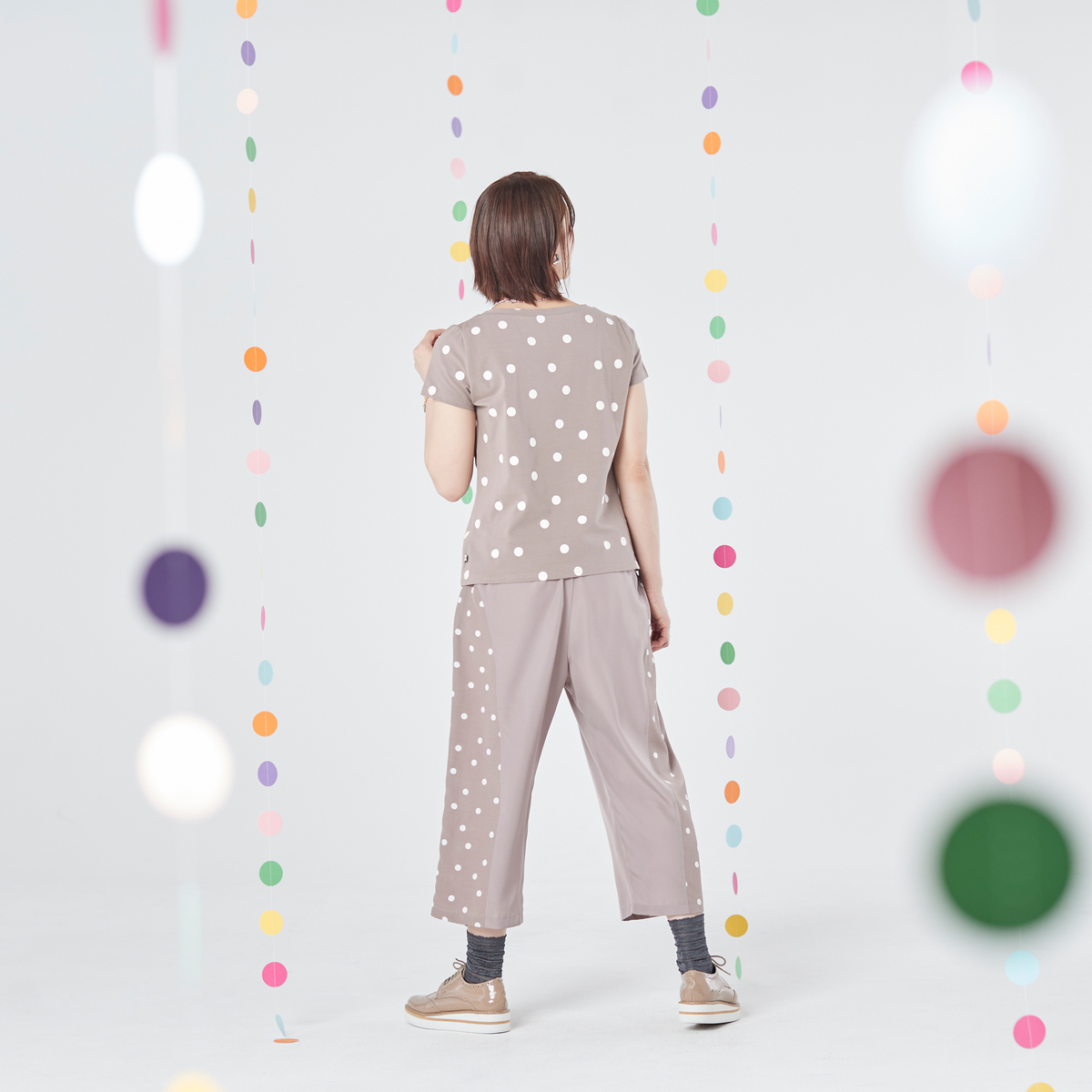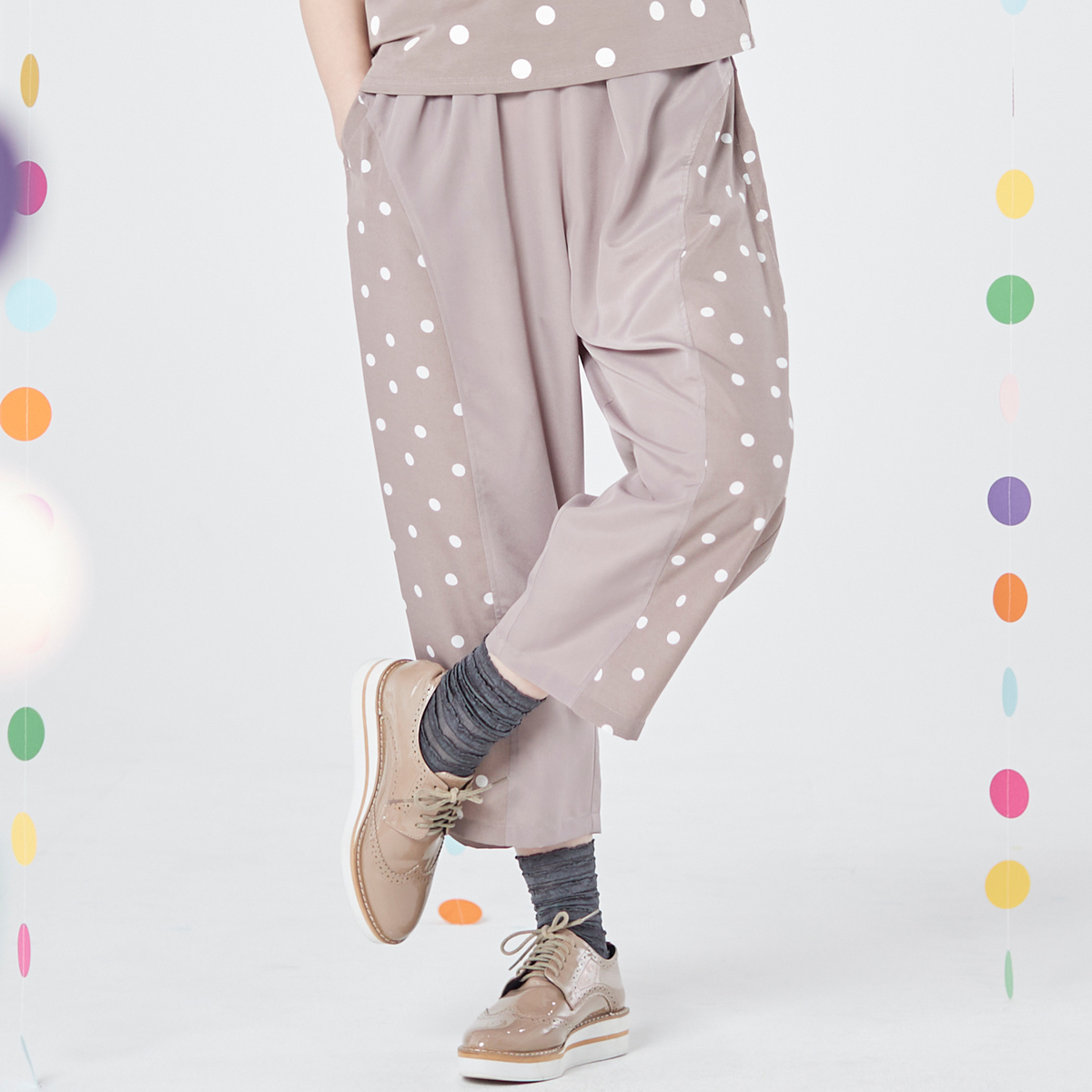 ウエスト部分はゴム仕様で、着脱もラクに。無地タイプとドットで切替えたデザインをご用意しました