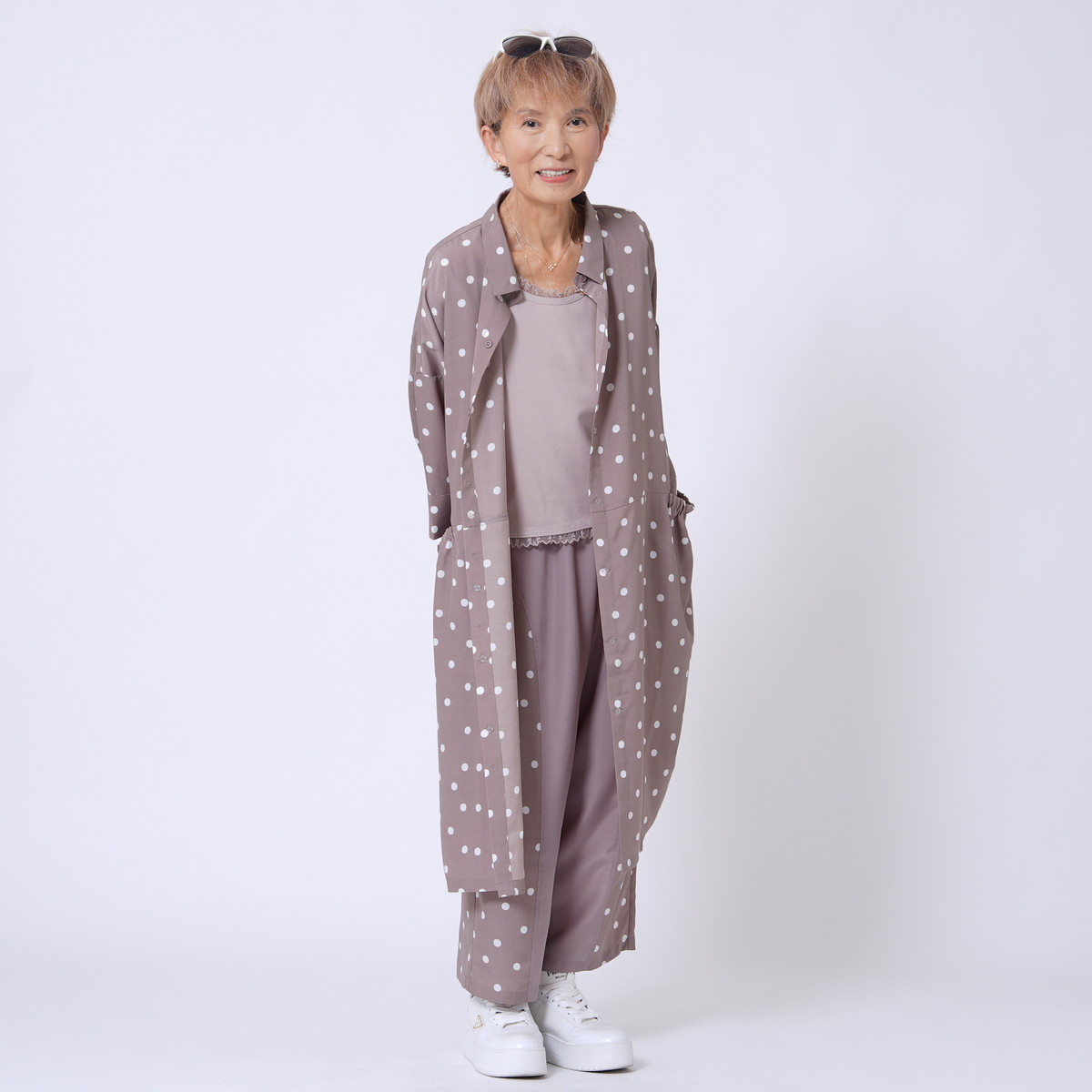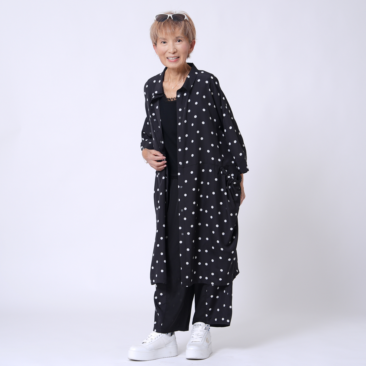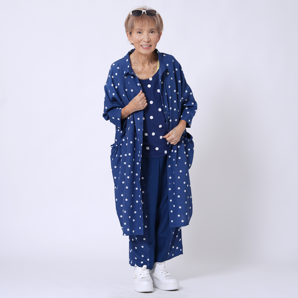 ウエスト部分はゴム仕様で、着脱もラクに。無地タイプとドットで切替えたデザインをご用意しました