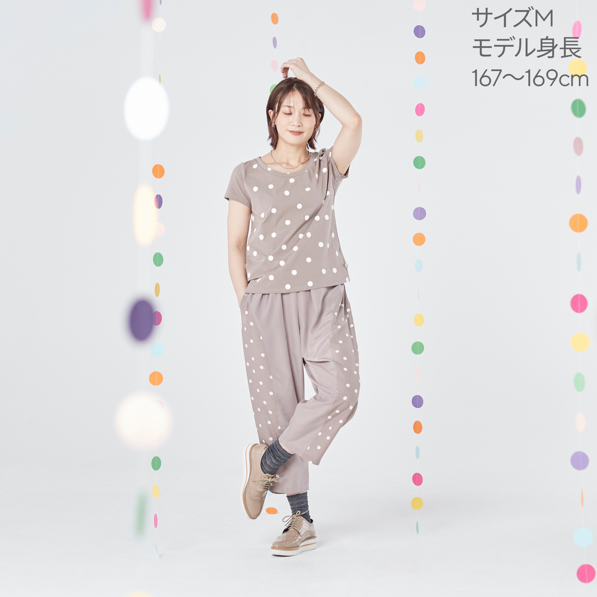 [商品寸法(ヌード)cm] サイズ ウエスト ヒップ 股下 S : 64(65〜71)112.5(83〜89) 47 M : 68(70〜76)116.5(88〜94) 51 L : 73(75〜81)121.5(93〜99) 51 LL : 78(80〜87)126.5(98〜105) 51 3L : 84(84〜91)132.5(104〜111)51 サイズ 前股ぐり わたり幅 S : 37 36 M : 38 37 L : 38 38.5 LL : 40 40 3L : 41 41.5 [ウエストゴム] 全体に有 [素材] ポリエステル 100% [お手入れ] 洗濯機洗い可 [注意事項] ※商品寸法の誤差は多少発生します。ご了承下さい ※洗濯後はすぐに脱水し、形を整えて干して下さい。長時間、水につけたままにしないで下さい ※濃色製品は着用中の摩擦により色移りすることがあります。また、雨や汗等で濡れた状態で着用すると色移りすることがあります。その際はお早めに洗濯をして下さい ※洗濯・クリーニングの際、色落ちすることがありますので他の物と分けて洗って下さい ※デリケートな素材を使用していますので、爪やアクセサリーなどの引っ掛かりによりキズがつきやすくなっております。縫目や生地を強く引っ張らないよう注意して下さい ※過度な引っ張りを受けると縫い目が開くことがありますので、取扱いには注意して下さい ※この製品は生地の表面にプリントを施しています。生地の構造上、細かなひきつれが見られる場合がありますが、製品の特徴としてご理解下さい ※強い力が加わると細かなひきつれや、糸返りによる筋が発生します。摩擦や引っ掛かりにご注意下さい 【中国製】