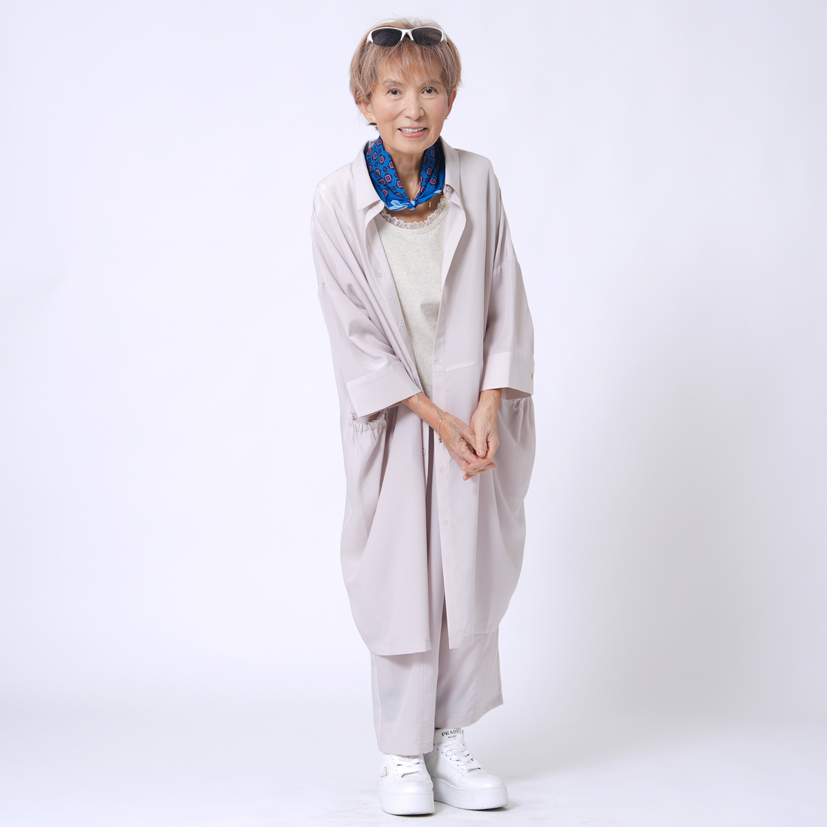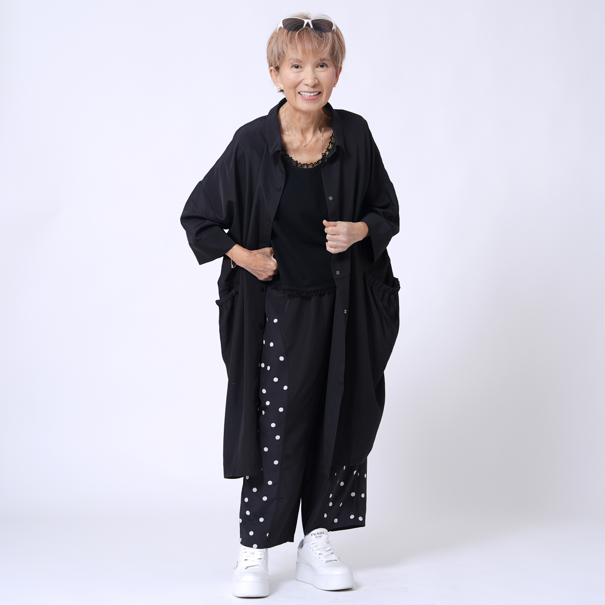 涼しげなシフォン素材のパンツ。コーディネートがしやすい、リラックス感のあるシルエットです