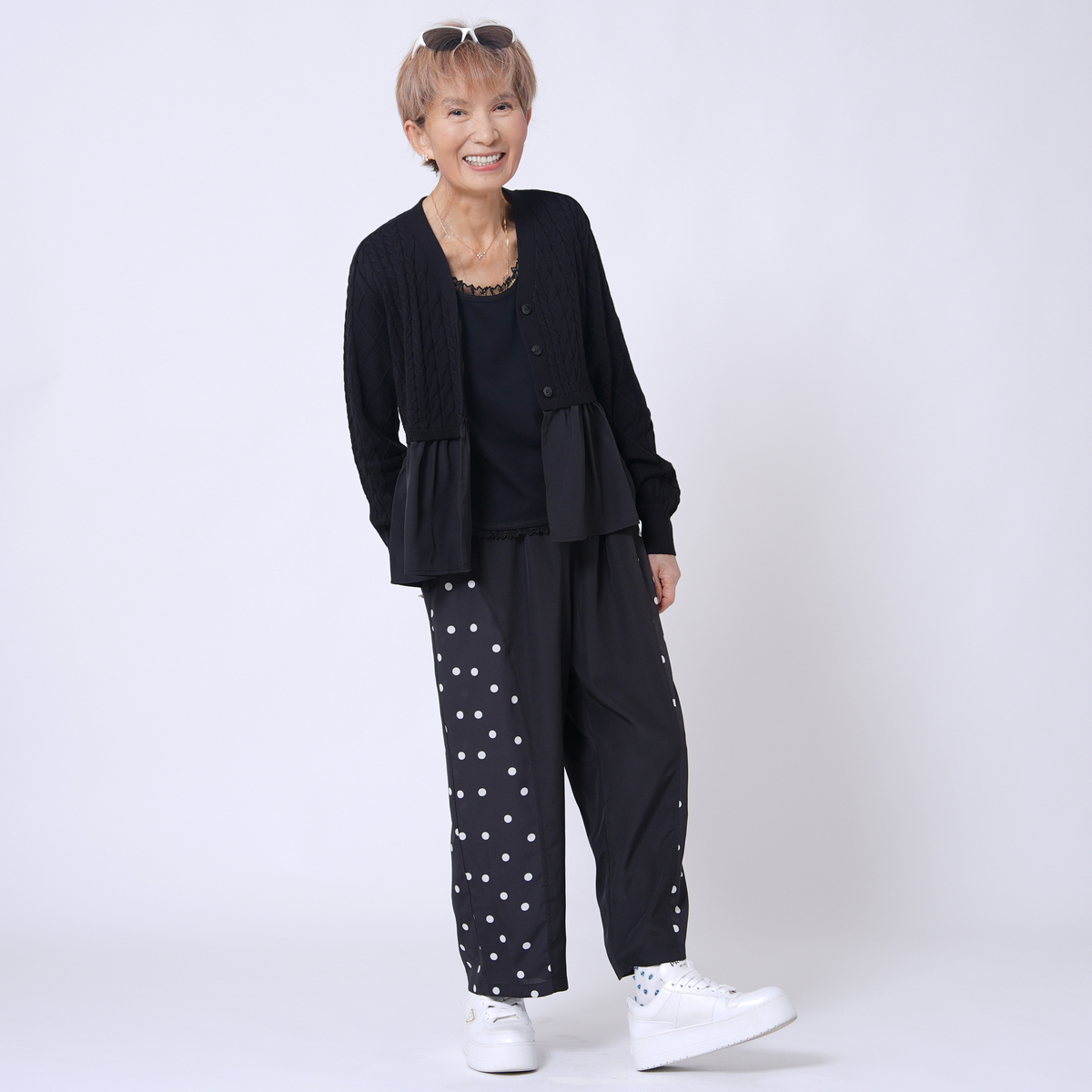 No. 753089 KawaiOkada シフォン素材の切替ウエトゴムパンツ