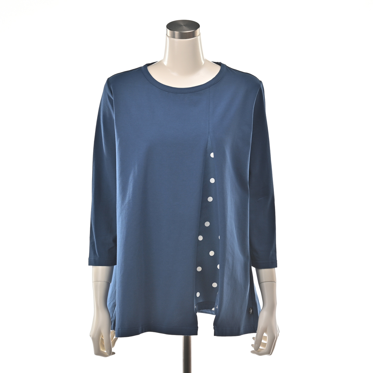 ゆったりとしたシルエットのTシャツ。オリジナルクリアーベア天竺素材を身頃に使用し、ドットプリントで程よいアクセントを加えました