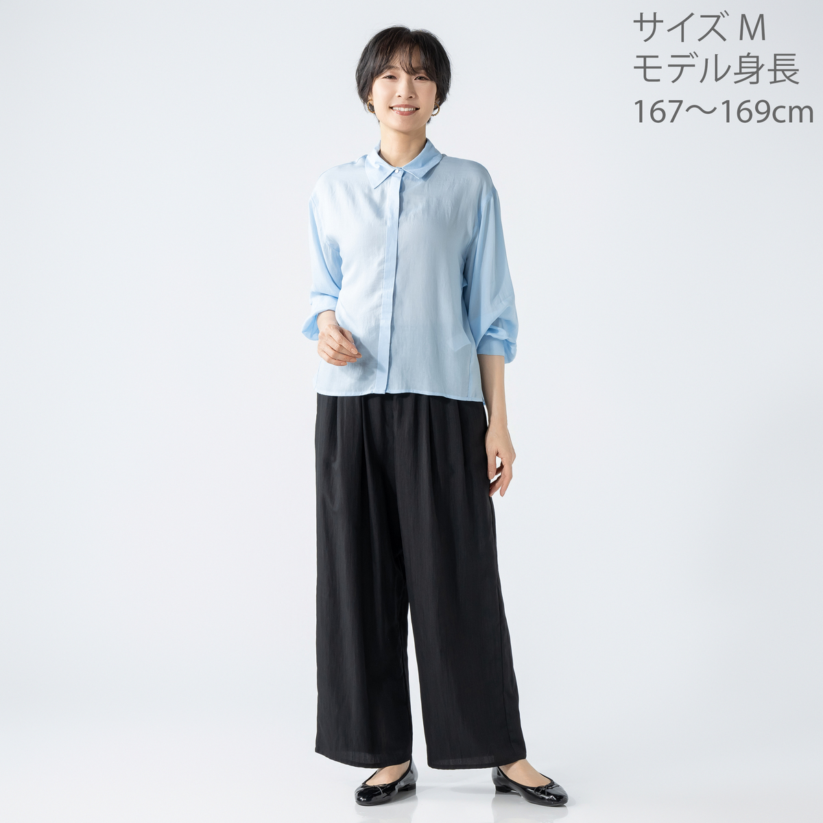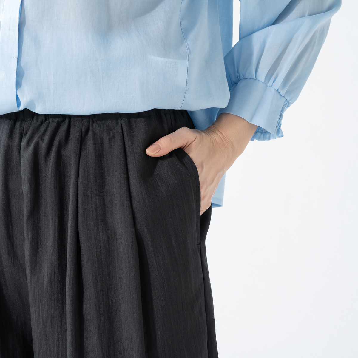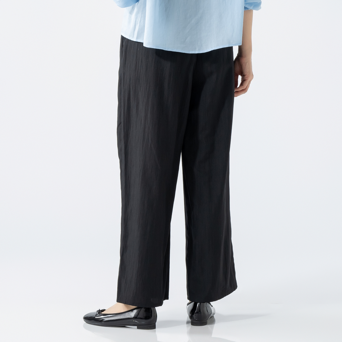 シボ感と上品な微光沢が美しい生地で、さらりとした肌触り。なめらかな風合いで、快適な穿き心地です