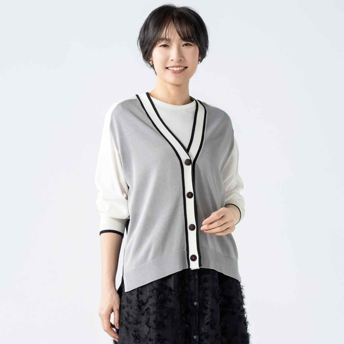 No. 753106 calma カラーブロッキング シャリ味ニットカーディガン